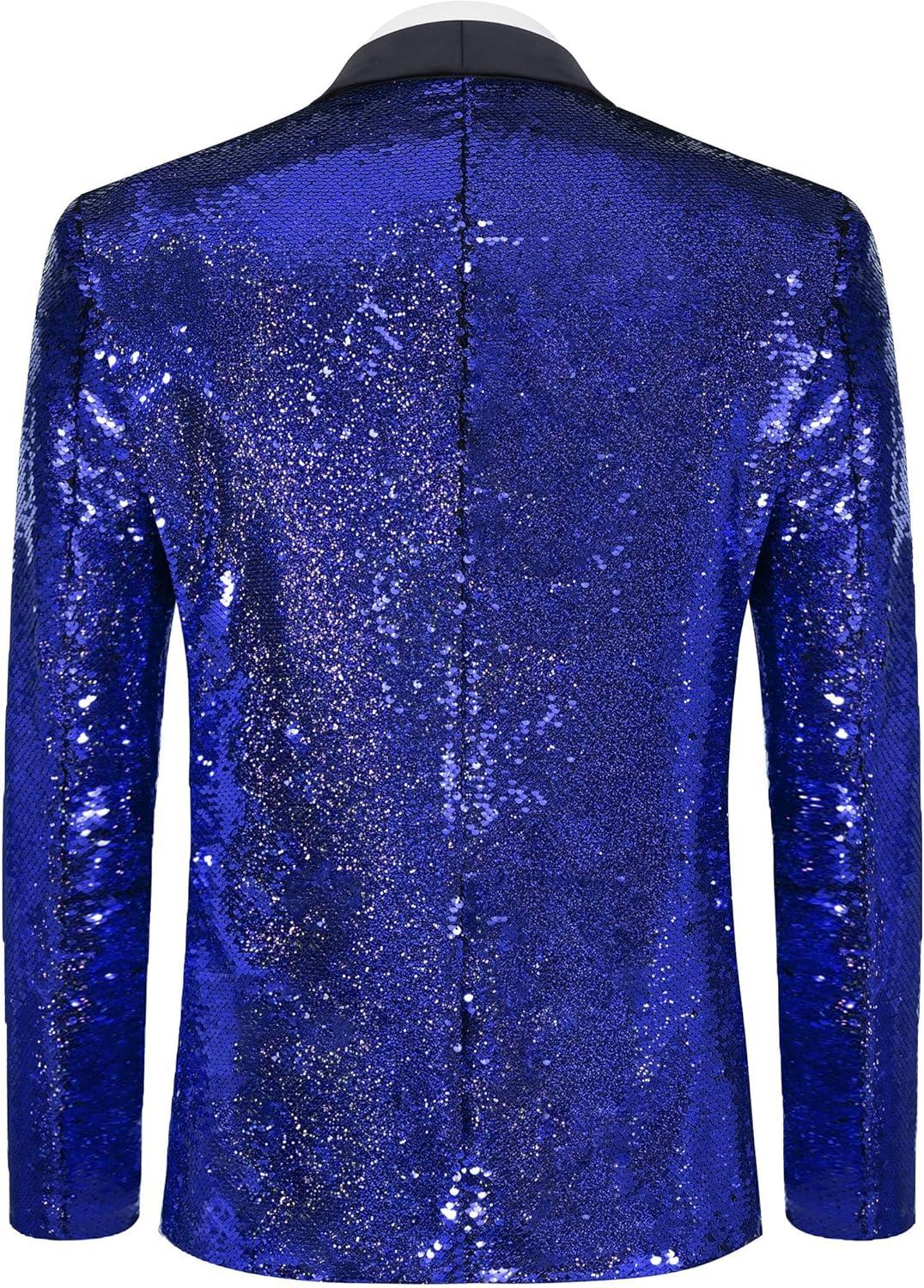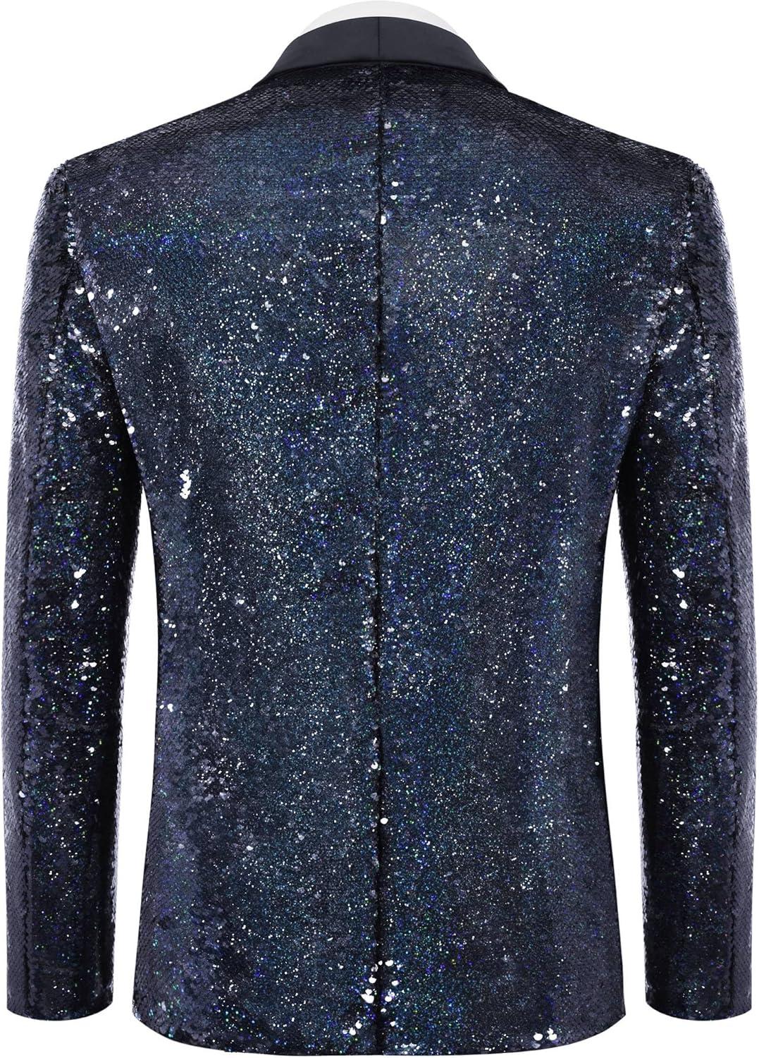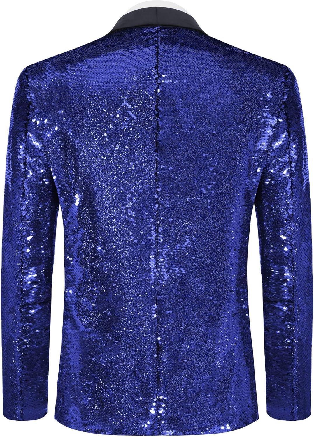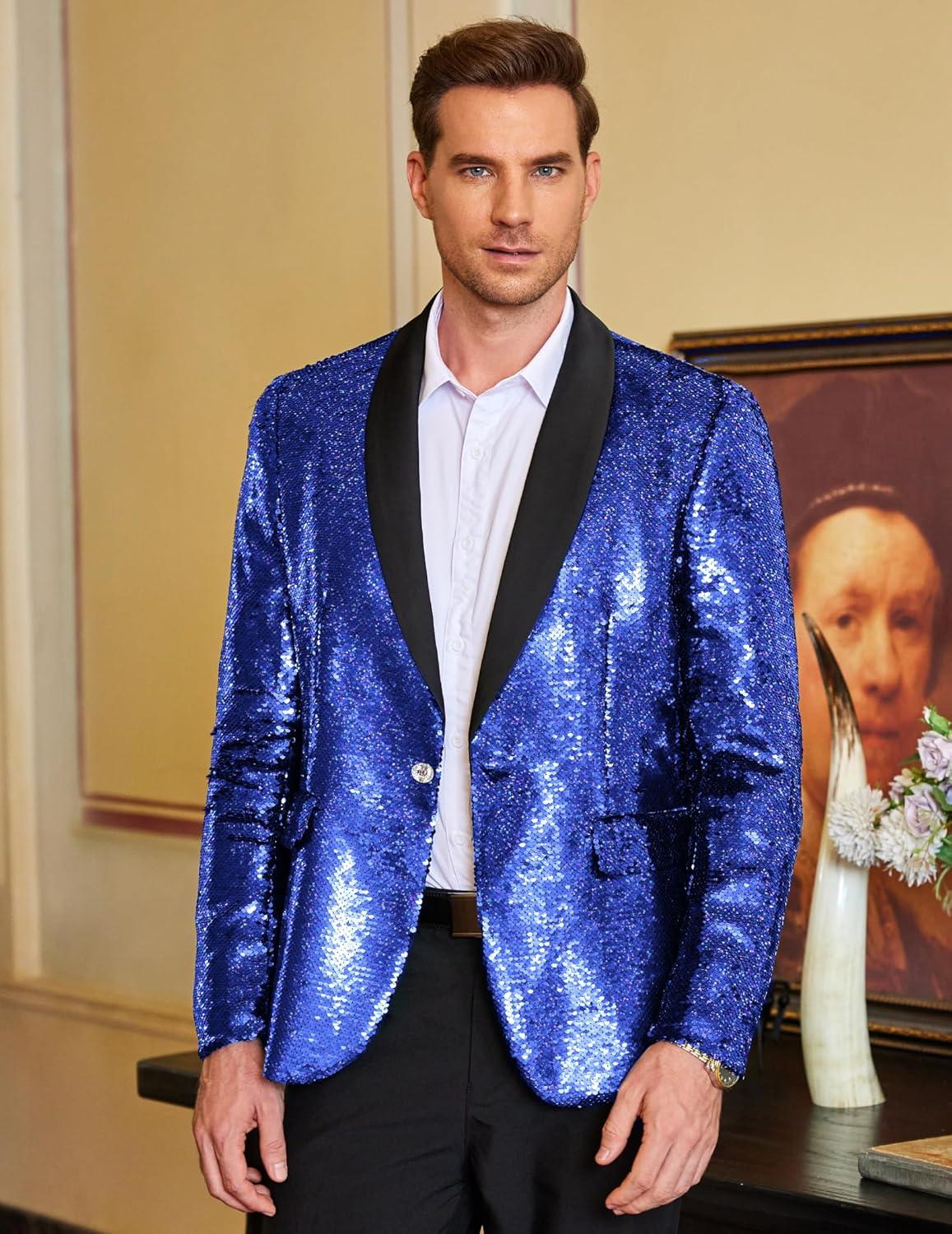 COOFANDY Mens Shiny Sequin Blazer Tuxedo Party Dinner Prom One Button Suit Jacket(Blue)