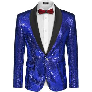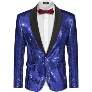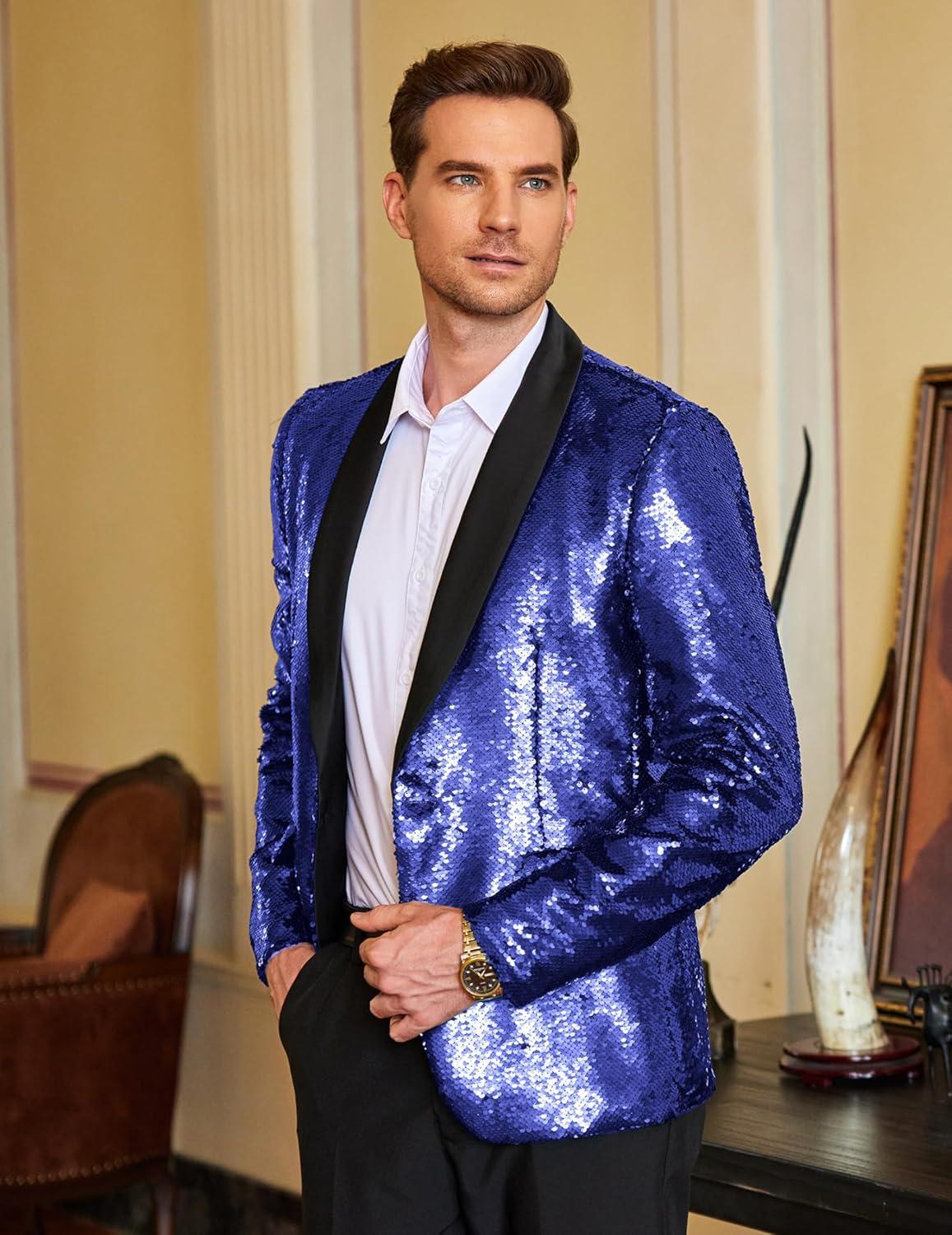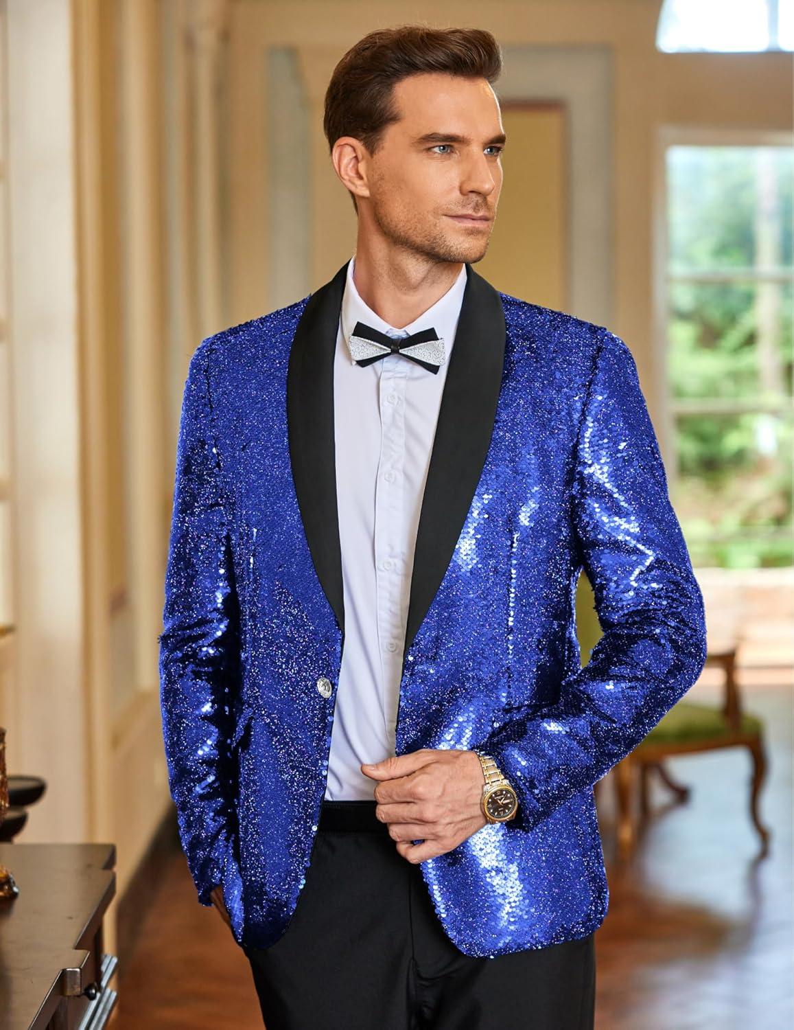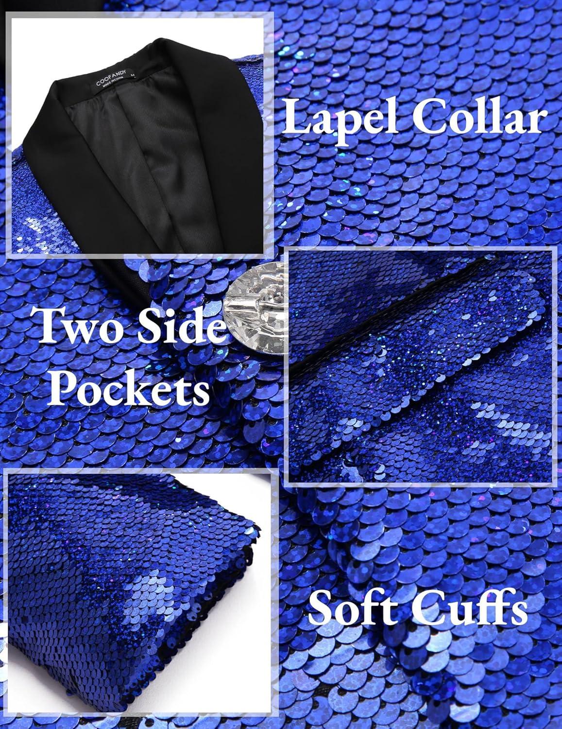 COOFANDY Mens Shiny Sequin Blazer Tuxedo Party Dinner Prom One Button Suit Jacket(Blue)