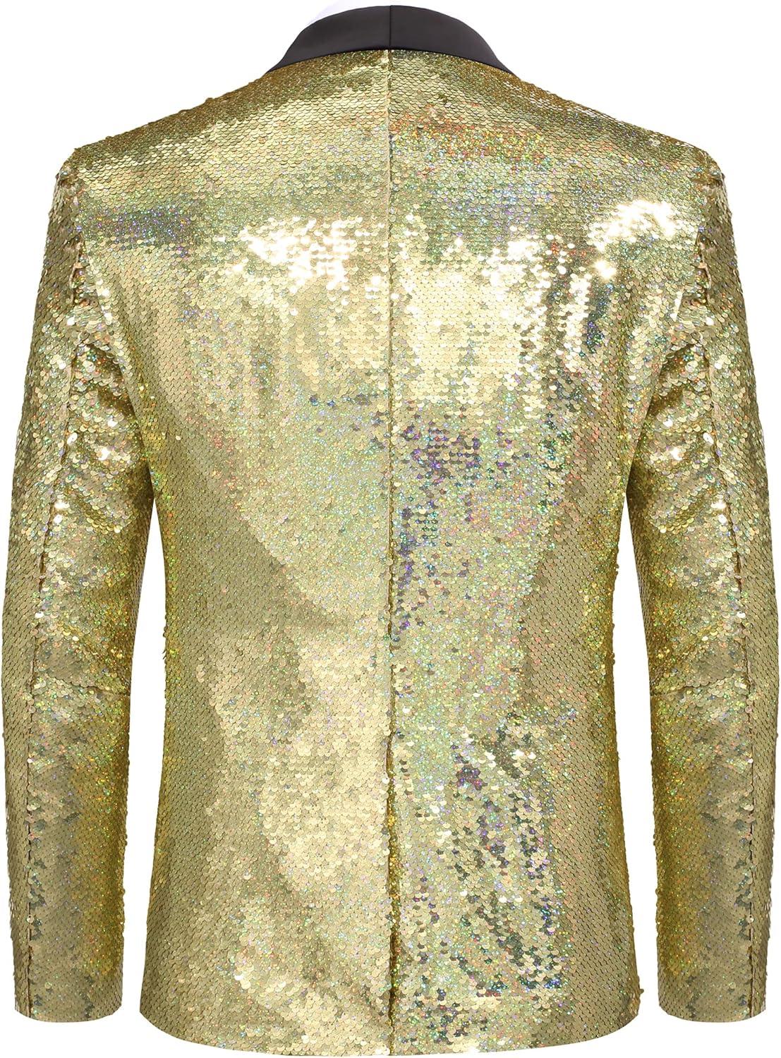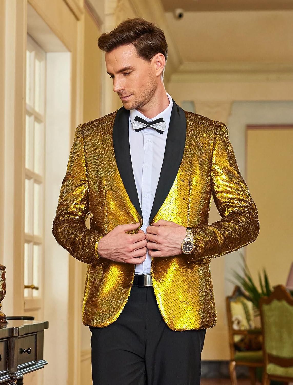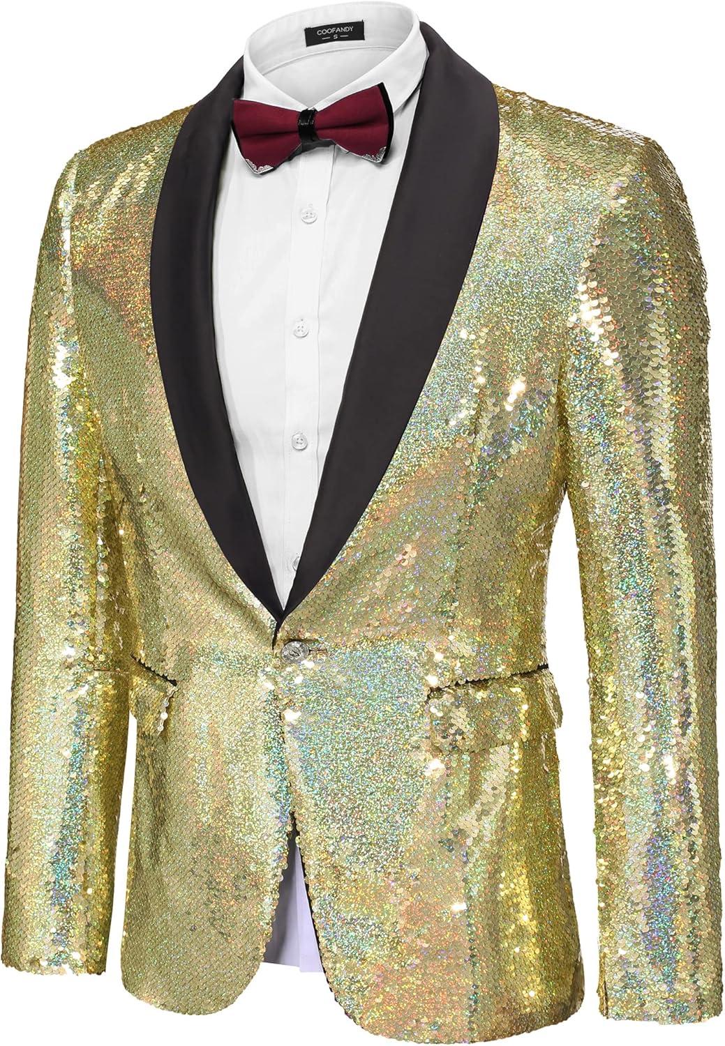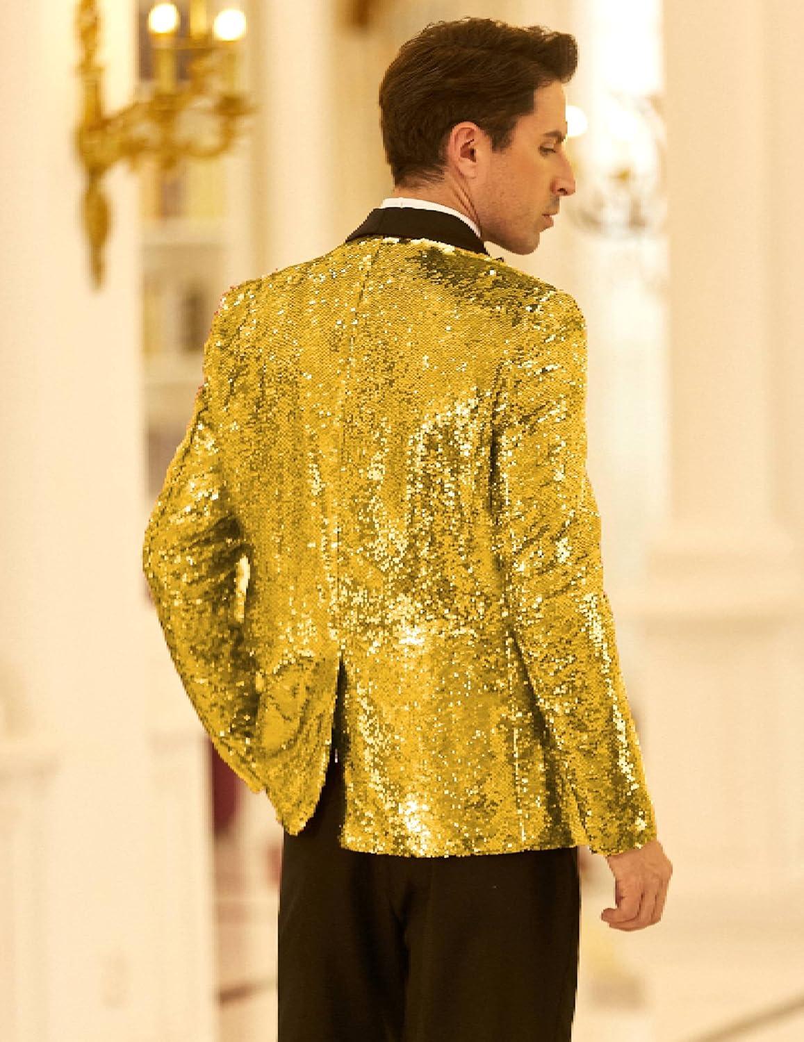 COOFANDY Mens Shiny Sequin Blazer Tuxedo Party Dinner Prom One Button Suit Jacket(Gold)