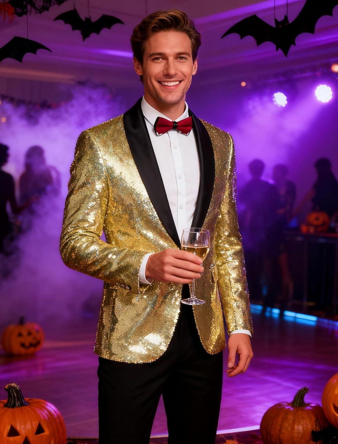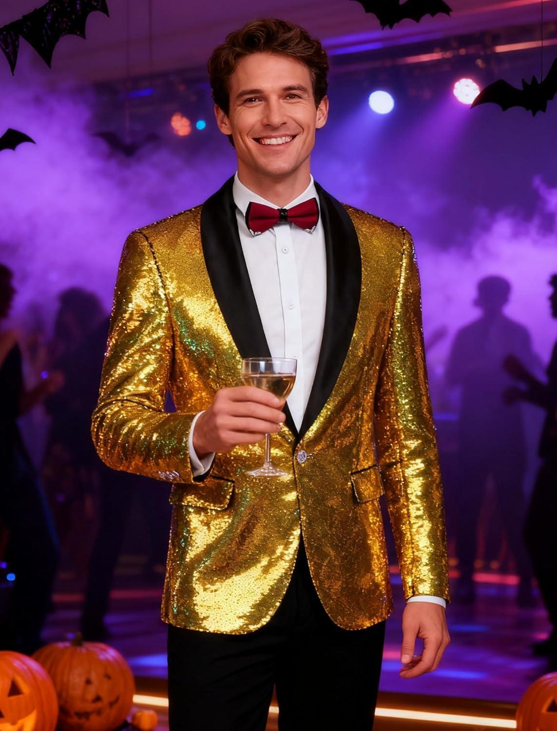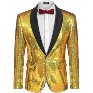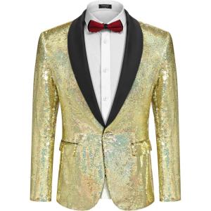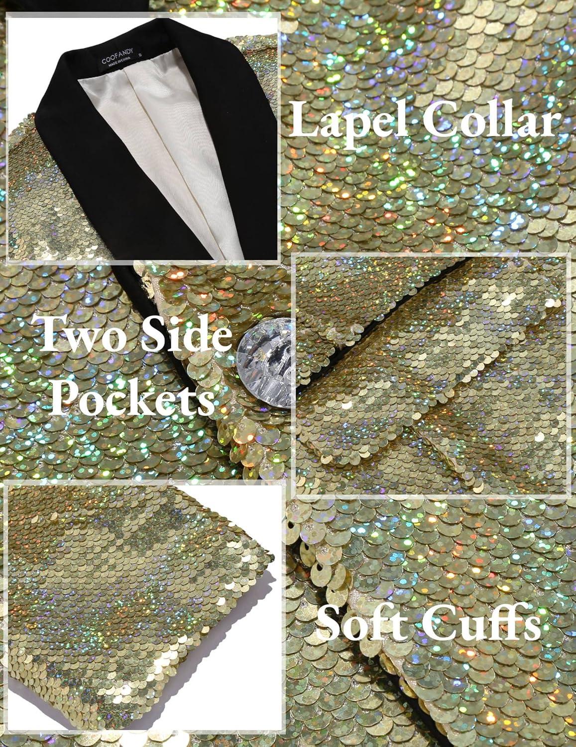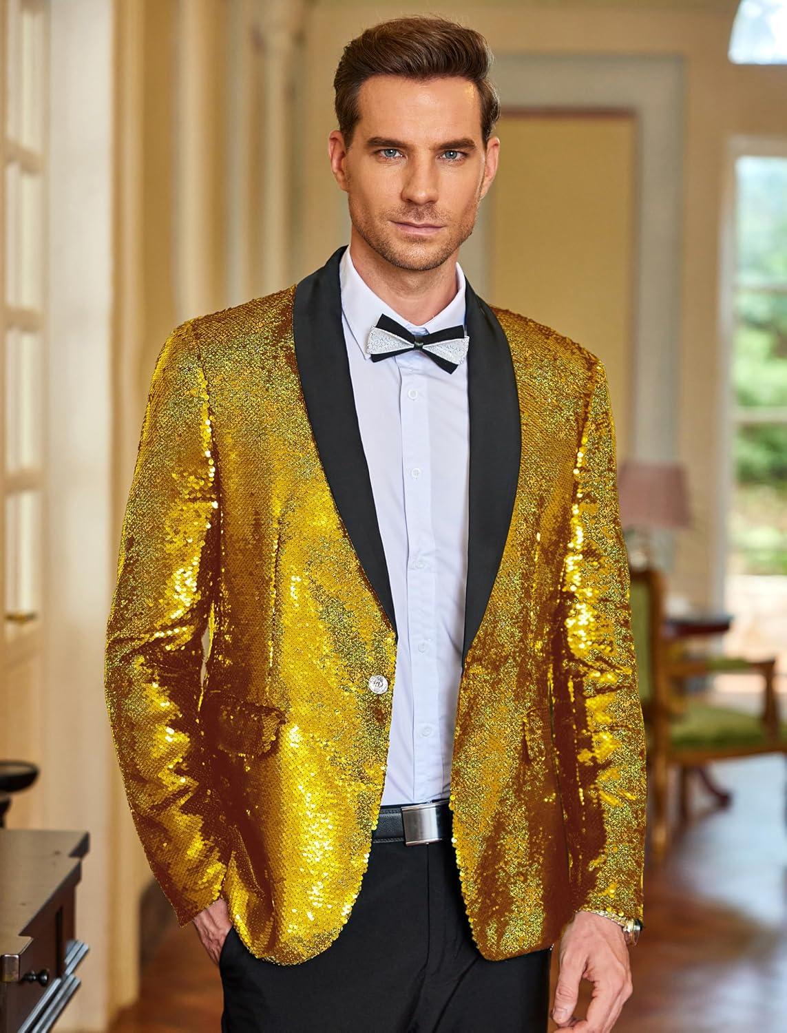 COOFANDY Mens Shiny Sequin Blazer Tuxedo Party Dinner Prom One Button Suit Jacket(Gold)