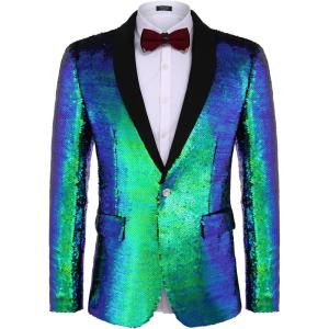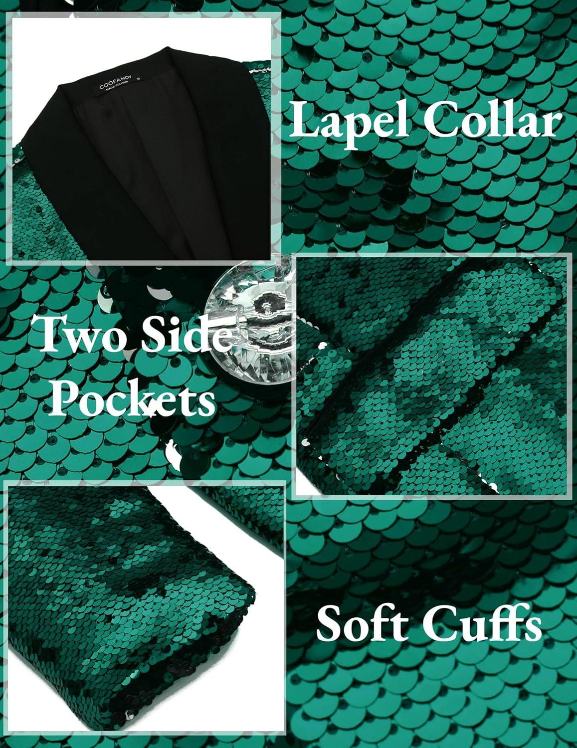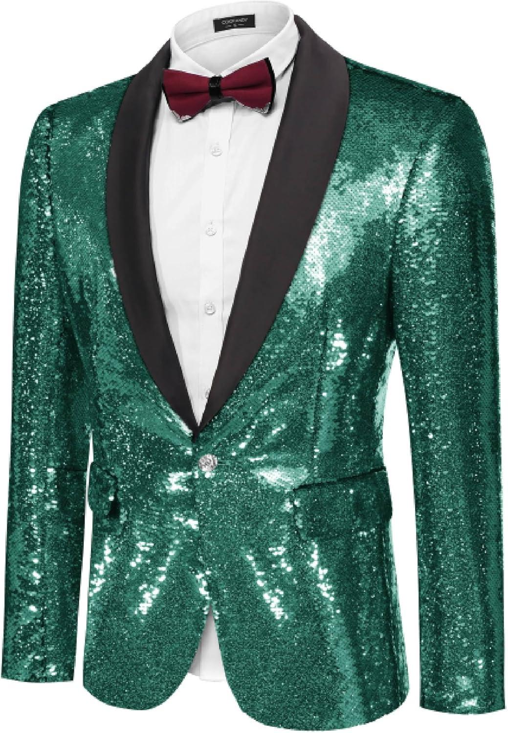 COOFANDY Mens Shiny Sequin Blazer Tuxedo Party Dinner Prom One Button Suit Jacket(Blue Green)