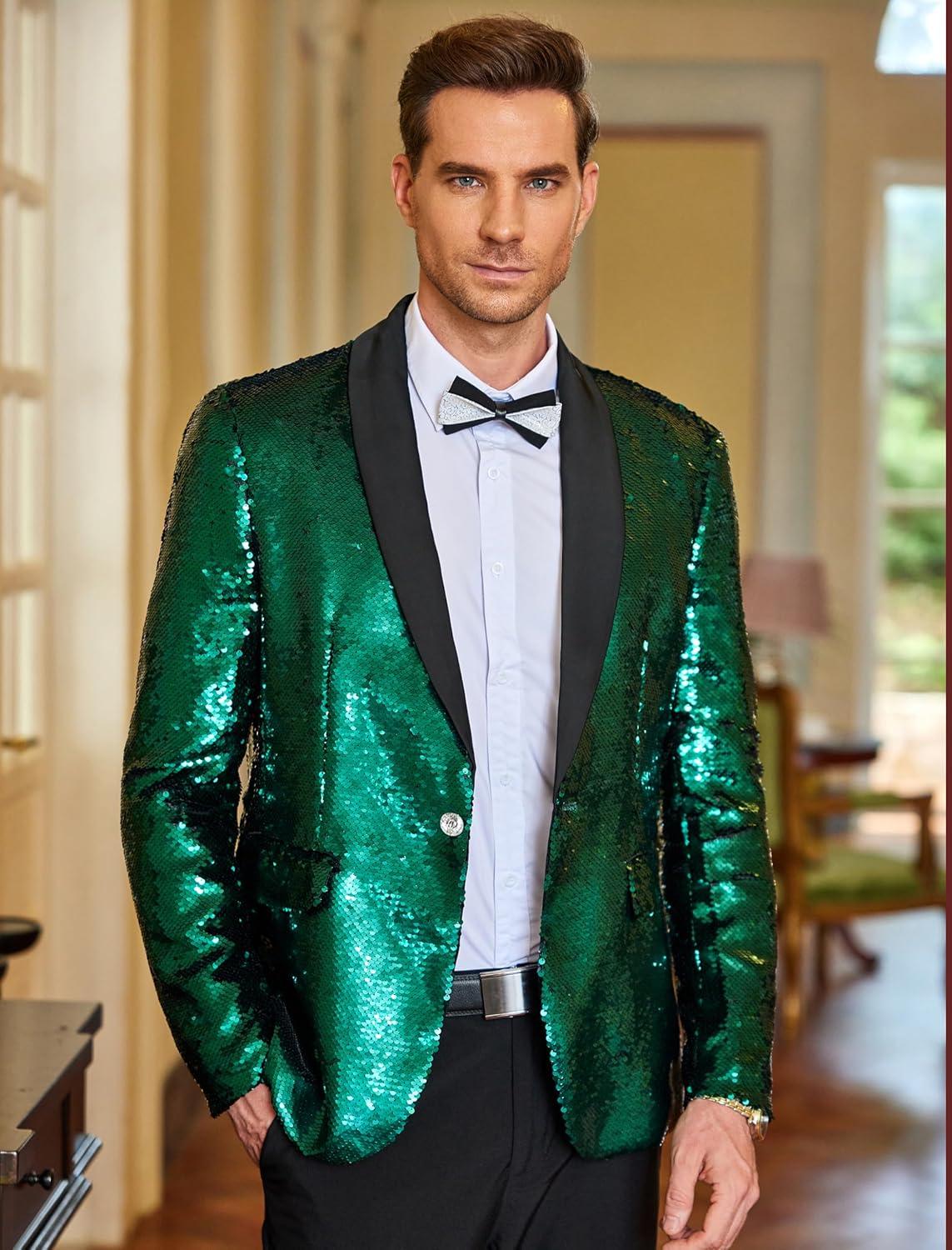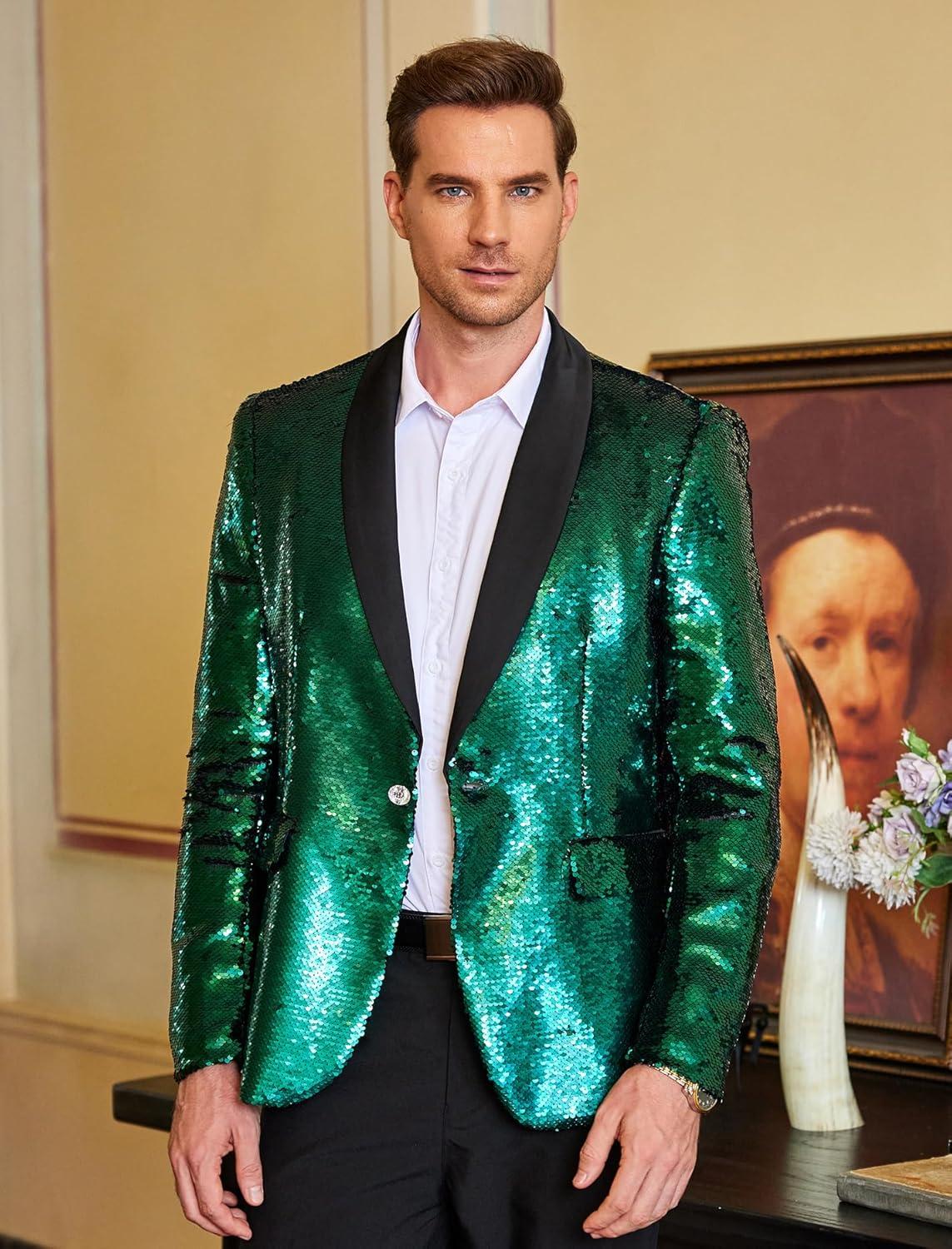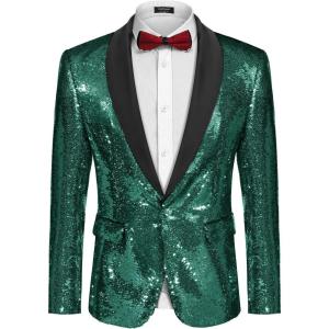 COOFANDY Mens Shiny Sequin Blazer Tuxedo Party Dinner Prom One Button Suit Jacket(Evergreen)