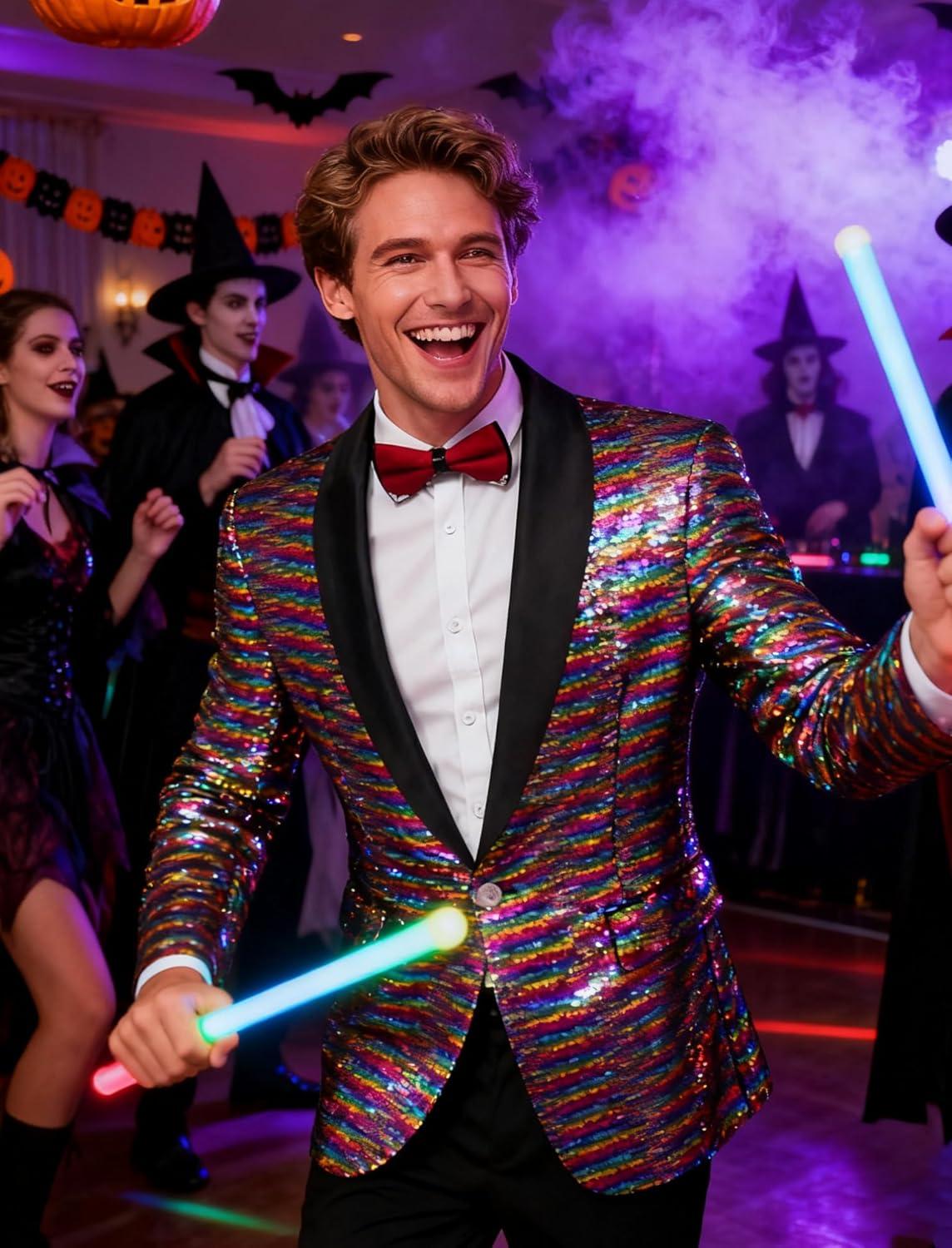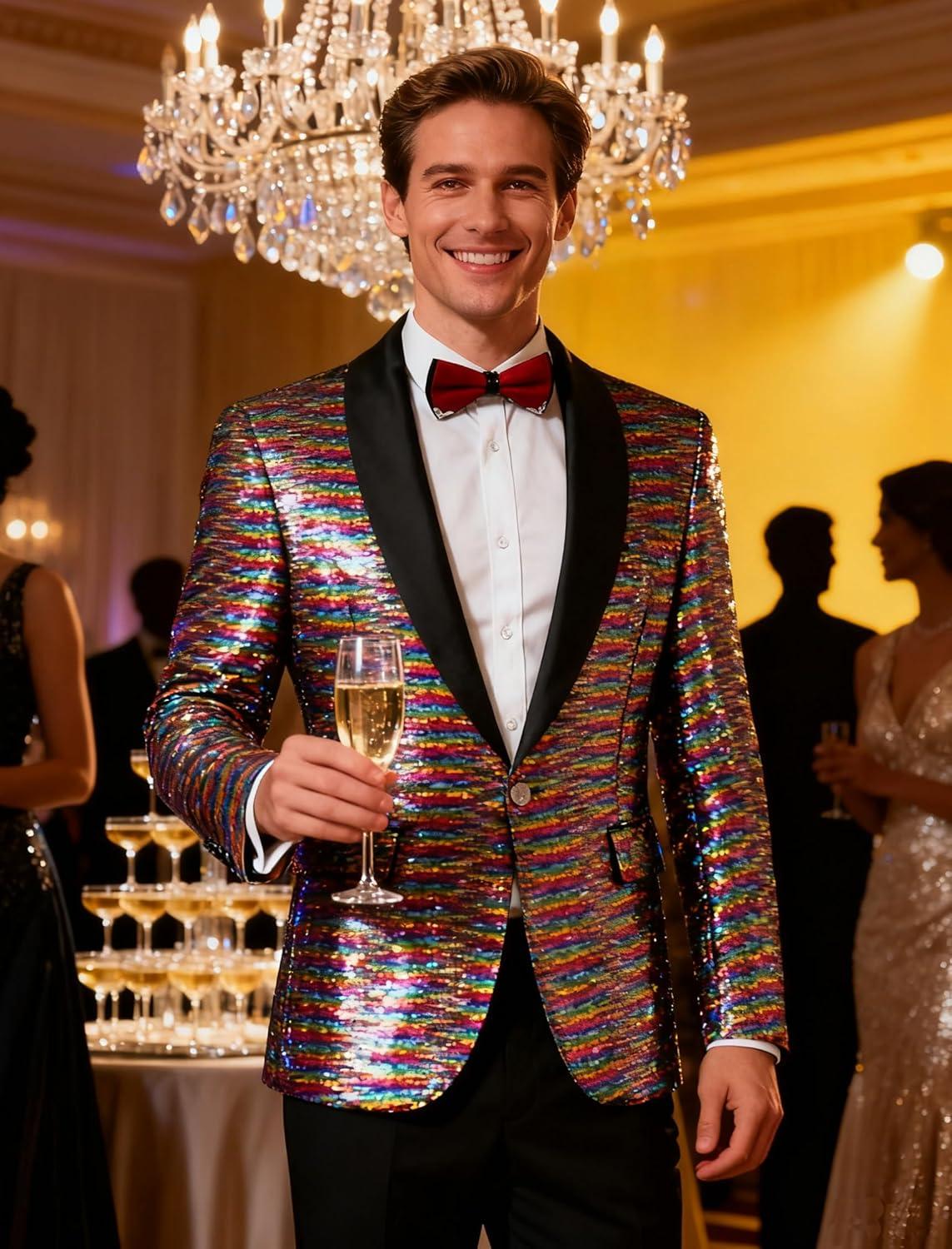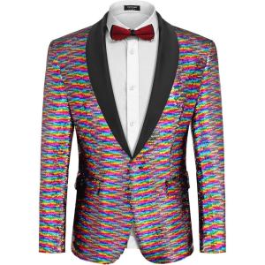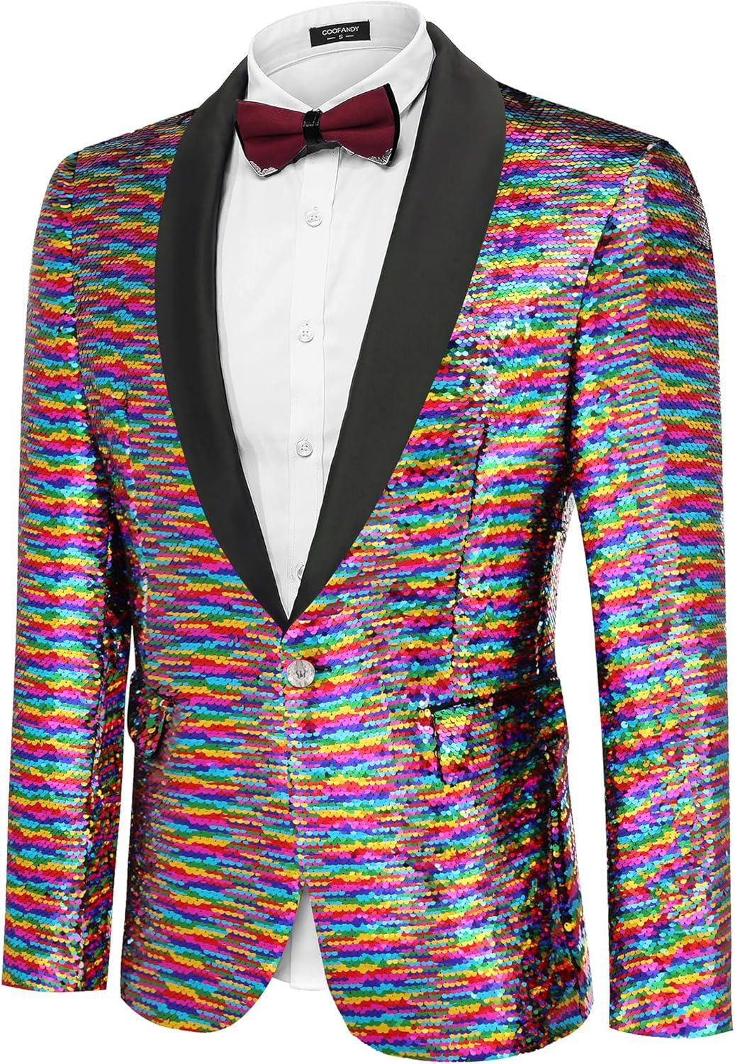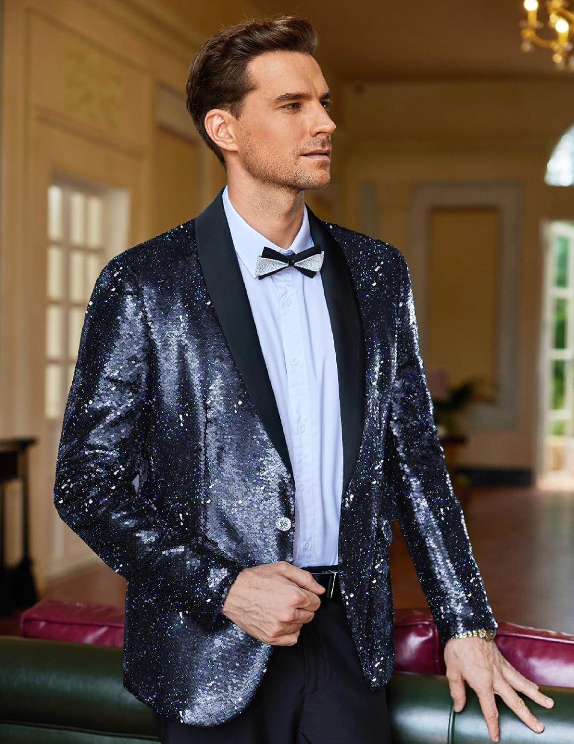 COOFANDY Mens Shiny Sequin Blazer Tuxedo Party Dinner Prom One Button Suit Jacket(Multicolored-navy Blue)