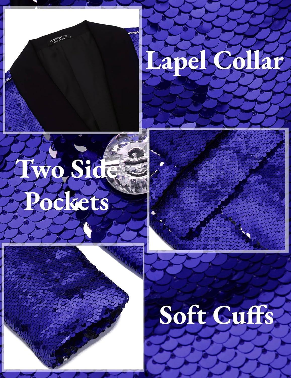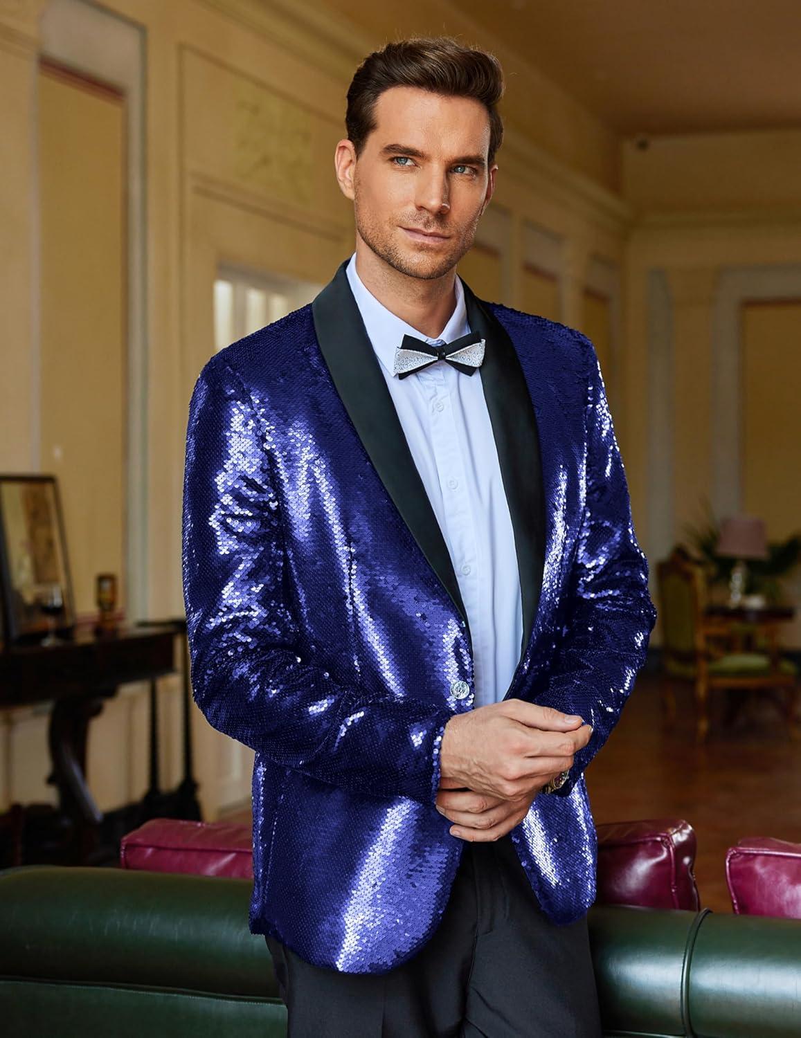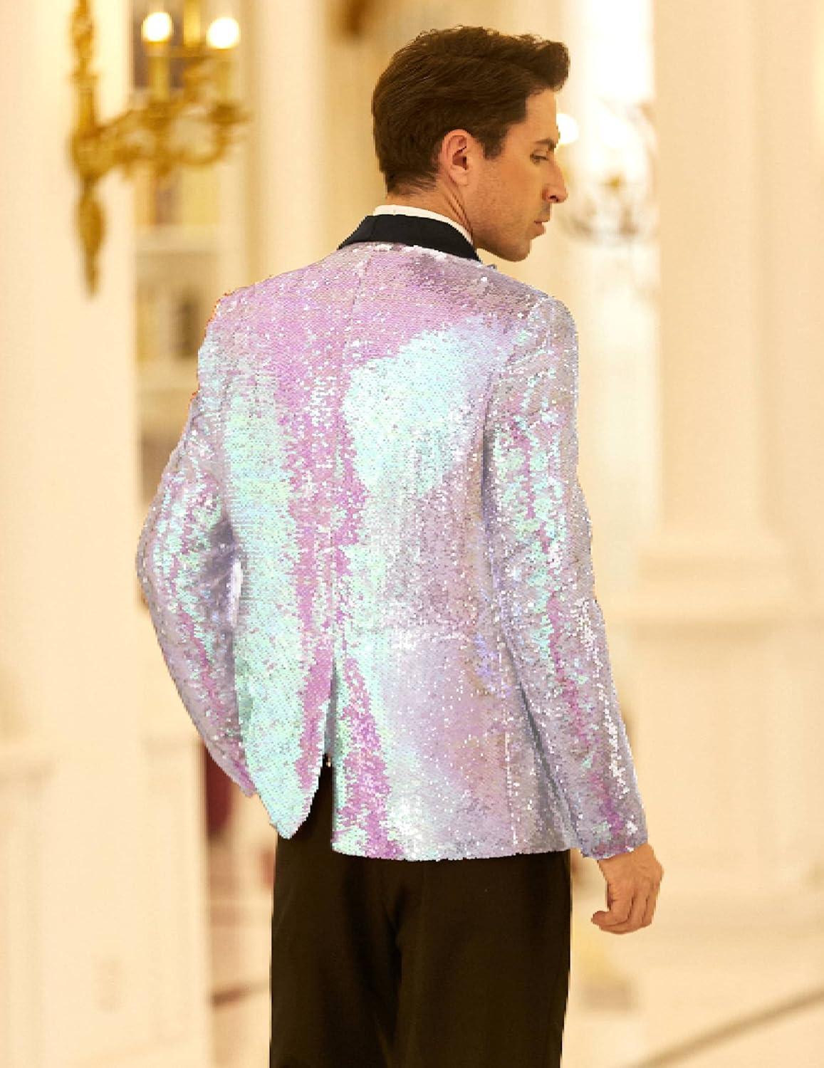 COOFANDY Mens Shiny Sequin Blazer Tuxedo Party Dinner Prom One Button Suit Jacket(Blue Purple)