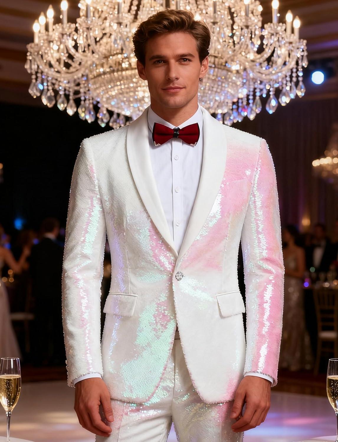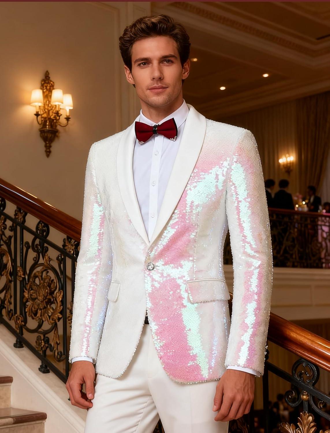 COOFANDY Mens Shiny Sequin Blazer Tuxedo Party Dinner Prom One Button Suit Jacket(Pink)