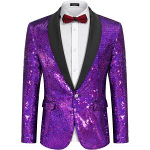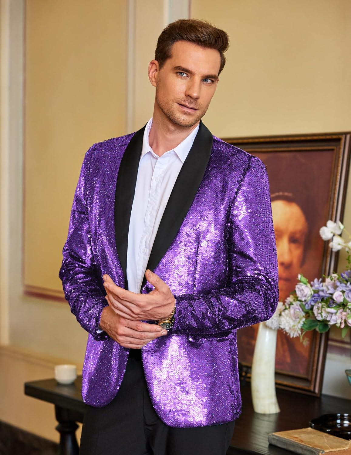 COOFANDY Mens Shiny Sequin Blazer Tuxedo Party Dinner Prom One Button Suit Jacket(Purple)