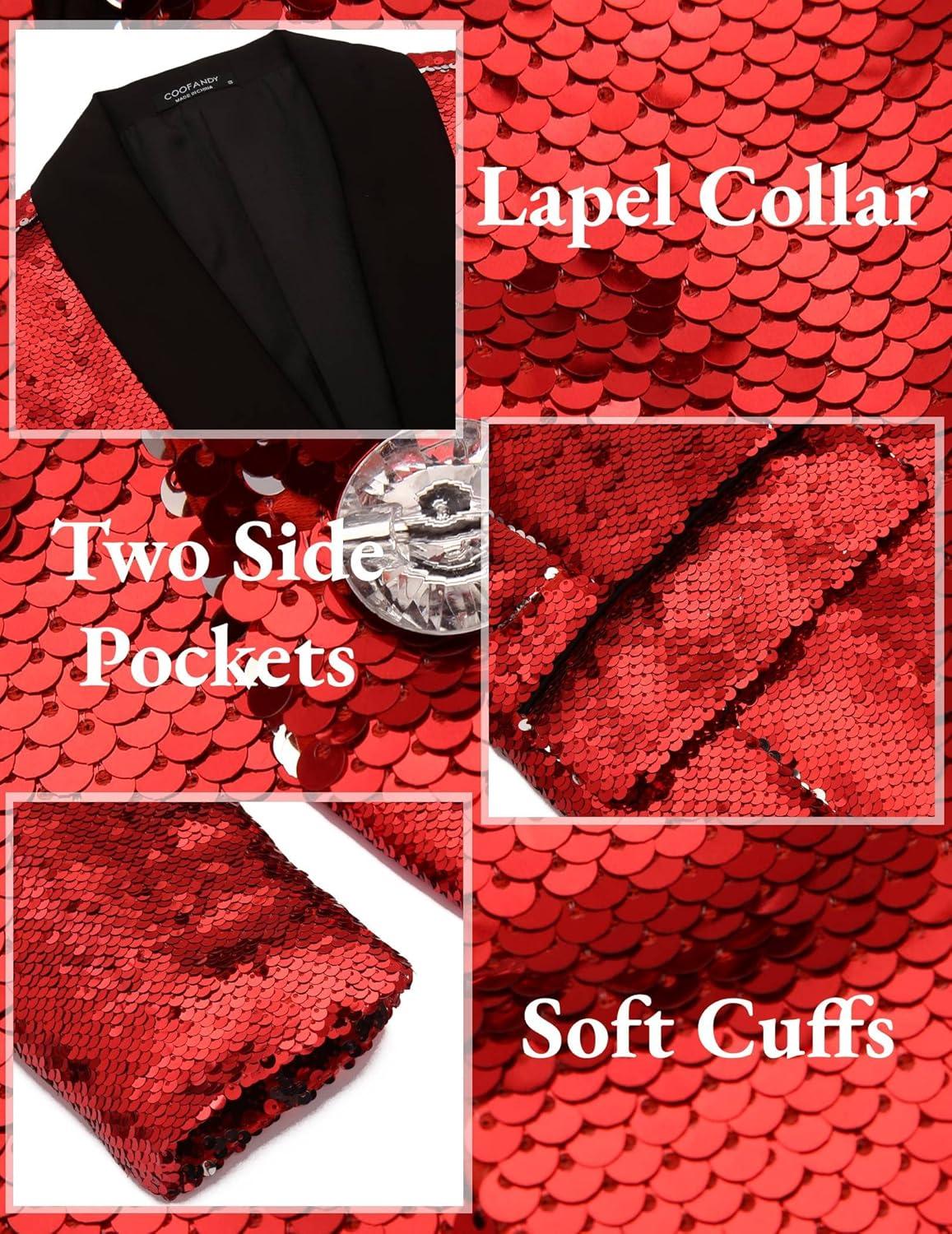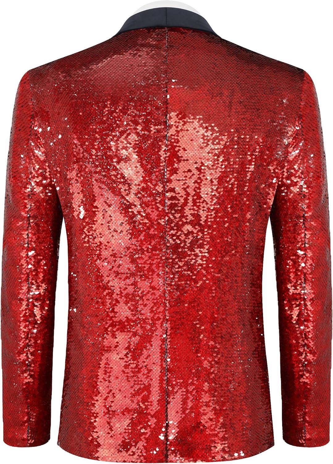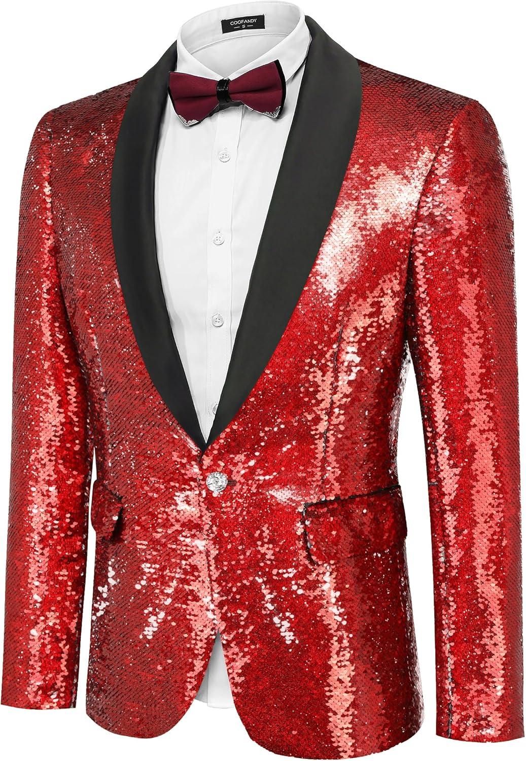 COOFANDY Mens Shiny Sequin Blazer Tuxedo Party Dinner Prom One Button Suit Jacket(Red)