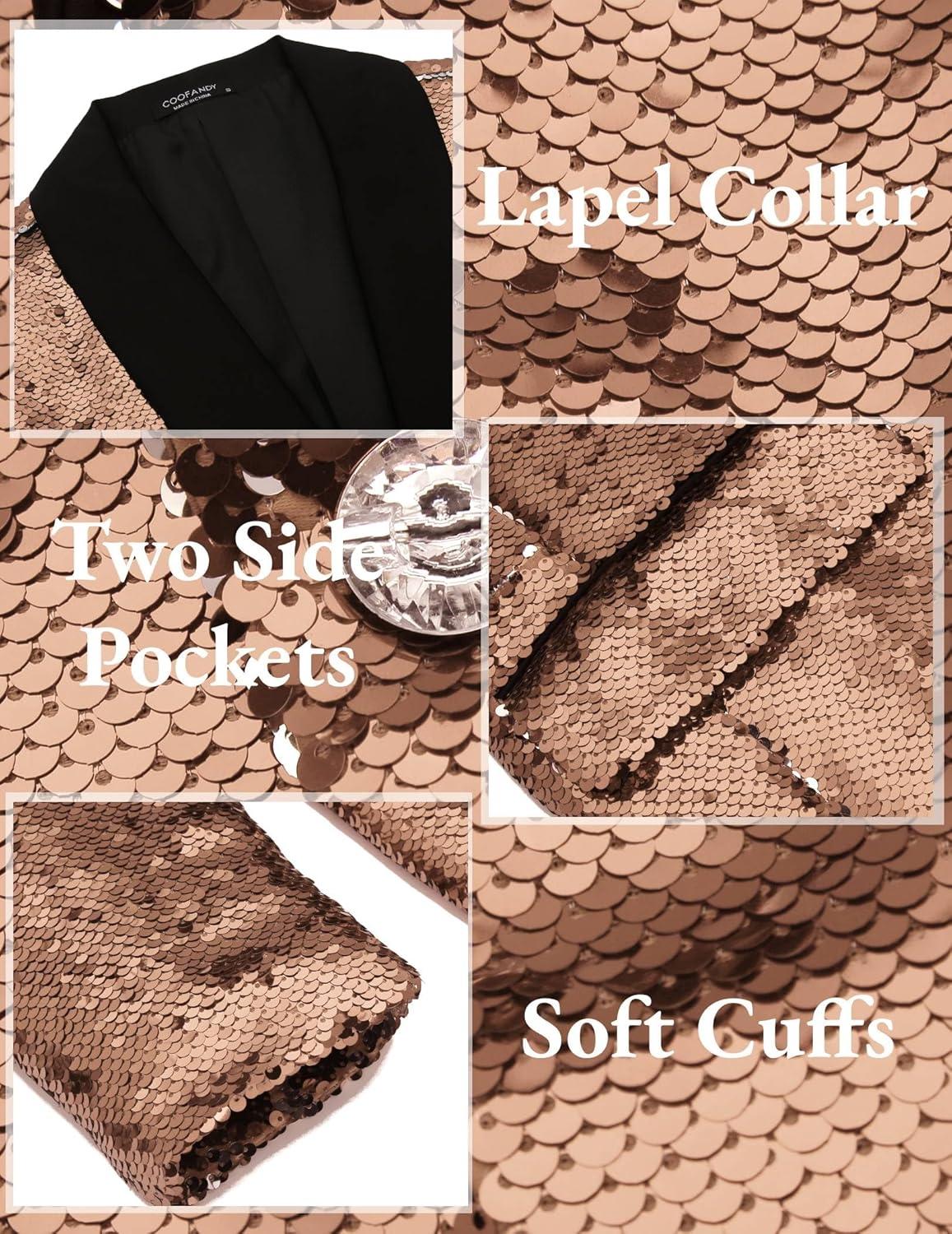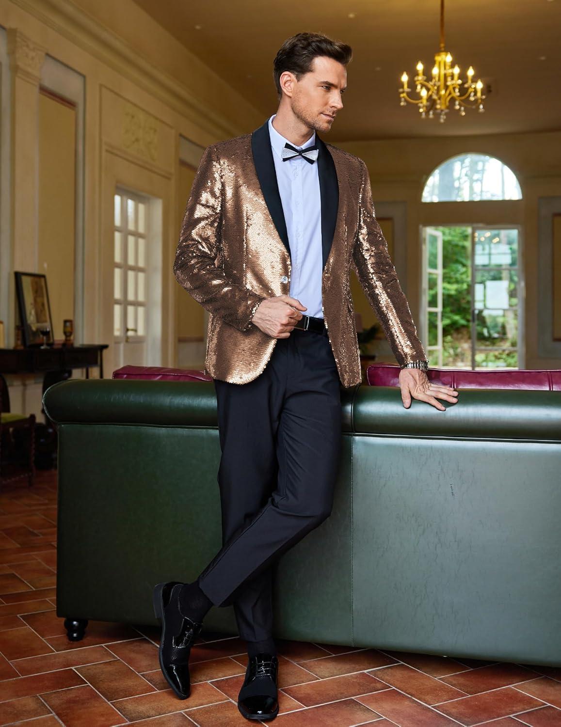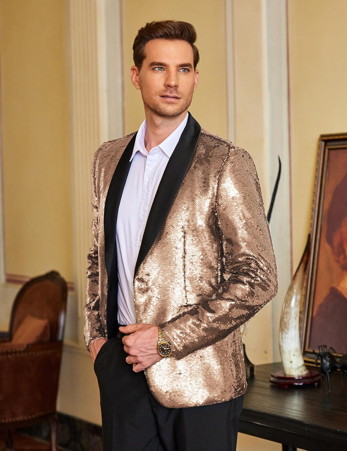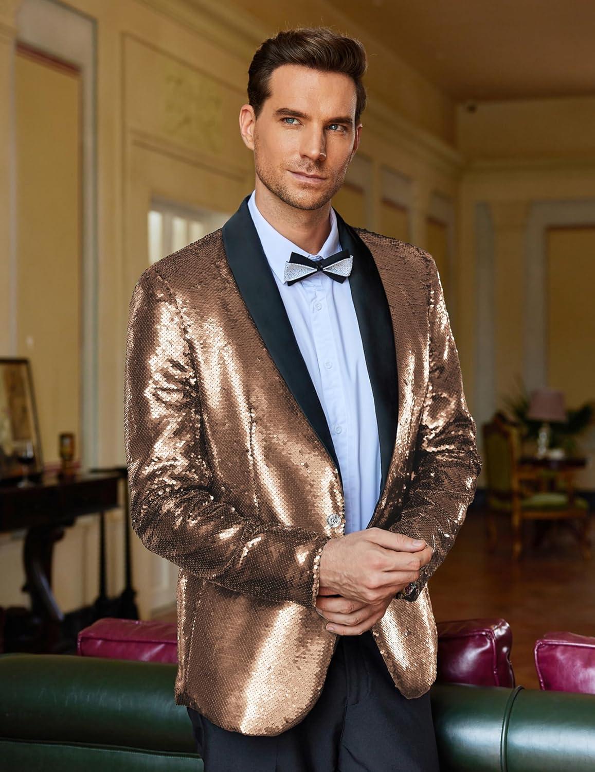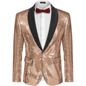 COOFANDY Mens Shiny Sequin Blazer Tuxedo Party Dinner Prom One Button Suit Jacket(Rose Golden)