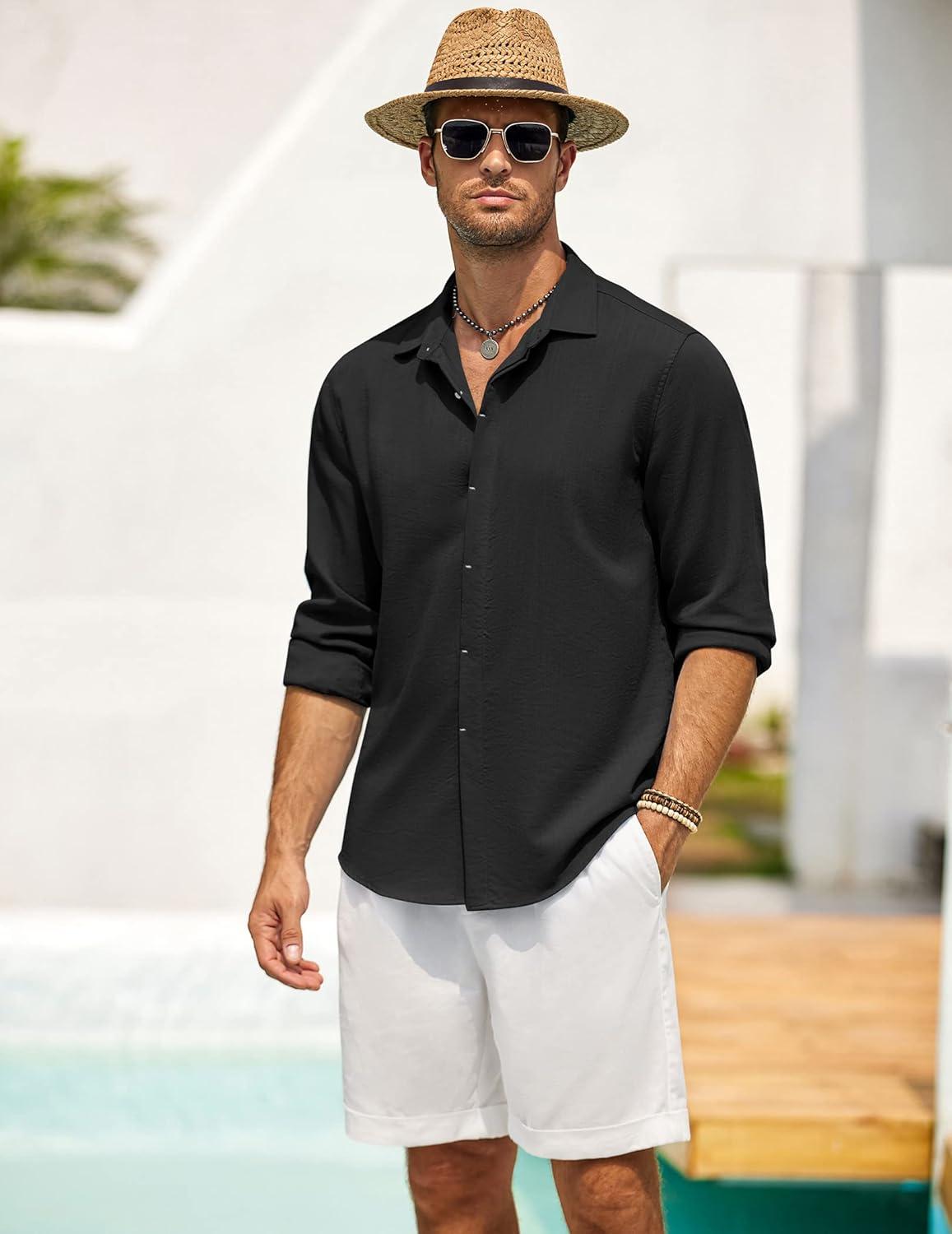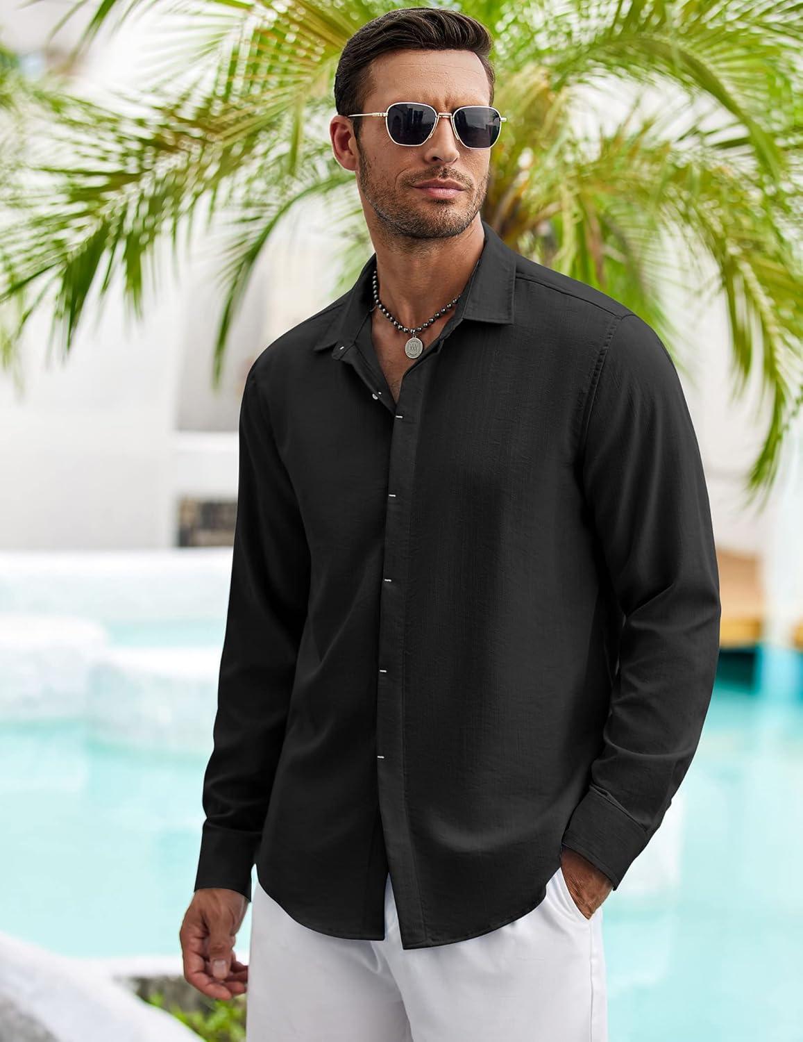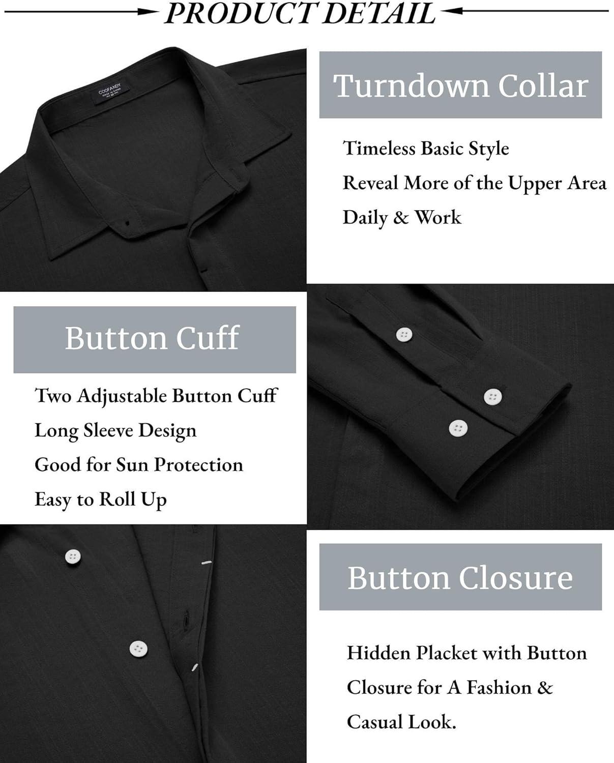 COOFANDY Men’s Button Down Long Sleeve Shirt Casual Untucked Dress Shirt Regular Fit Wedding Shirts(Black)