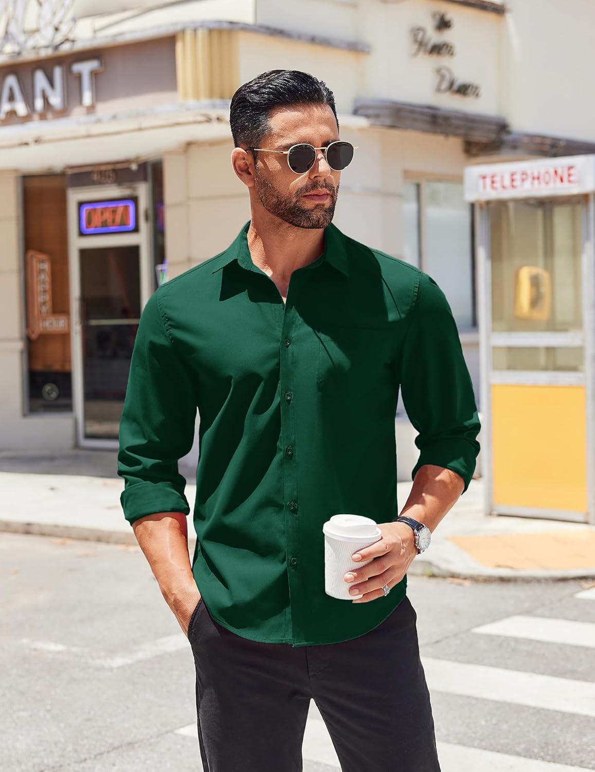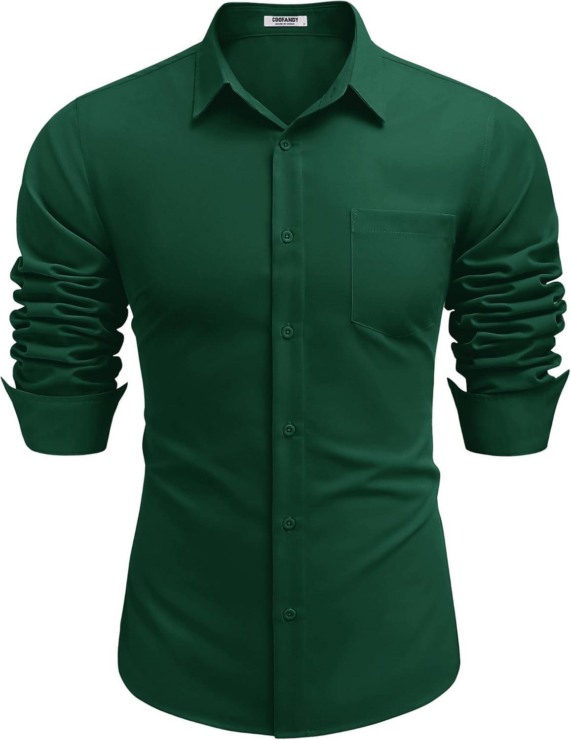 COOFANDY Men’s Button Down Long Sleeve Shirt Casual Untucked Dress Shirt Regular Fit Wedding Shirts(Dark Green)