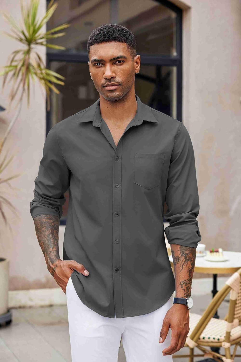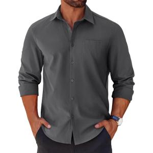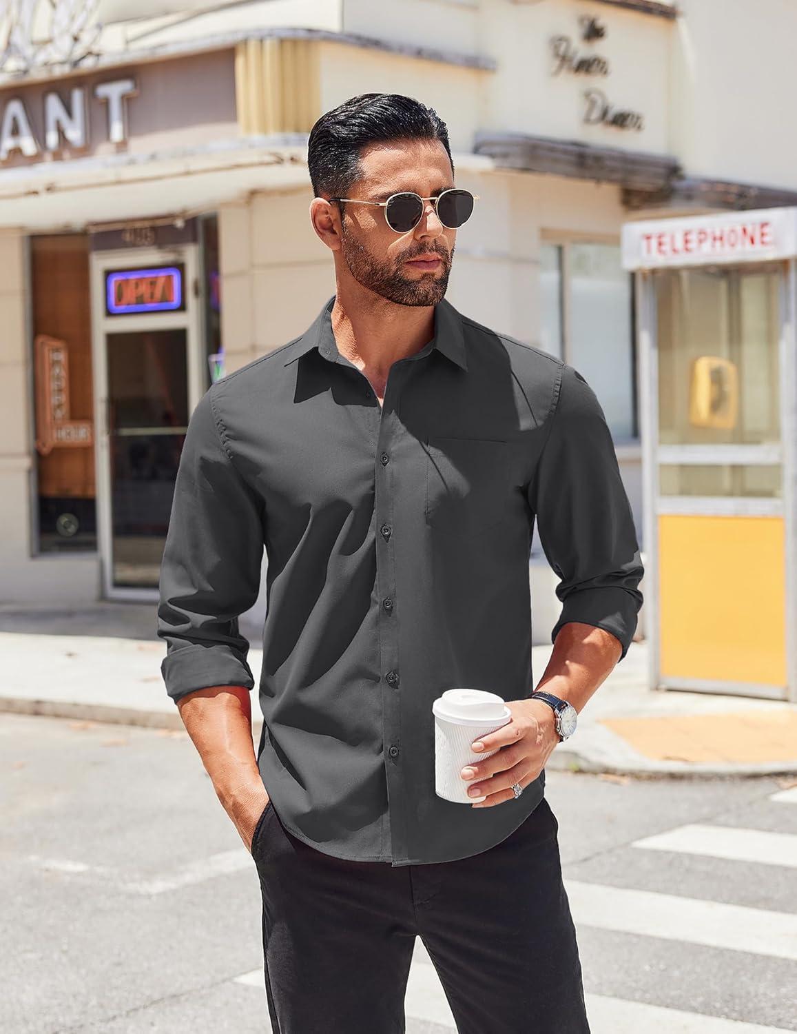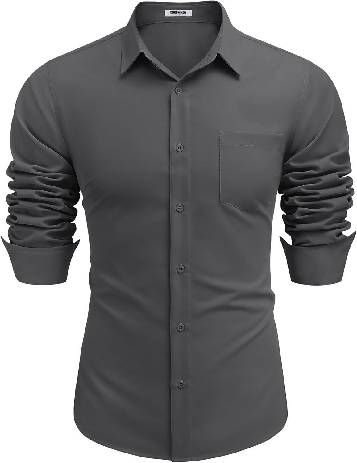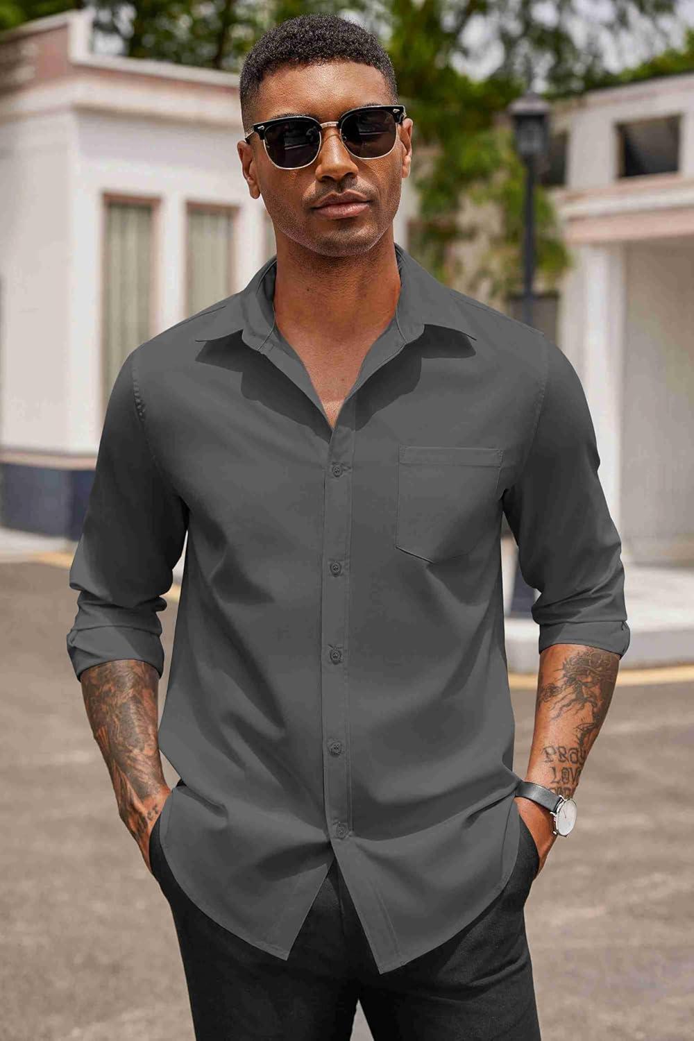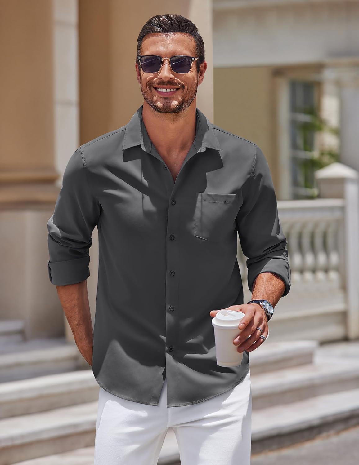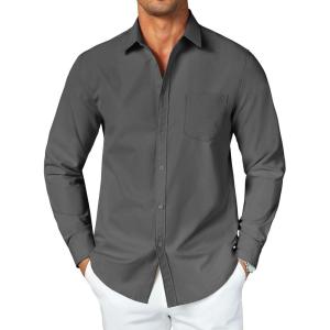 COOFANDY Men’s Button Down Long Sleeve Shirt Casual Untucked Dress Shirt Regular Fit Wedding Shirts(Dark Grey)