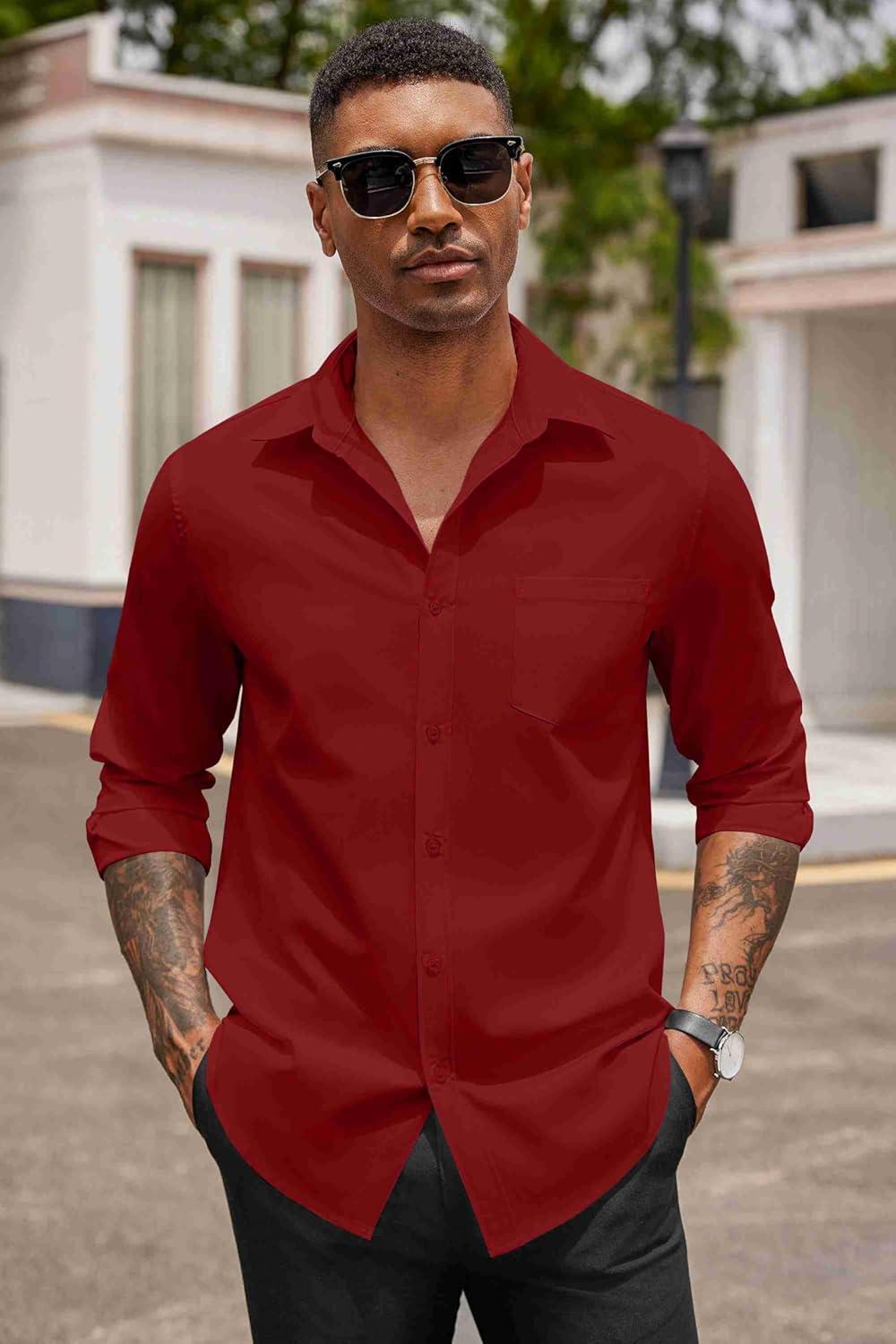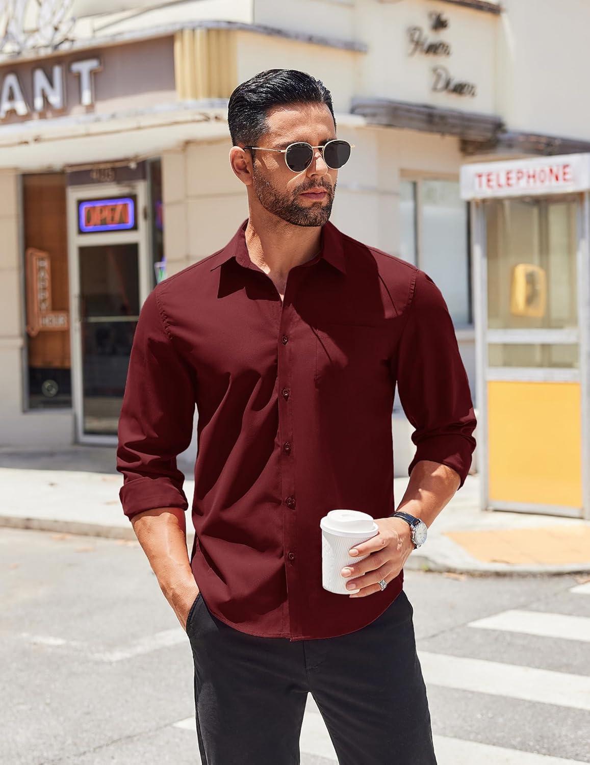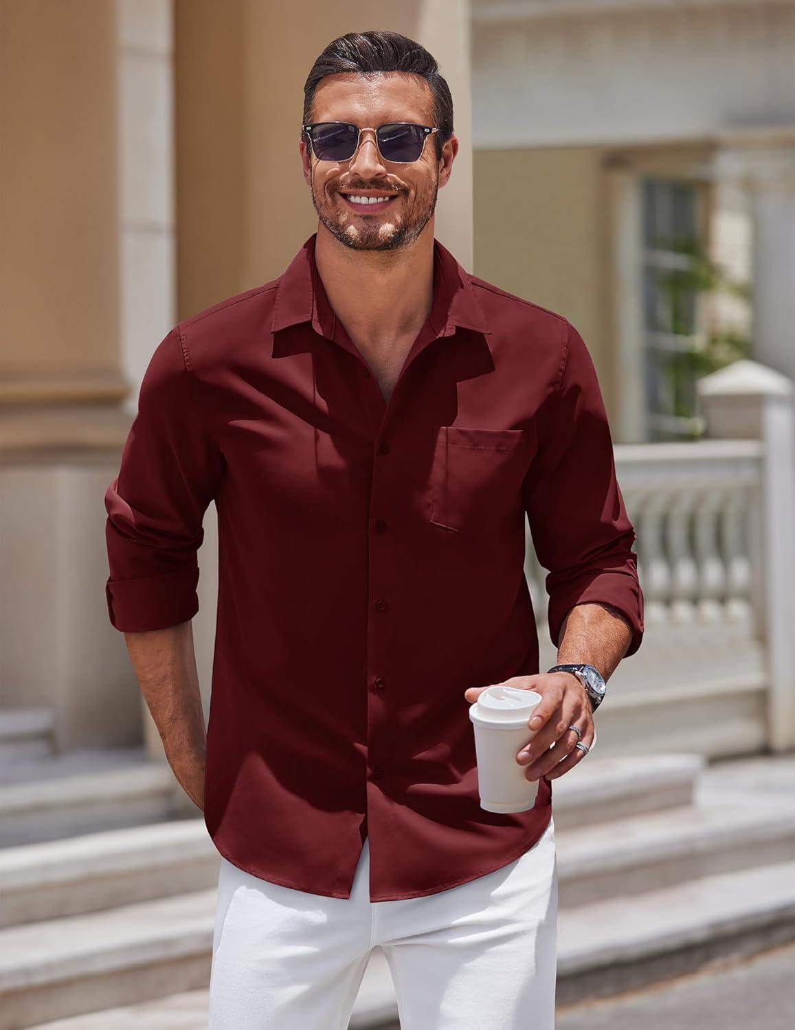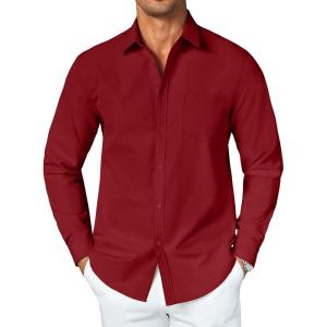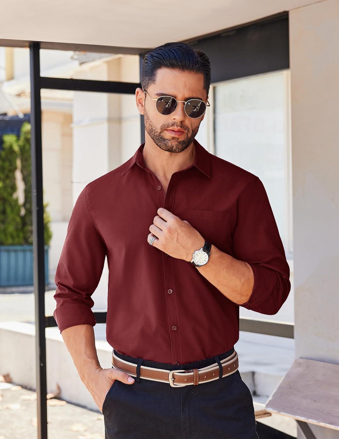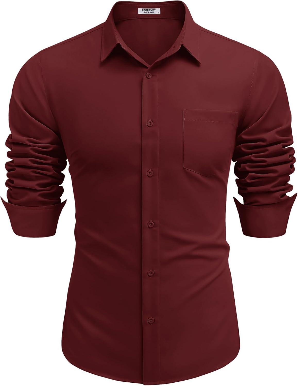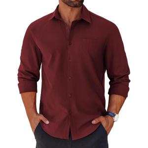 COOFANDY Men’s Button Down Long Sleeve Shirt Casual Untucked Dress Shirt Regular Fit Wedding Shirts(Dark Red)