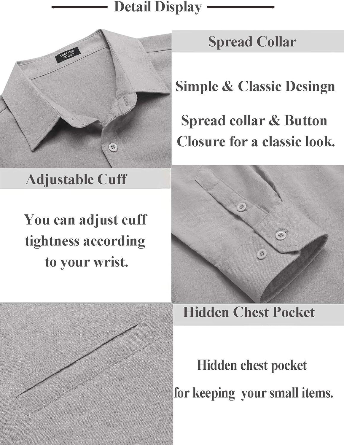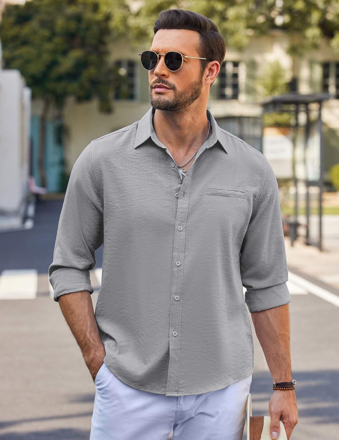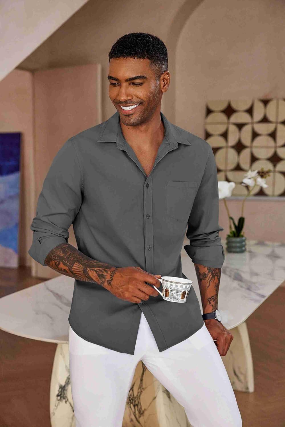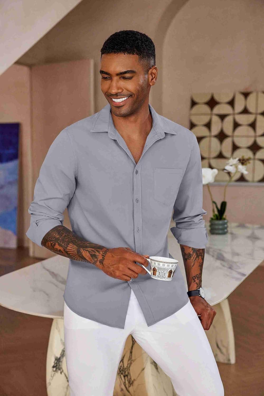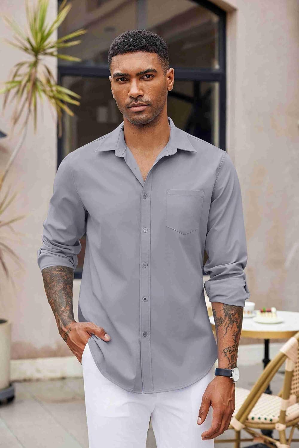 COOFANDY Men’s Button Down Long Sleeve Shirt Casual Untucked Dress Shirt Regular Fit Wedding Shirts(Oyster Gray)