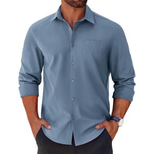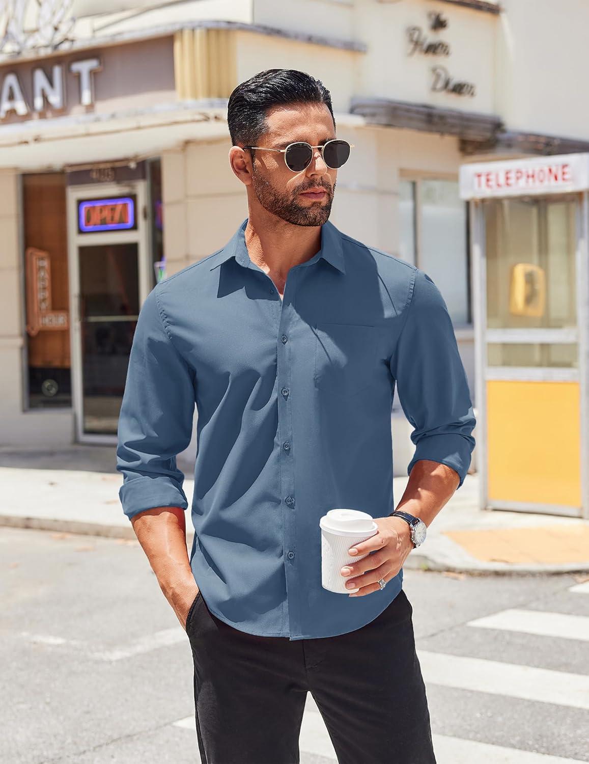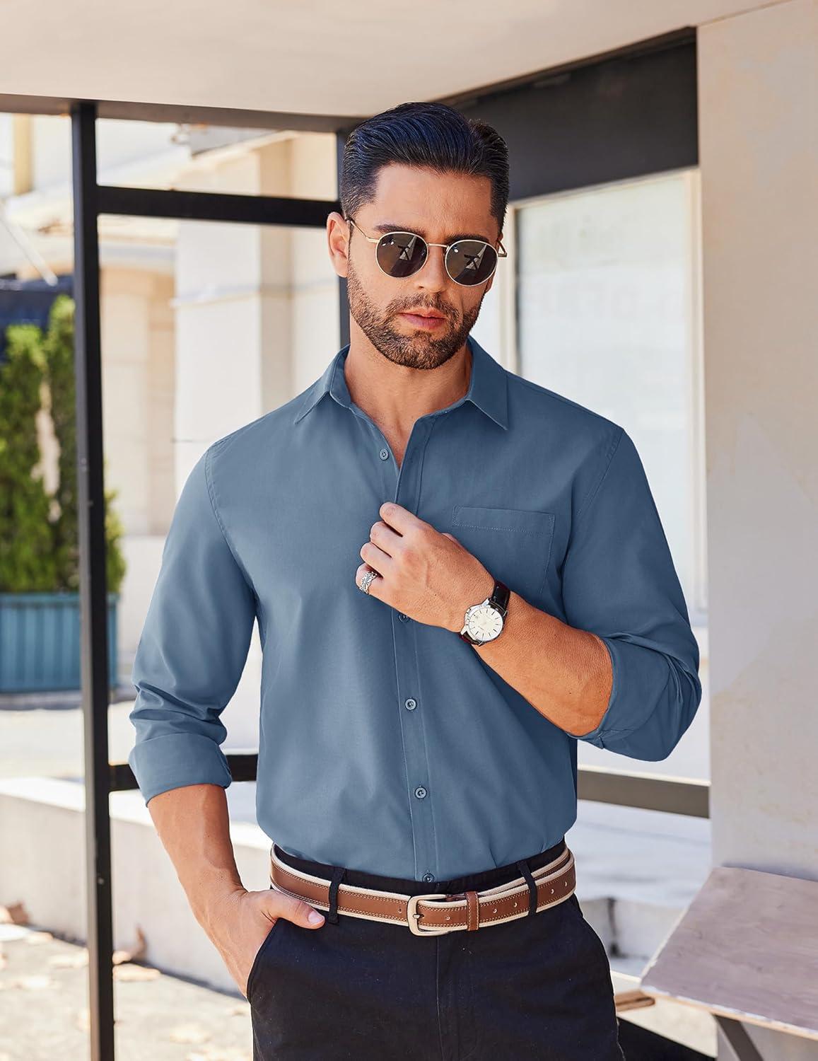 COOFANDY Men’s Button Down Long Sleeve Shirt Casual Untucked Dress Shirt Regular Fit Wedding Shirts(Grey Blue)