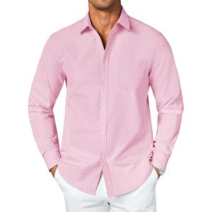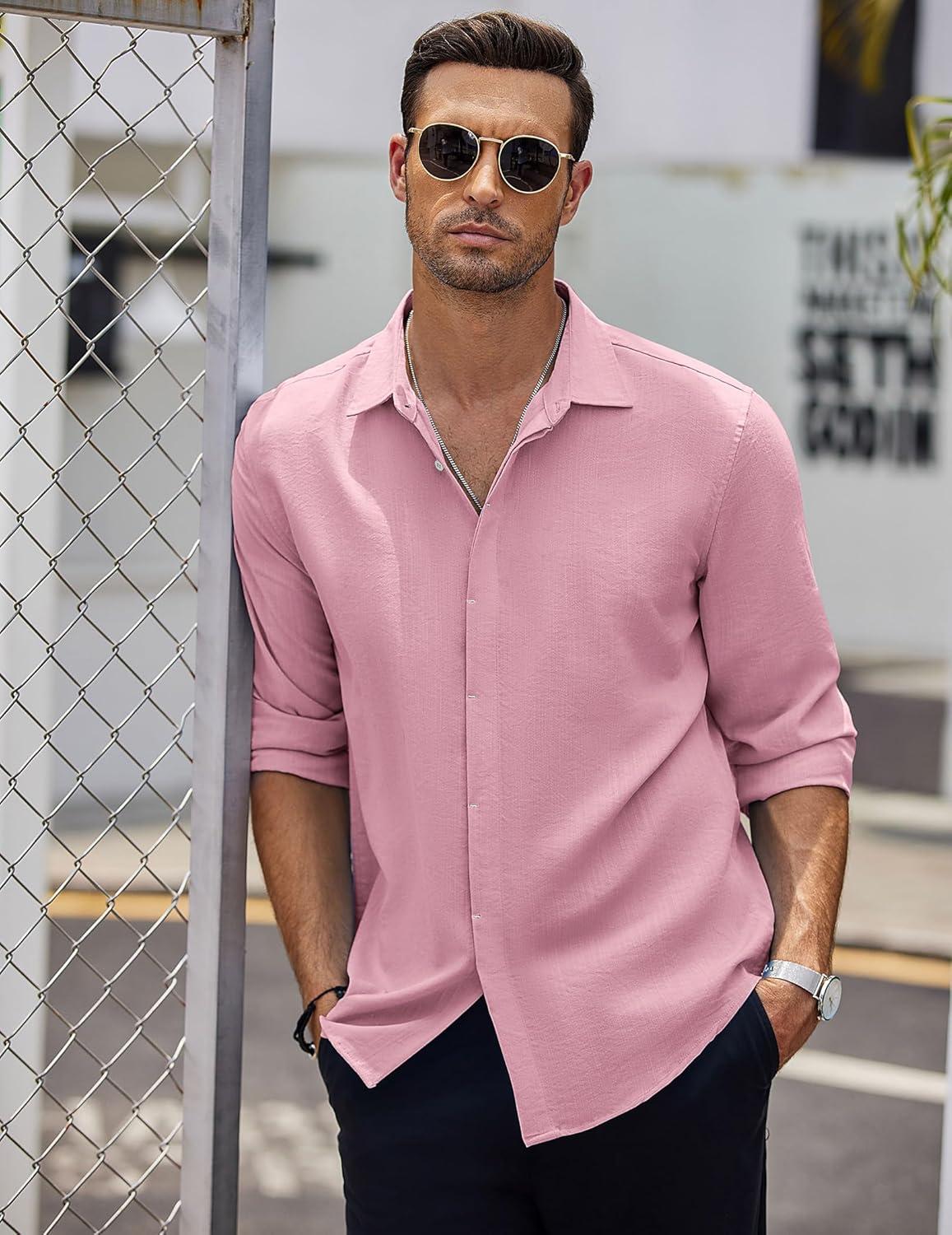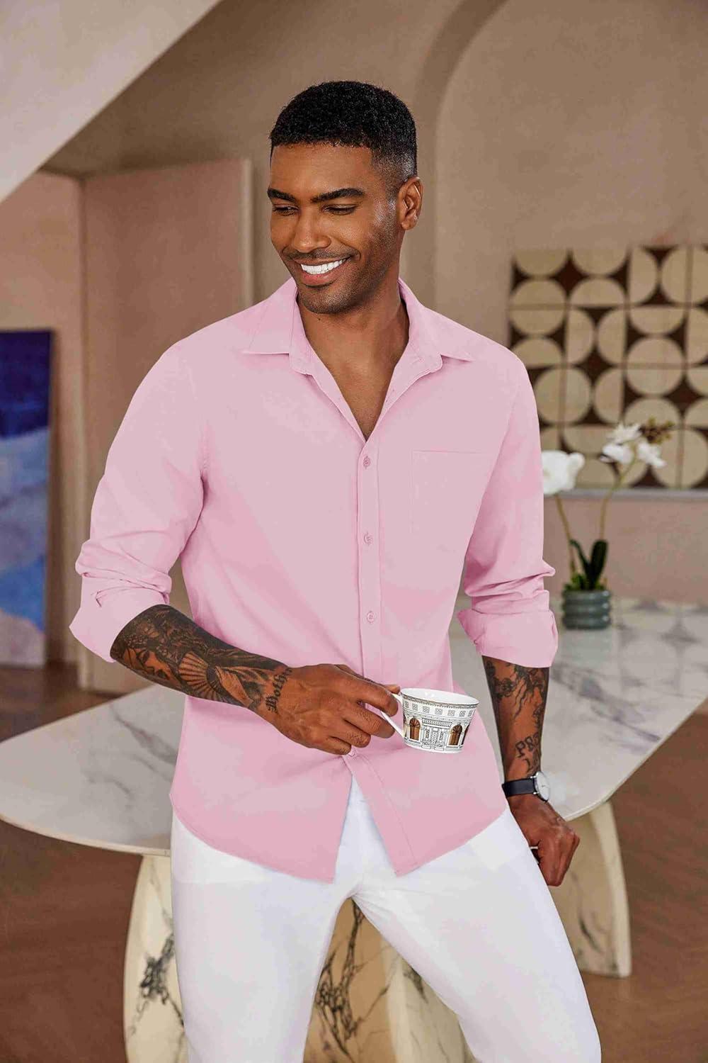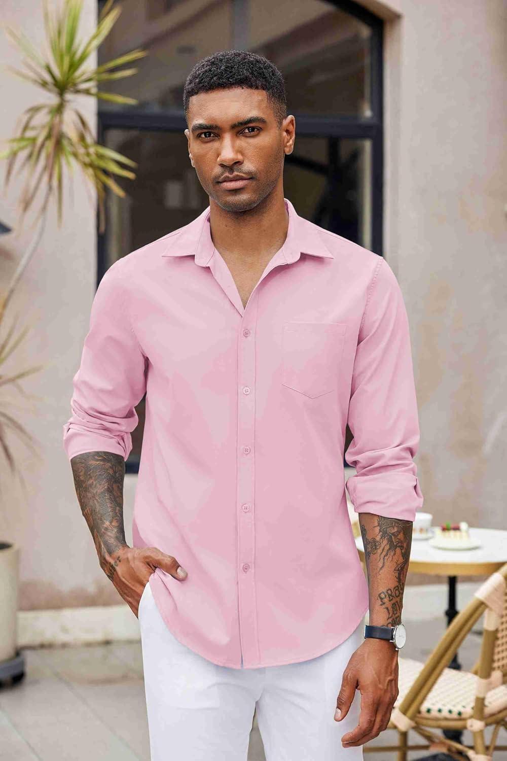 COOFANDY Men’s Button Down Long Sleeve Shirt Casual Untucked Dress Shirt Regular Fit Wedding Shirts(Pink)