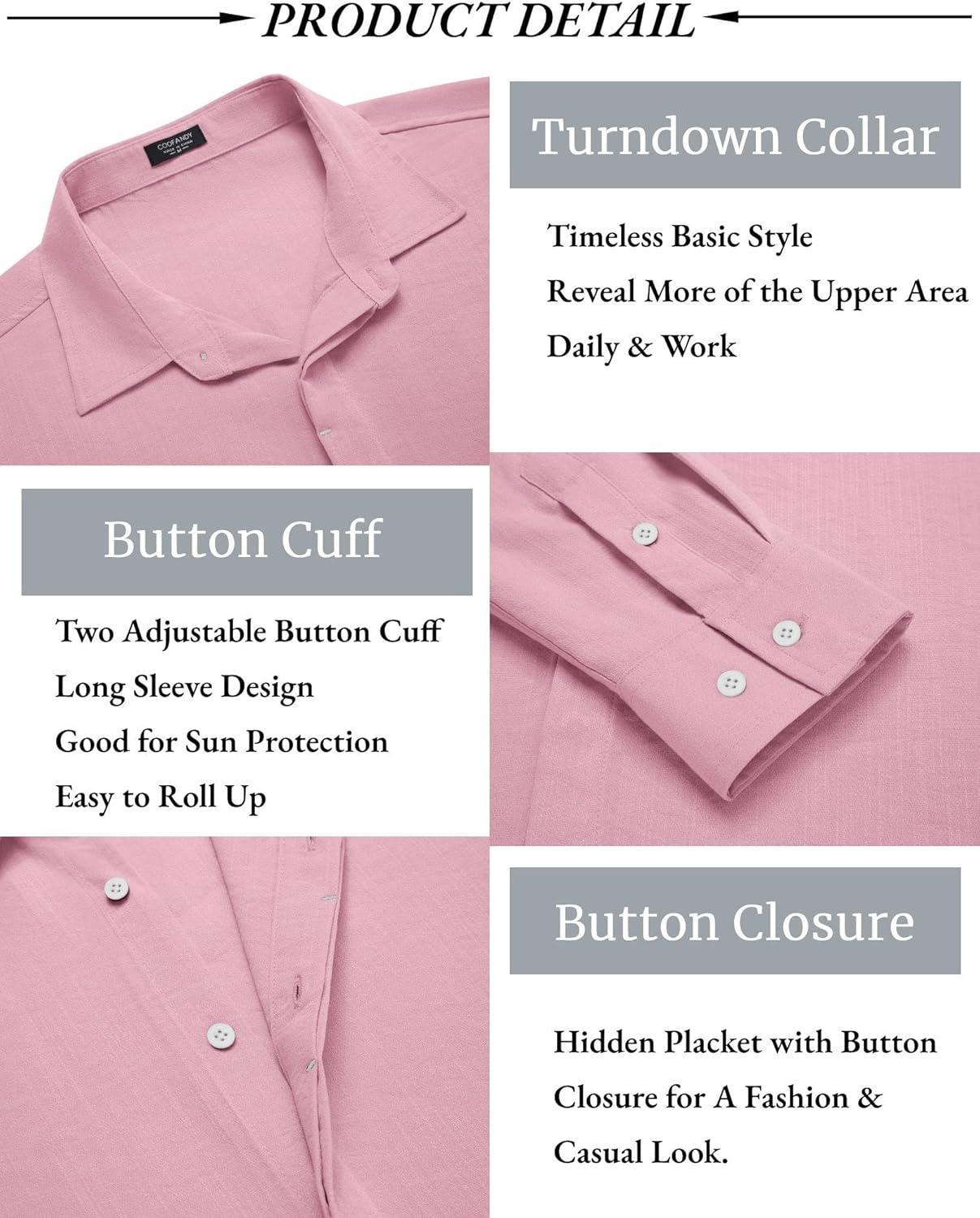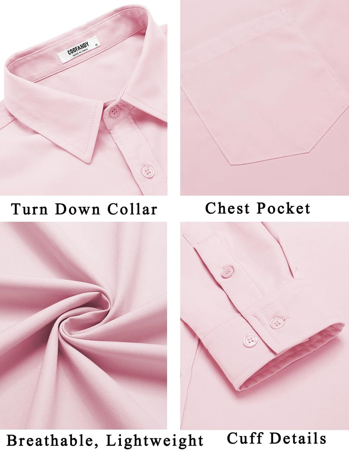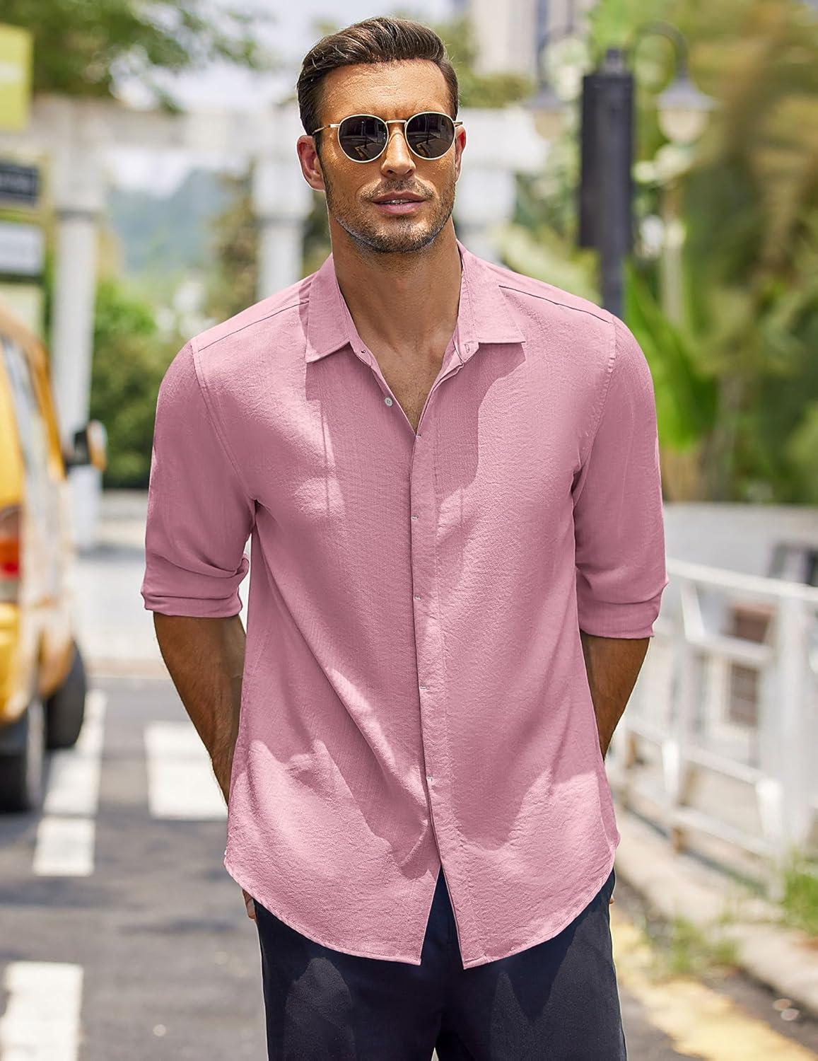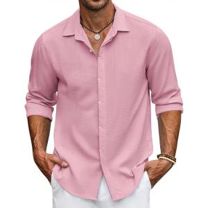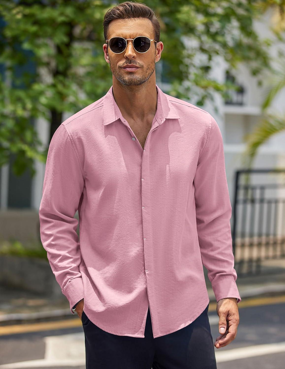 COOFANDY Men’s Button Down Long Sleeve Shirt Casual Untucked Dress Shirt Regular Fit Wedding Shirts(Pink)