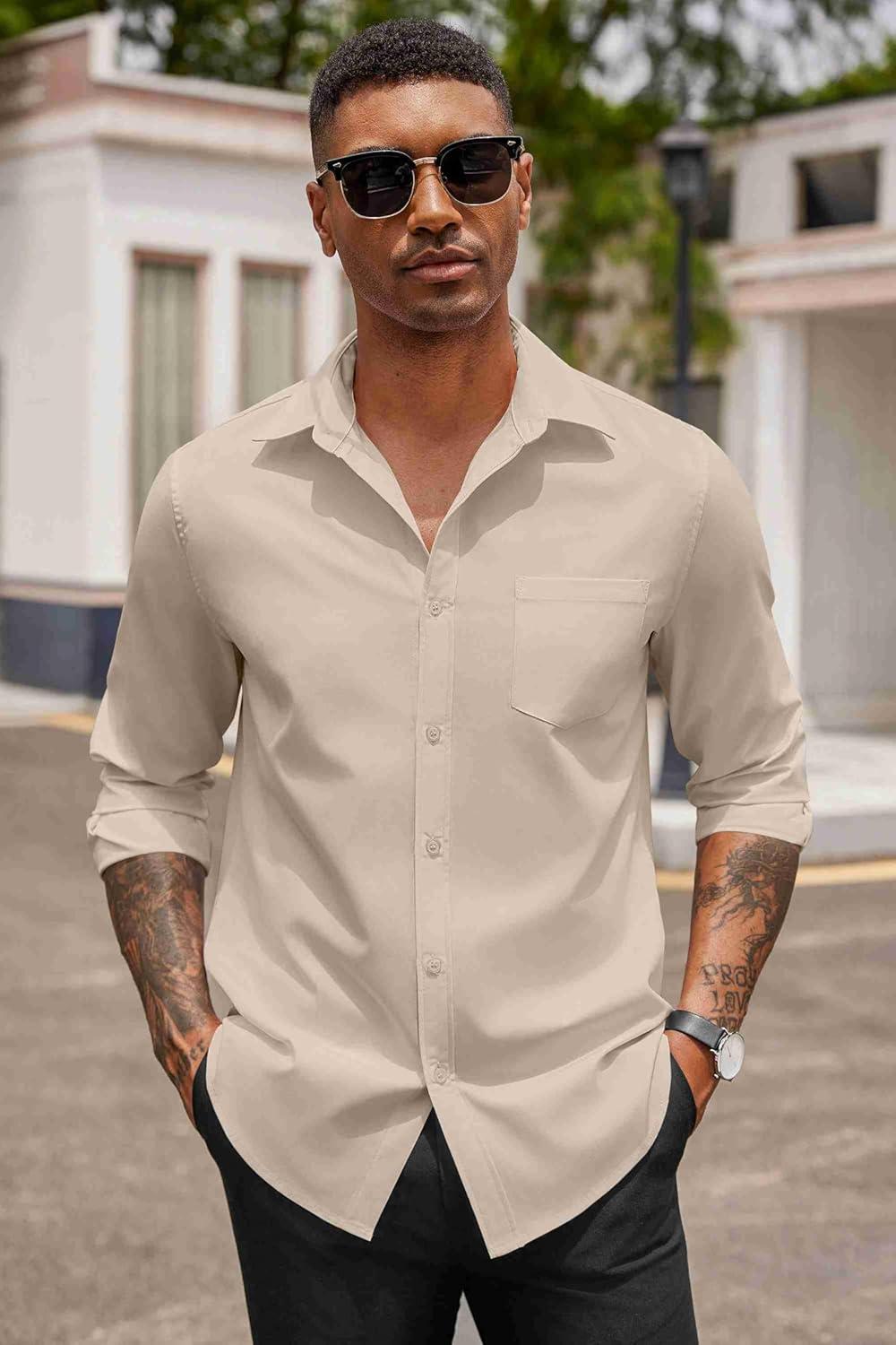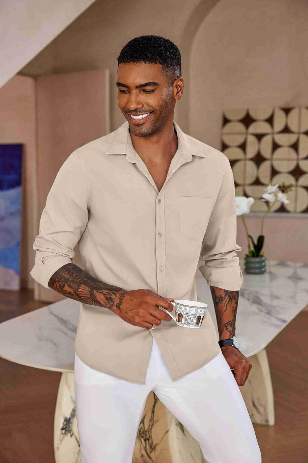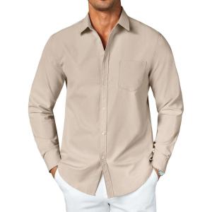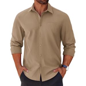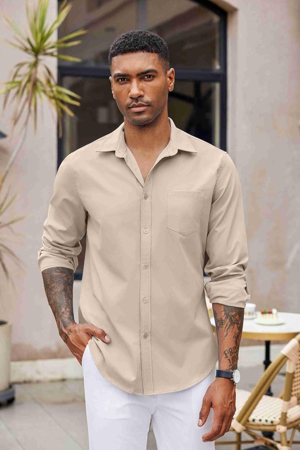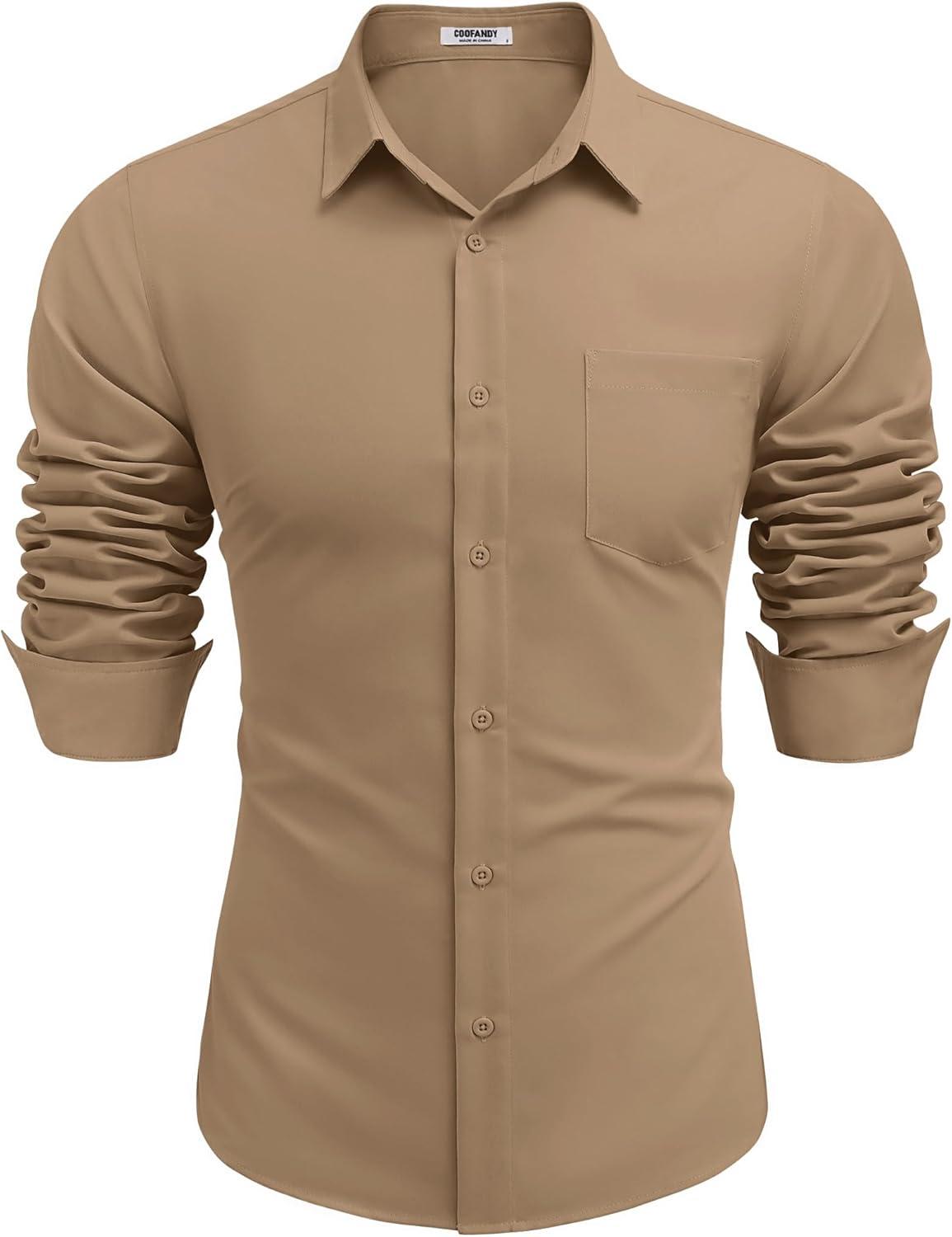 COOFANDY Men’s Button Down Long Sleeve Shirt Casual Untucked Dress Shirt Regular Fit Wedding Shirts(Khaki)