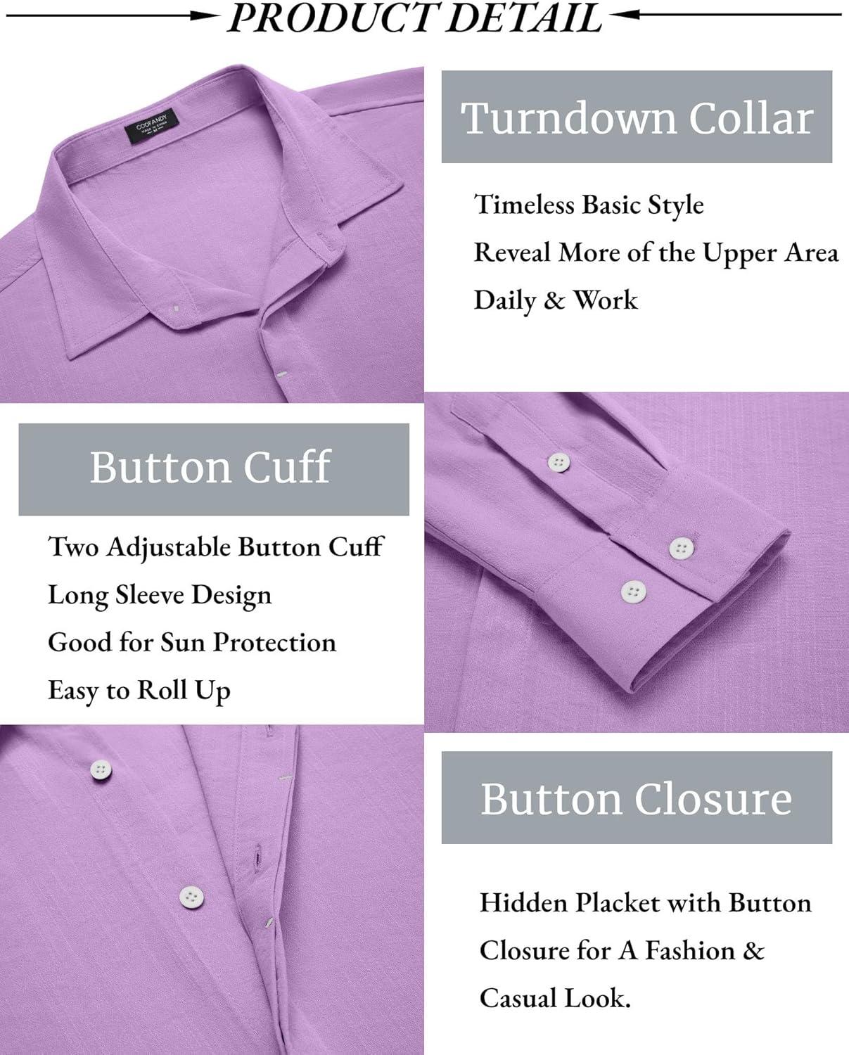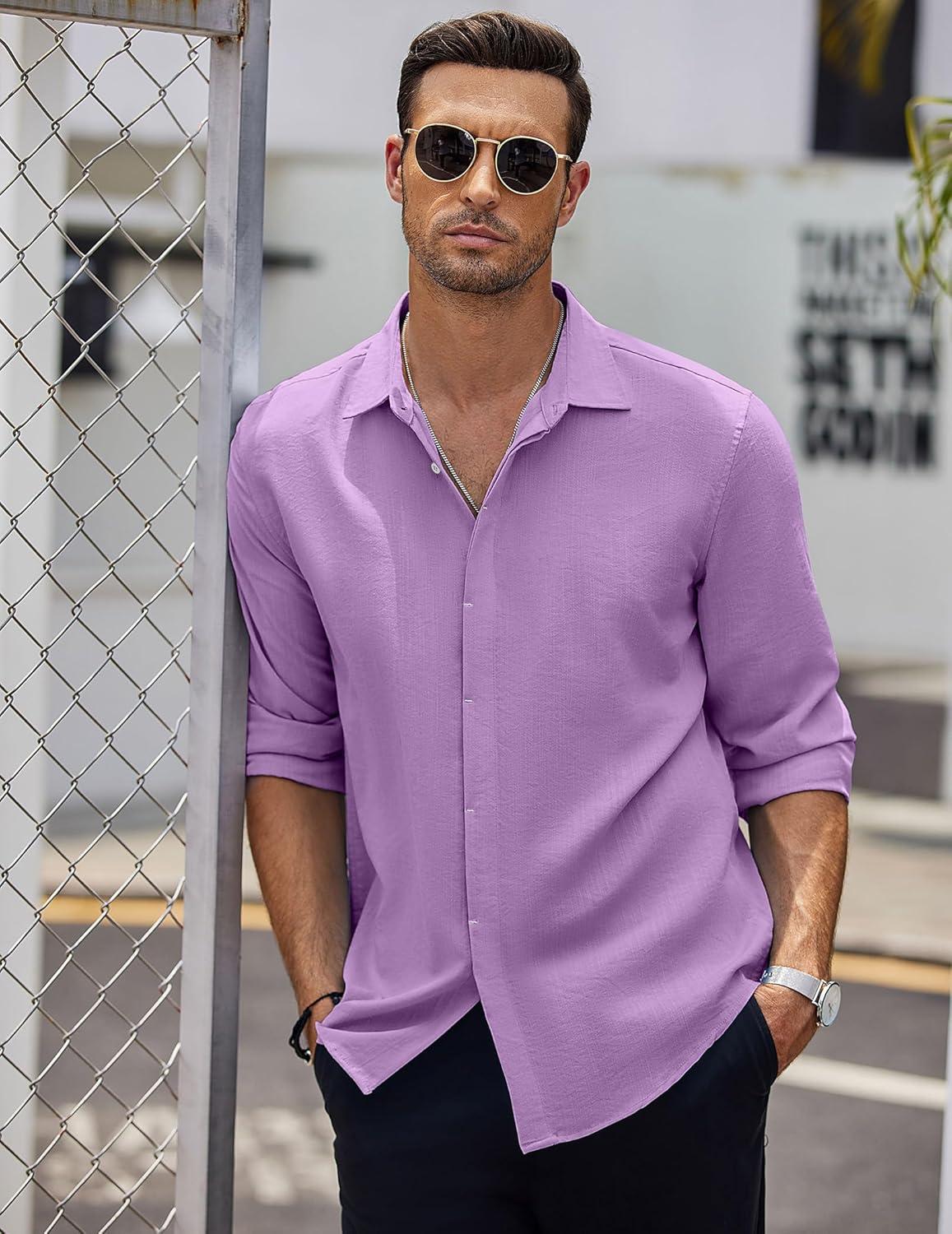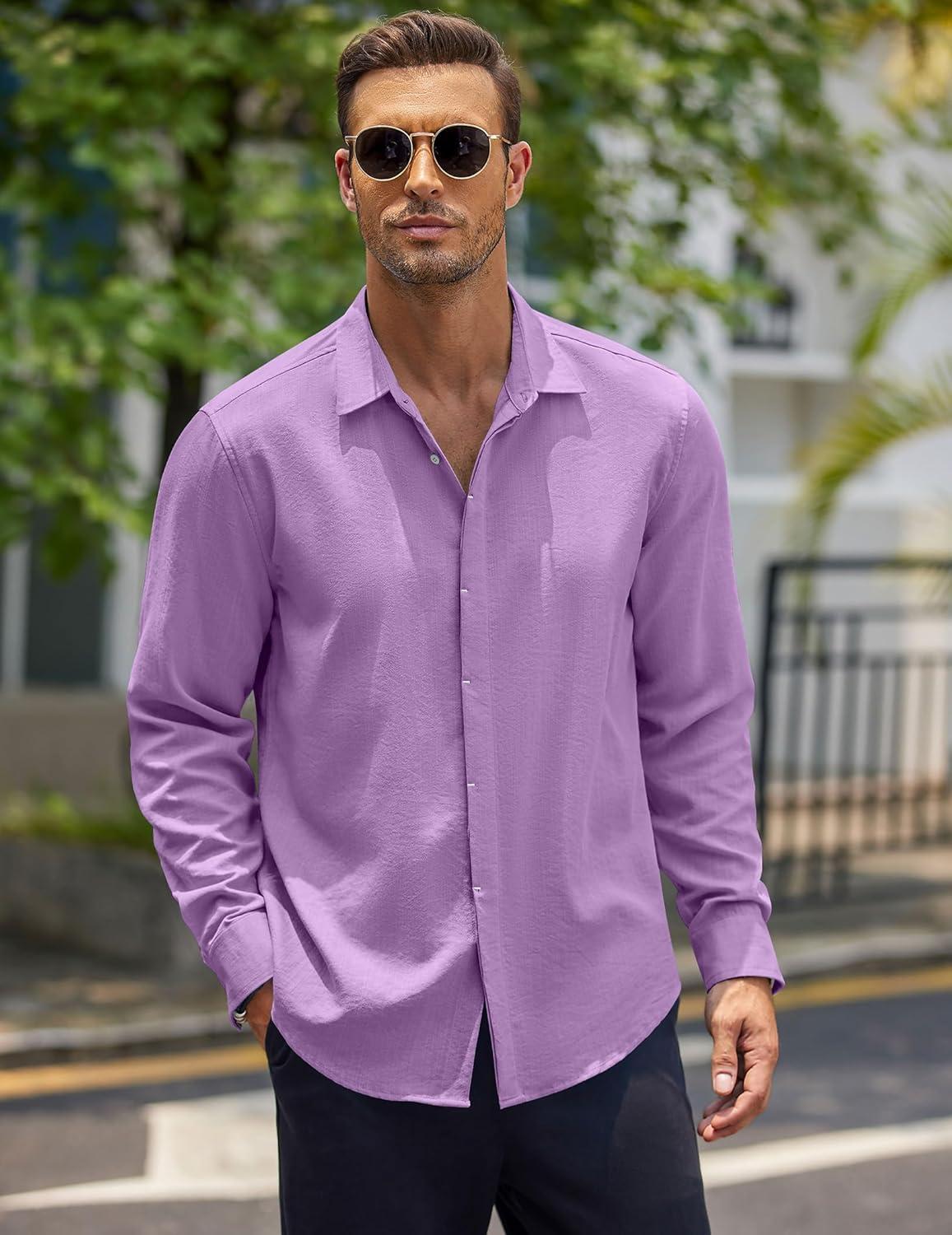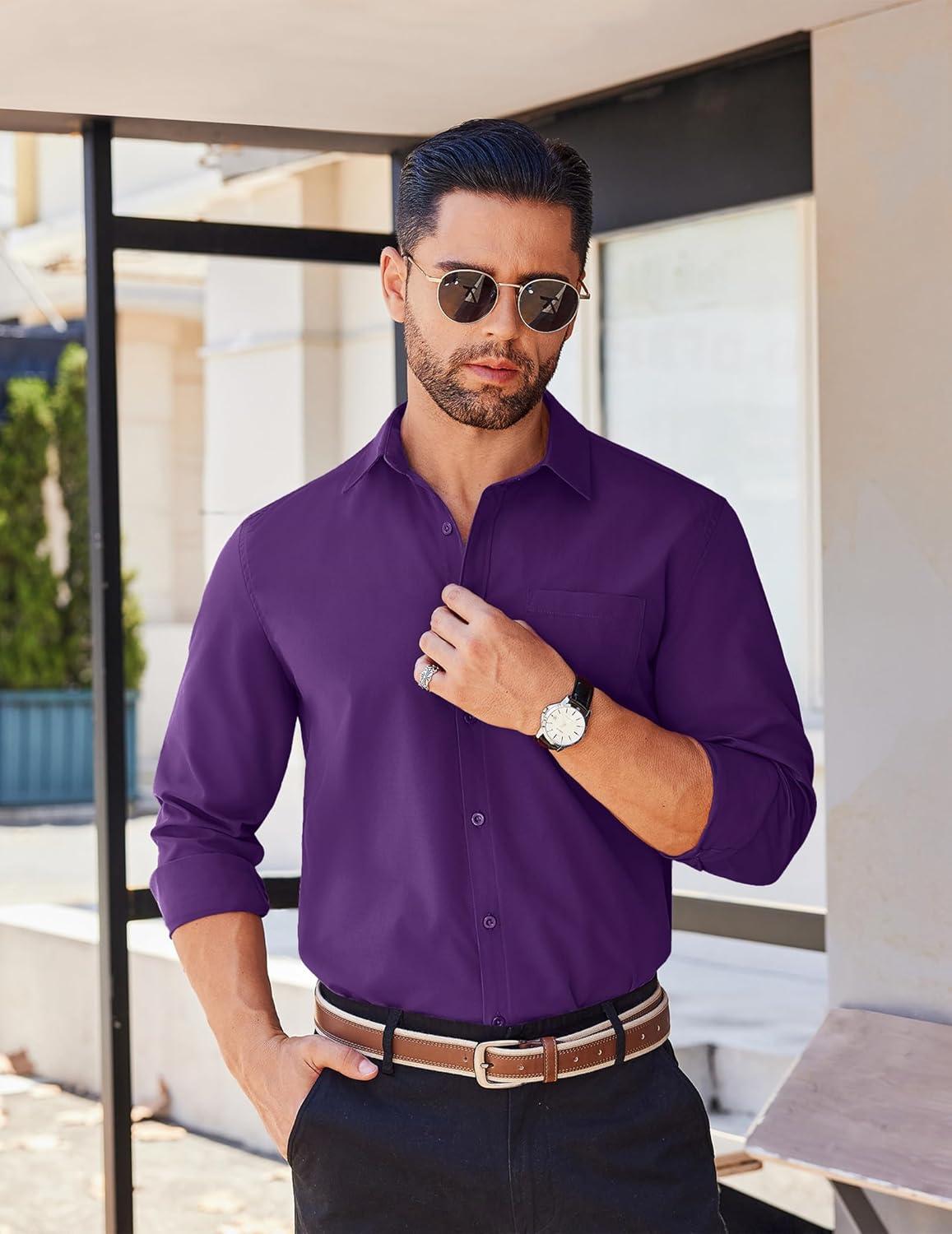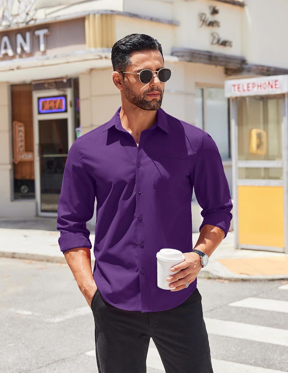 COOFANDY Men’s Button Down Long Sleeve Shirt Casual Untucked Dress Shirt Regular Fit Wedding Shirts(Purple)