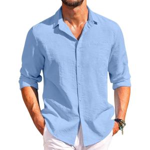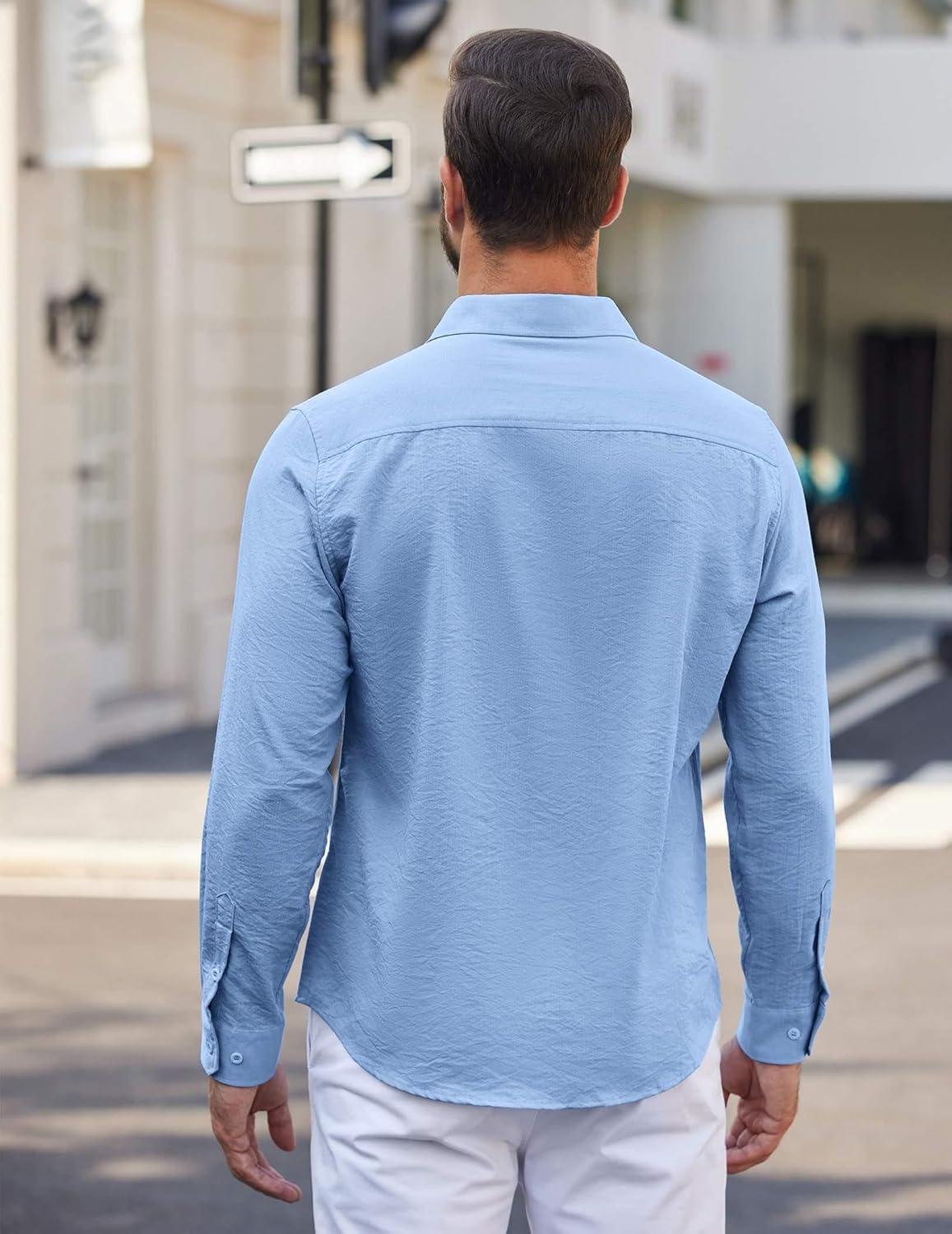 COOFANDY Men’s Button Down Long Sleeve Shirt Casual Untucked Dress Shirt Regular Fit Wedding Shirts(Light Blue)
