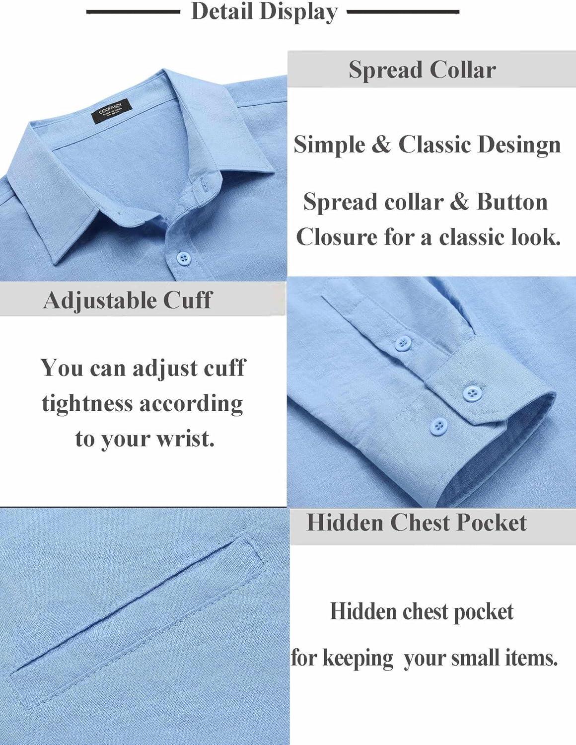 COOFANDY Men’s Button Down Long Sleeve Shirt Casual Untucked Dress Shirt Regular Fit Wedding Shirts(Blue)