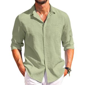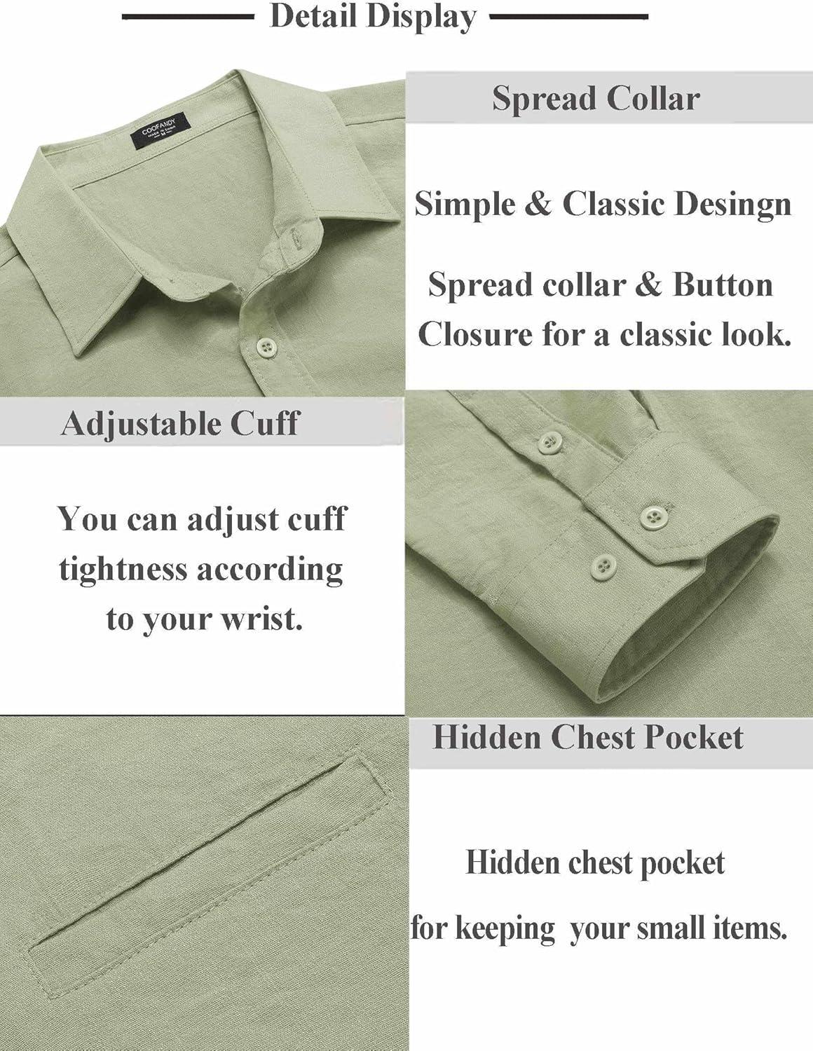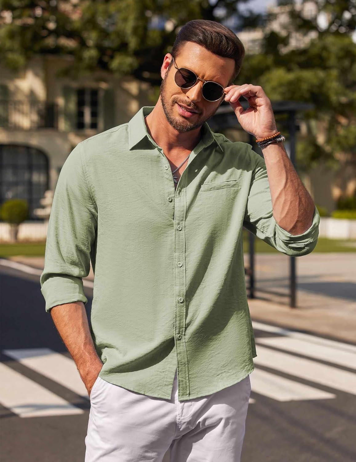 COOFANDY Men’s Button Down Long Sleeve Shirt Casual Untucked Dress Shirt Regular Fit Wedding Shirts(Light Green)