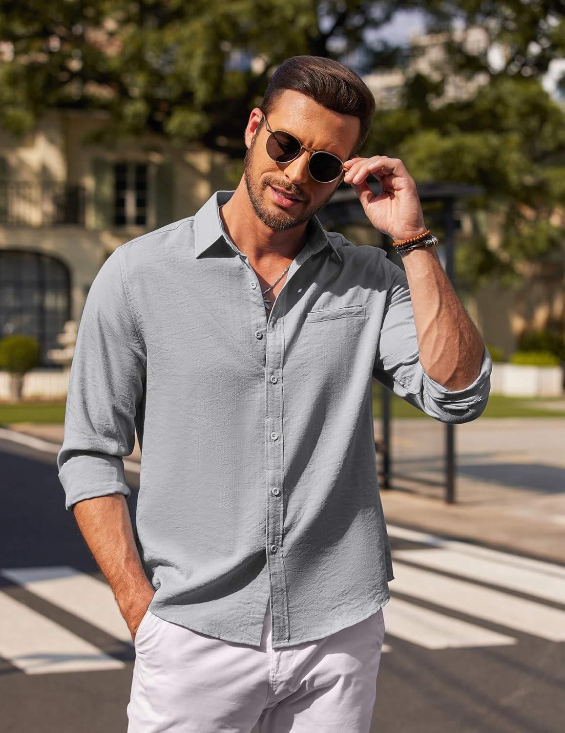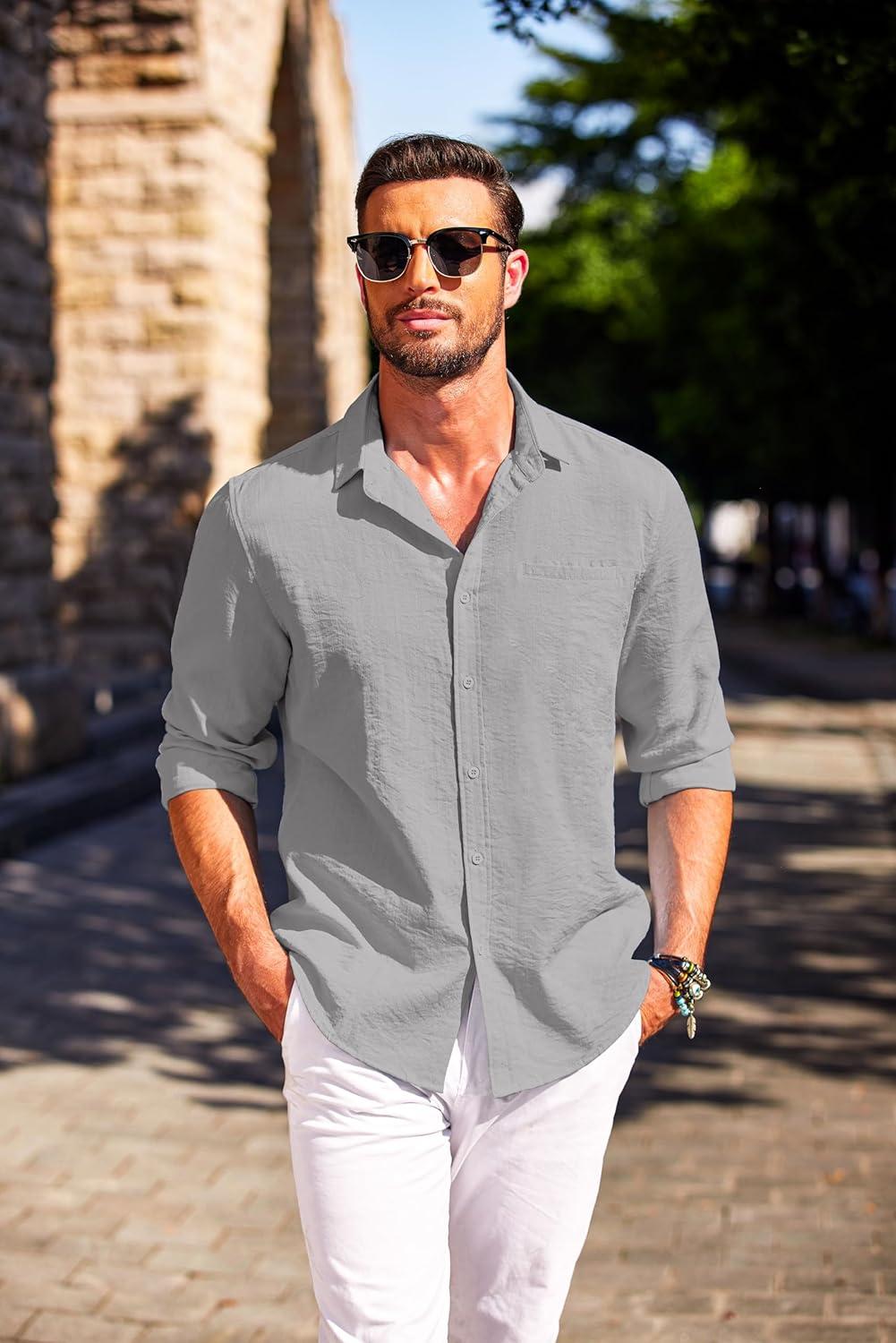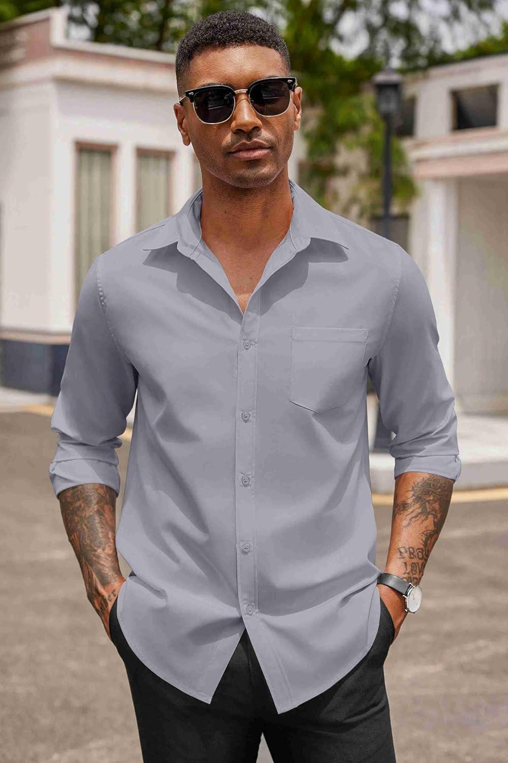 COOFANDY Men’s Button Down Long Sleeve Shirt Casual Untucked Dress Shirt Regular Fit Wedding Shirts(Light Grey)