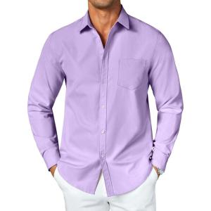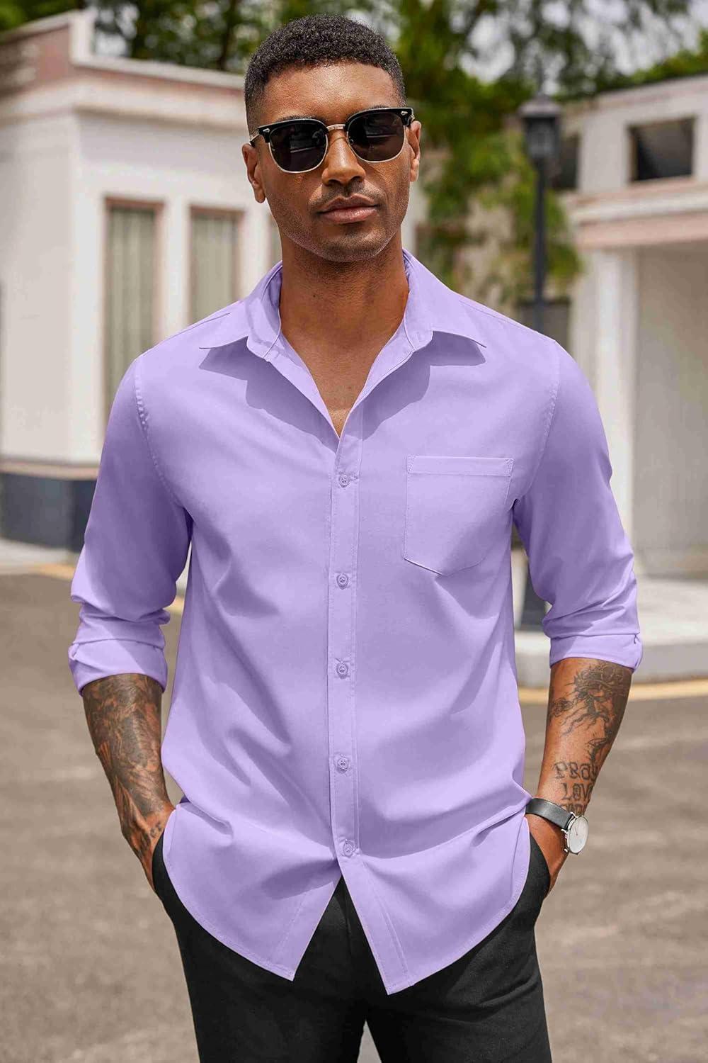 COOFANDY Men’s Button Down Long Sleeve Shirt Casual Untucked Dress Shirt Regular Fit Wedding Shirts(Lavender)
