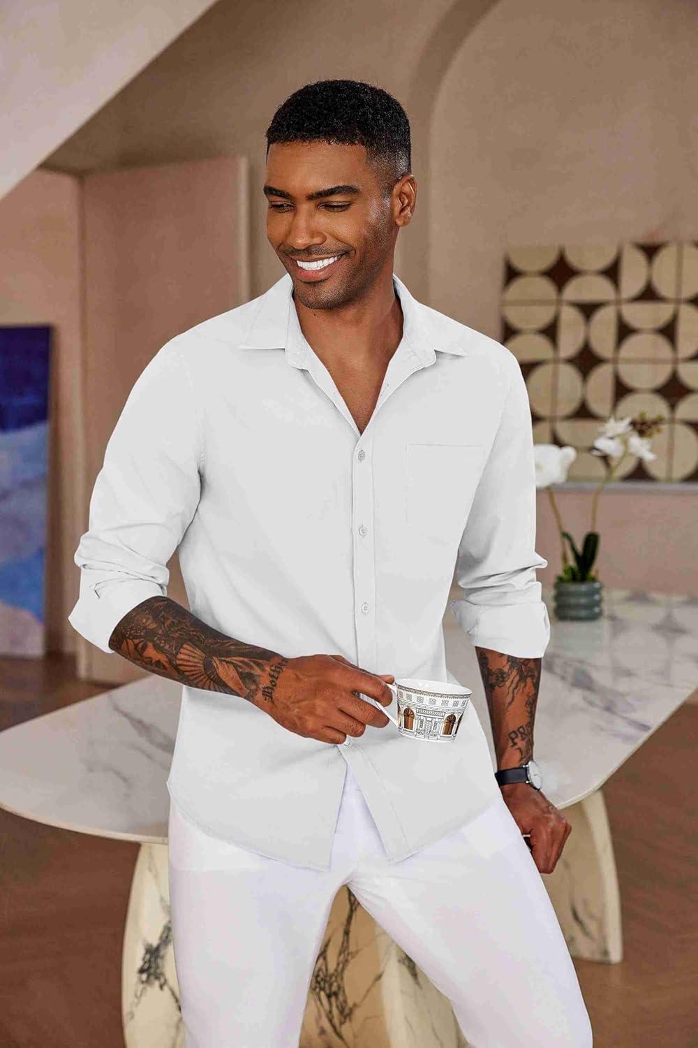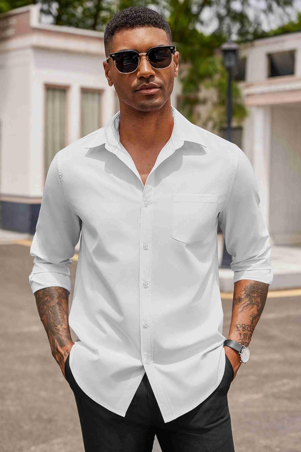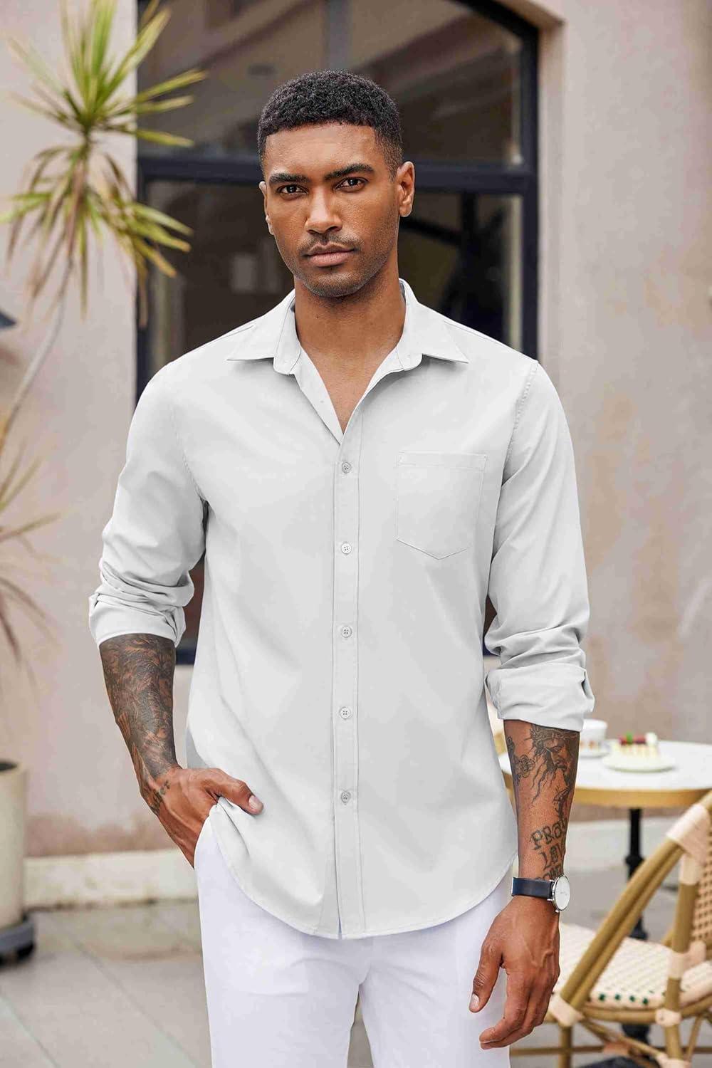 COOFANDY Men’s Button Down Long Sleeve Shirt Casual Untucked Dress Shirt Regular Fit Wedding Shirts(White)