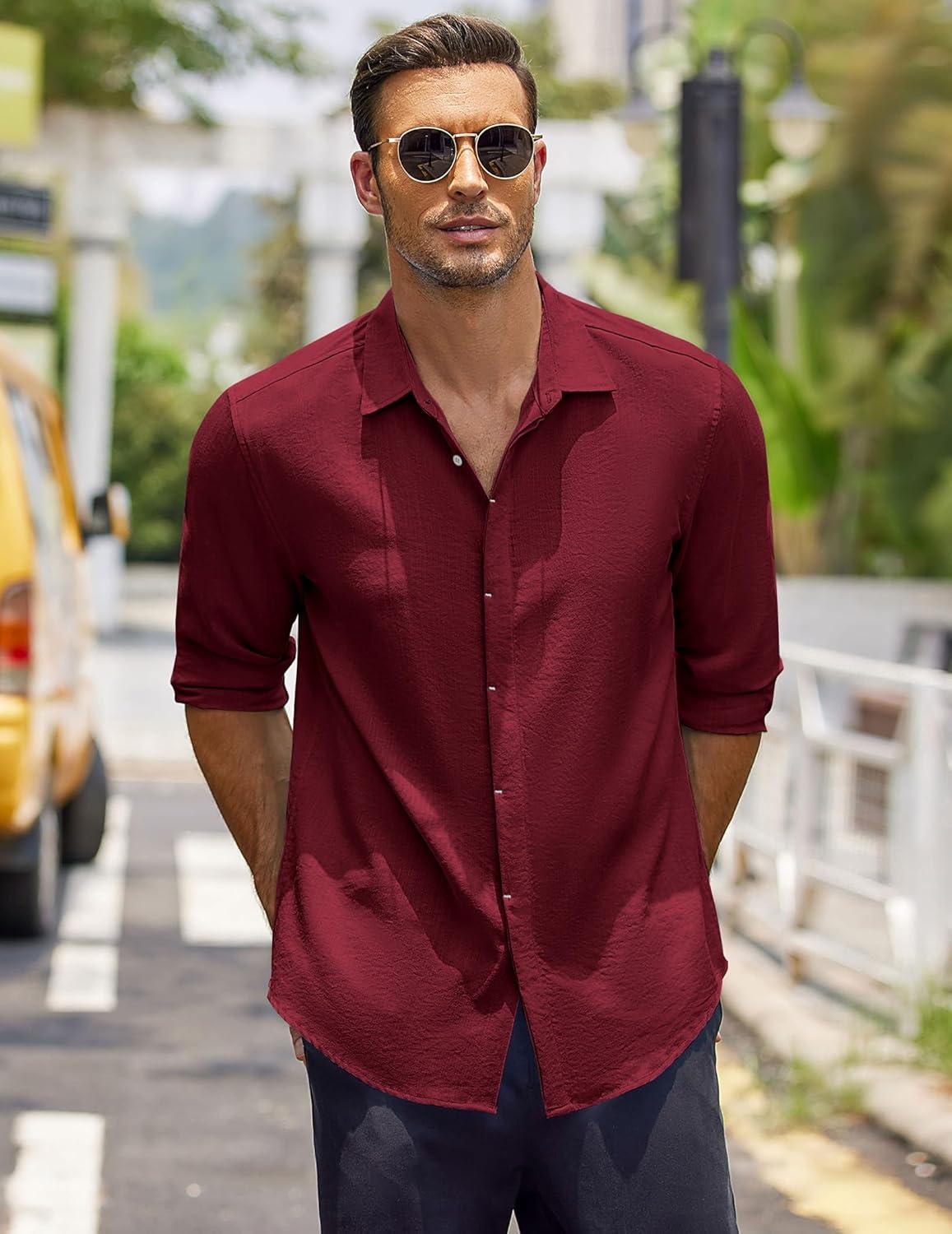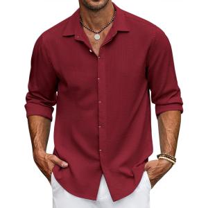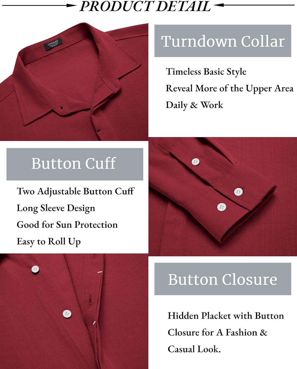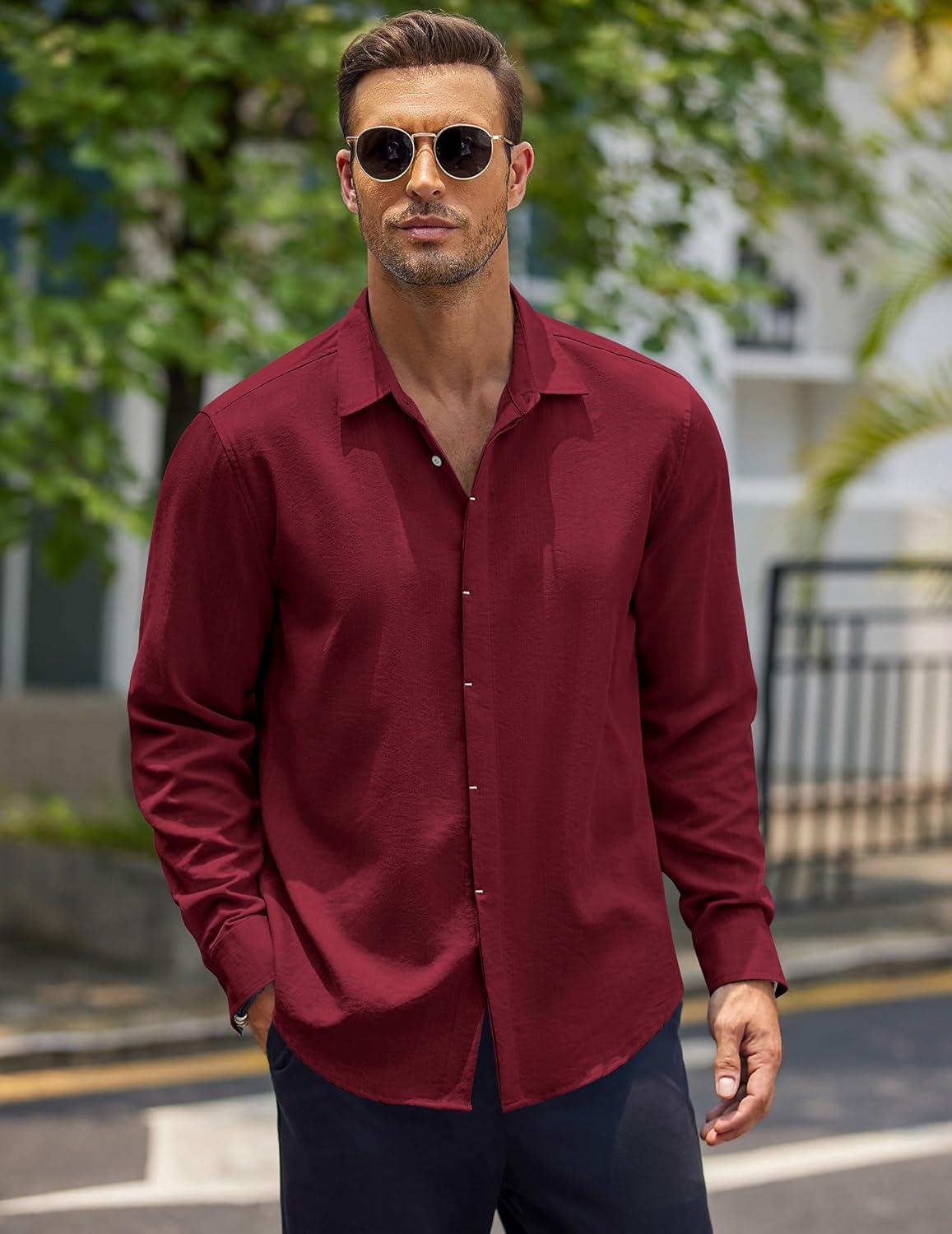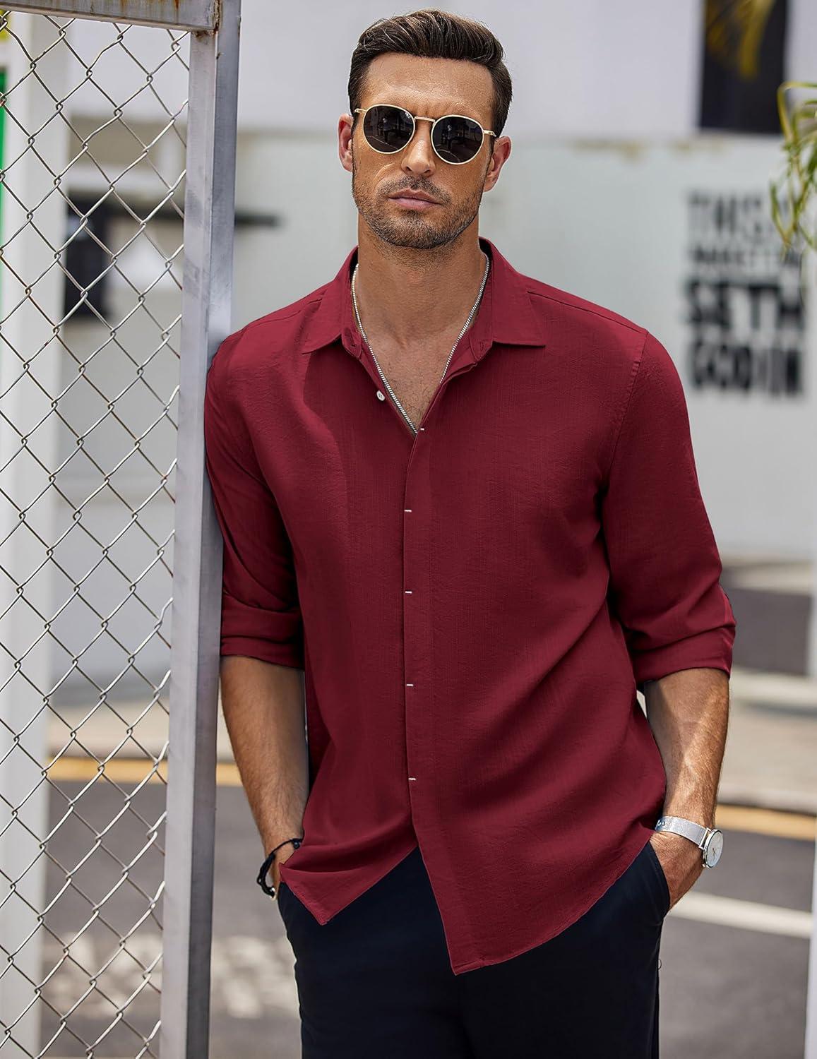 COOFANDY Men’s Button Down Long Sleeve Shirt Casual Untucked Dress Shirt Regular Fit Wedding Shirts(Wine Red)