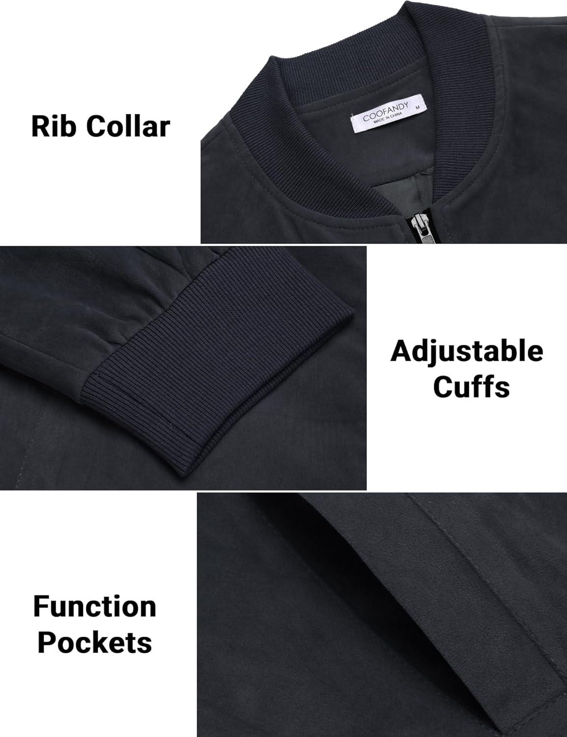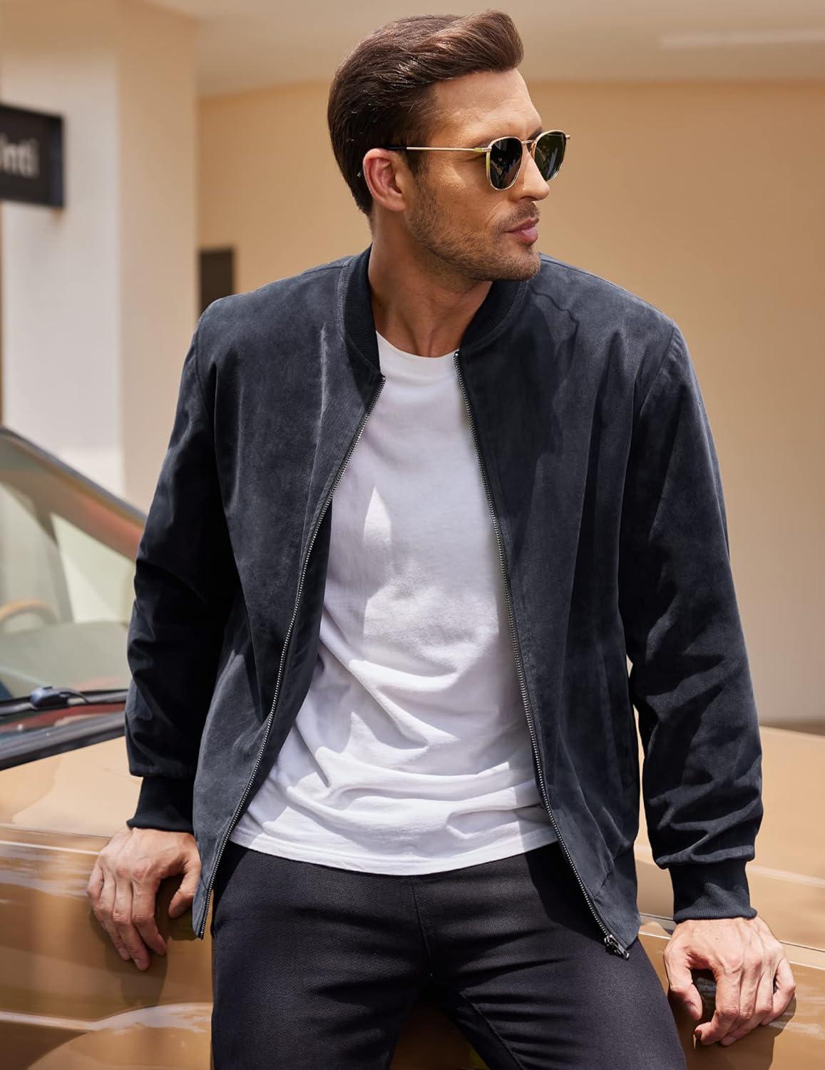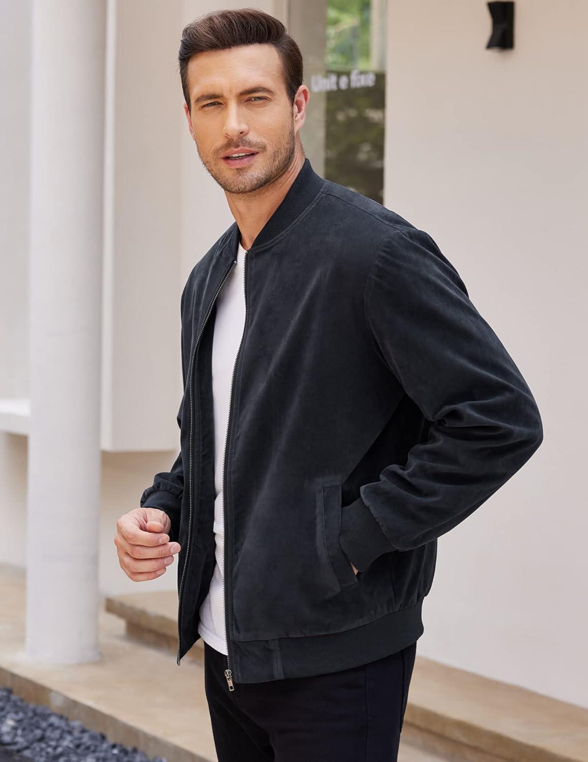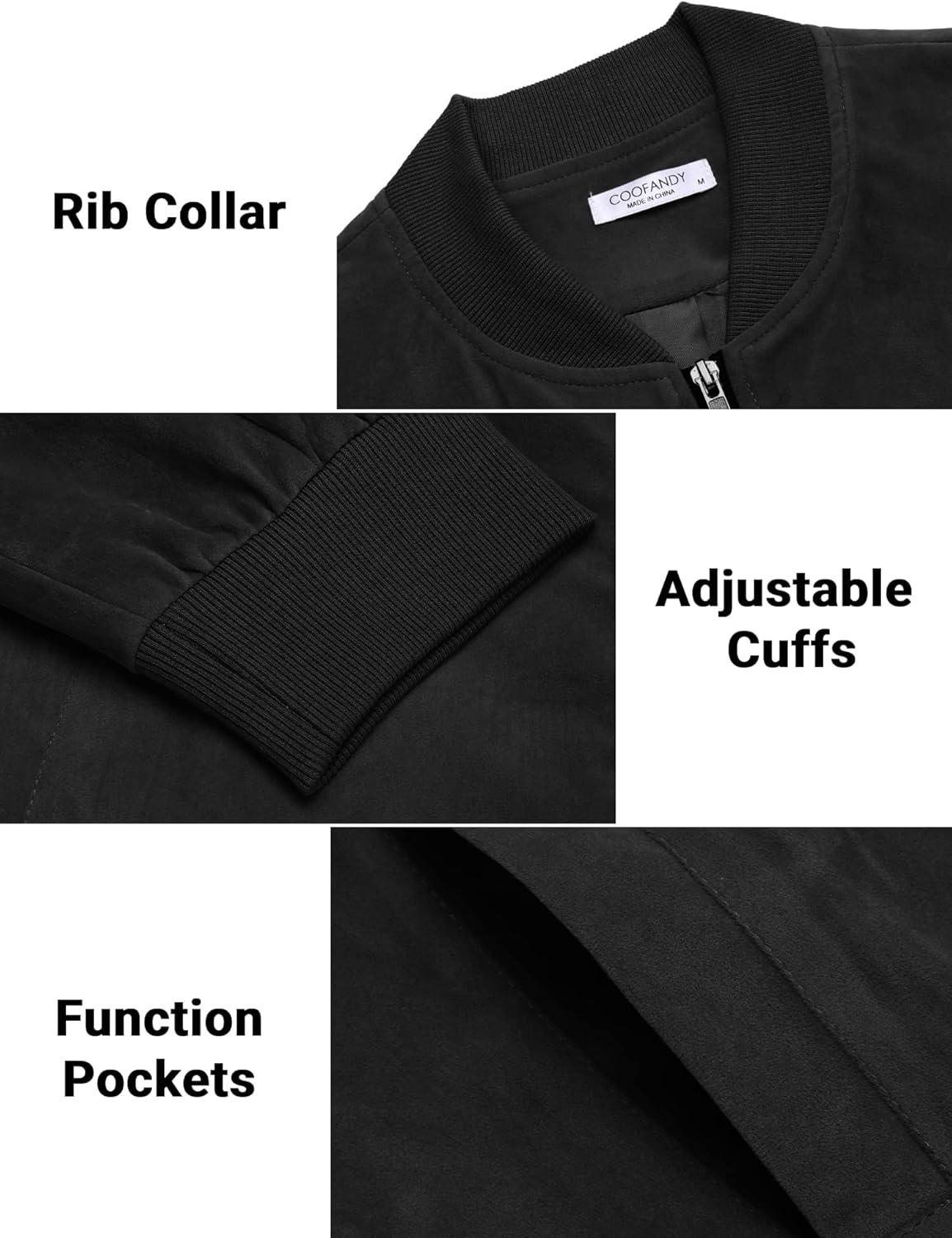 COOFANDY Men’s Casual Varsity Jacket Vintage Lightweight Suede Bomber Jackets(Black)