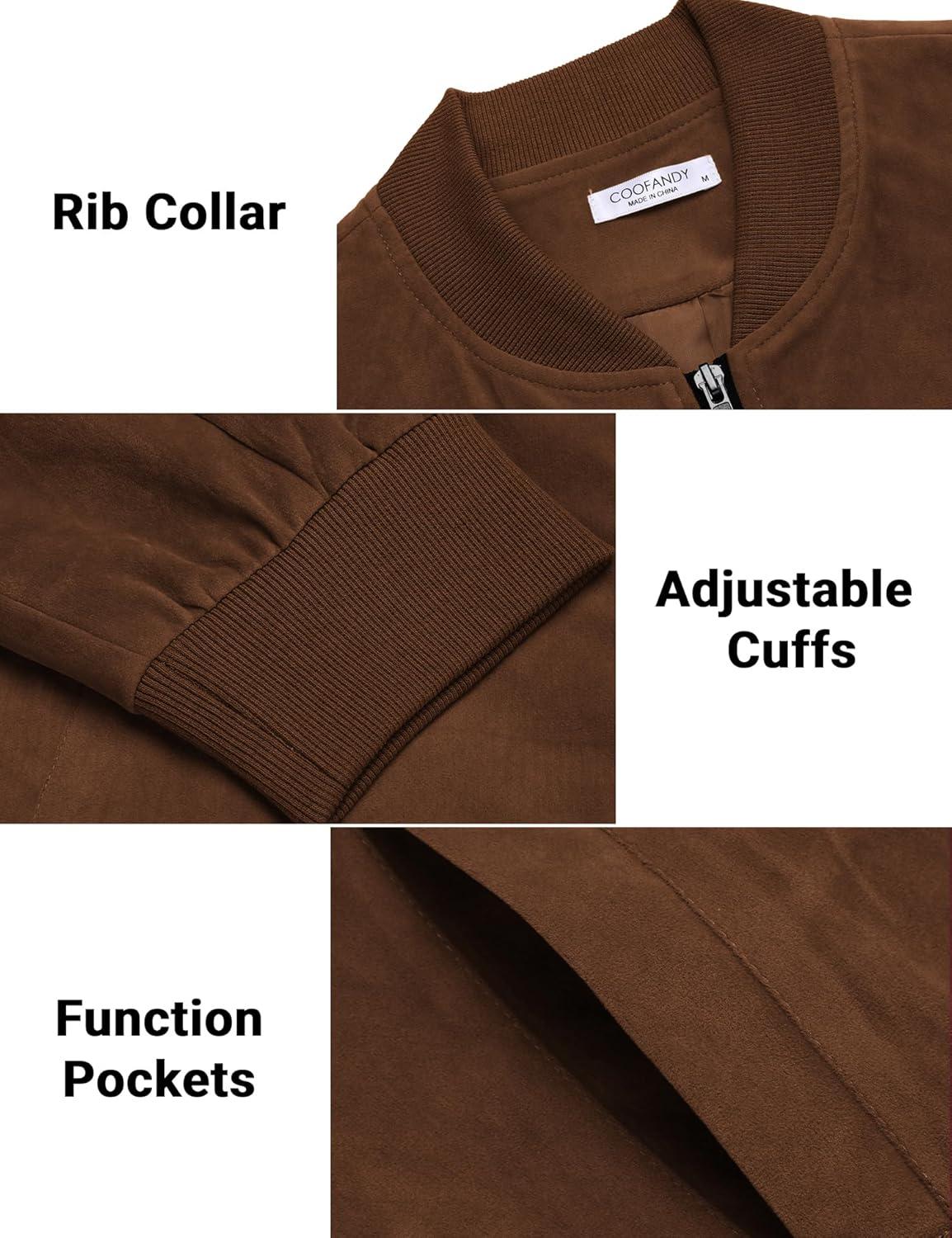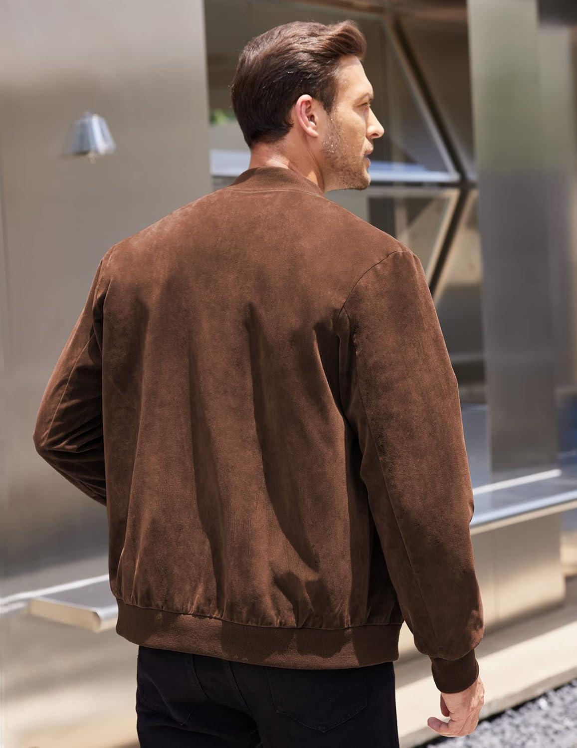 COOFANDY Men’s Casual Varsity Jacket Vintage Lightweight Suede Bomber Jackets(Brown)