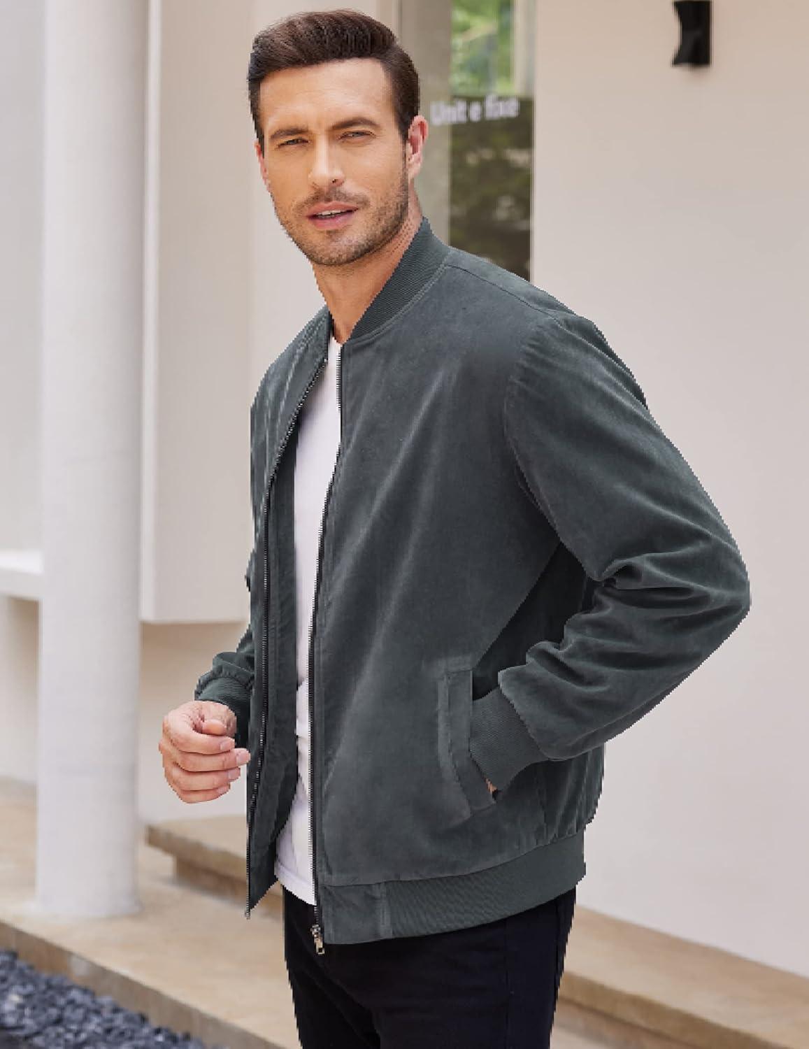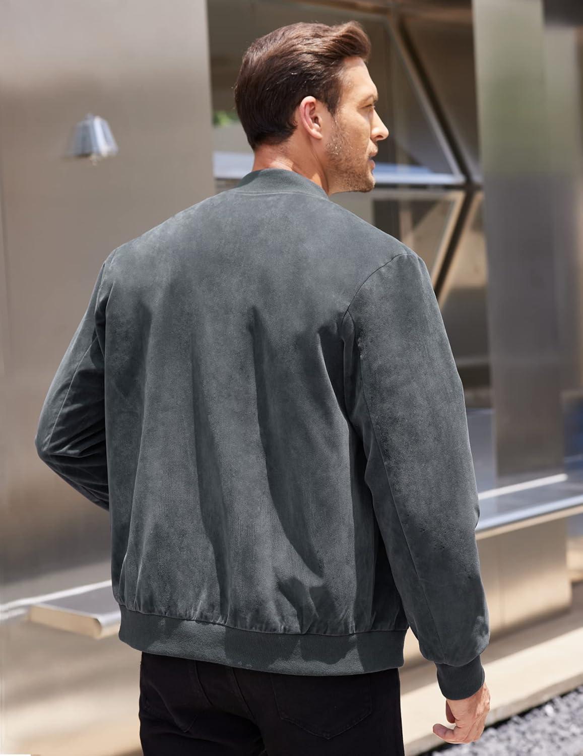 COOFANDY Men’s Casual Varsity Jacket Vintage Lightweight Suede Bomber Jackets(Dark Grey)