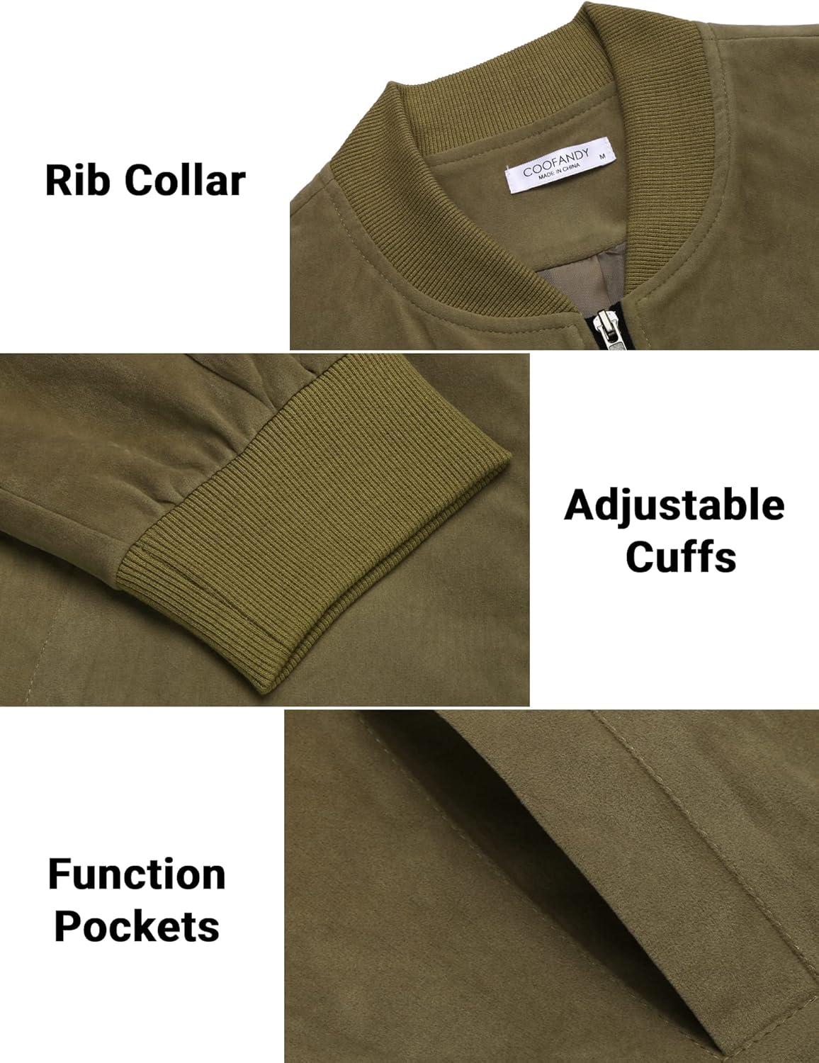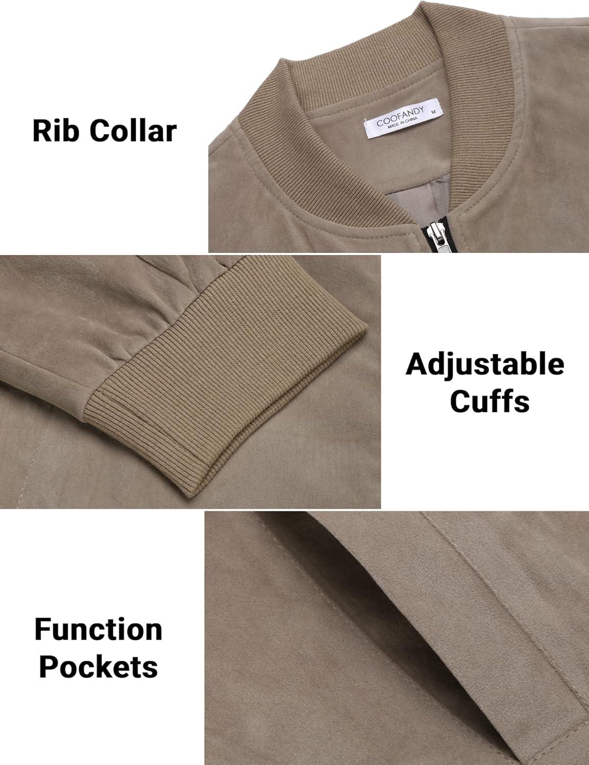 COOFANDY Men’s Casual Varsity Jacket Vintage Lightweight Suede Bomber Jackets(Khaki)