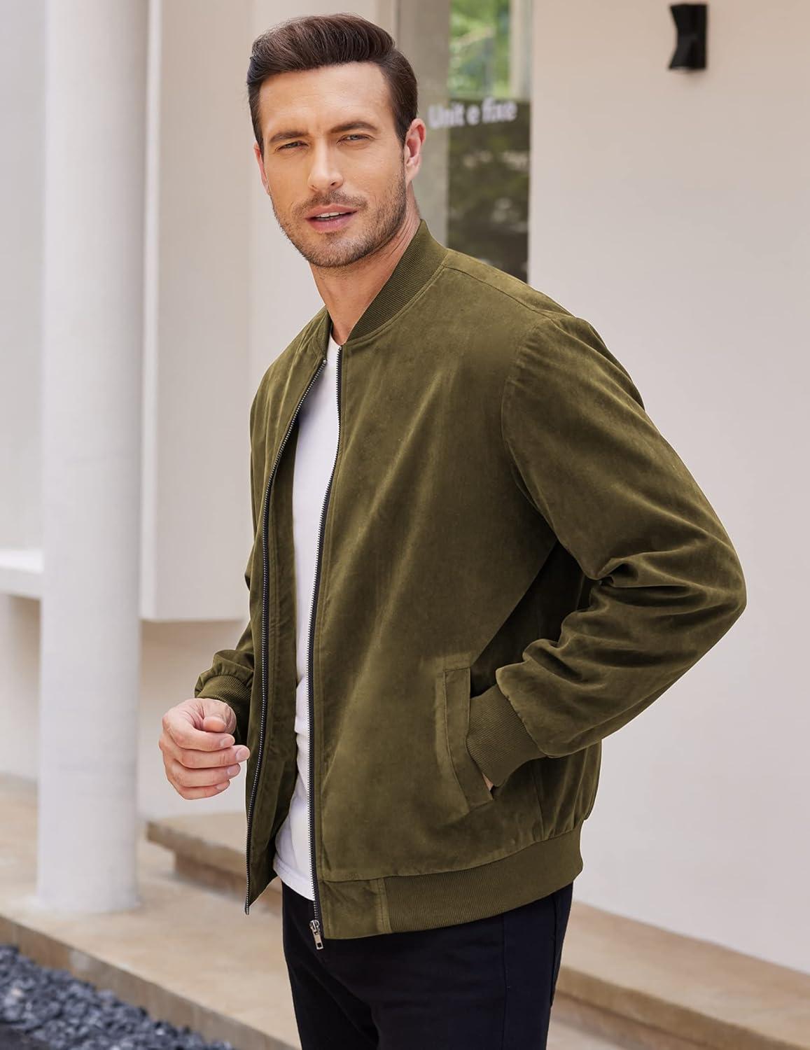 COOFANDY Men’s Casual Varsity Jacket Vintage Lightweight Suede Bomber Jackets(Green)
