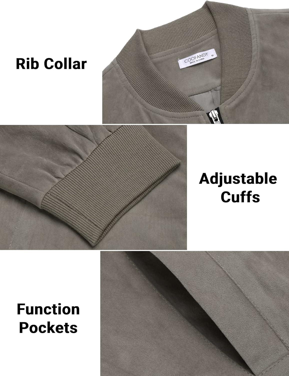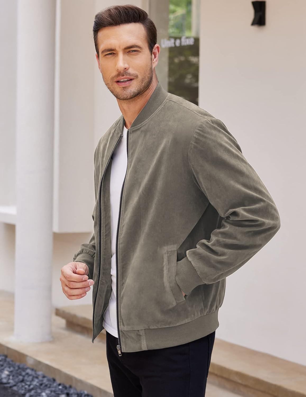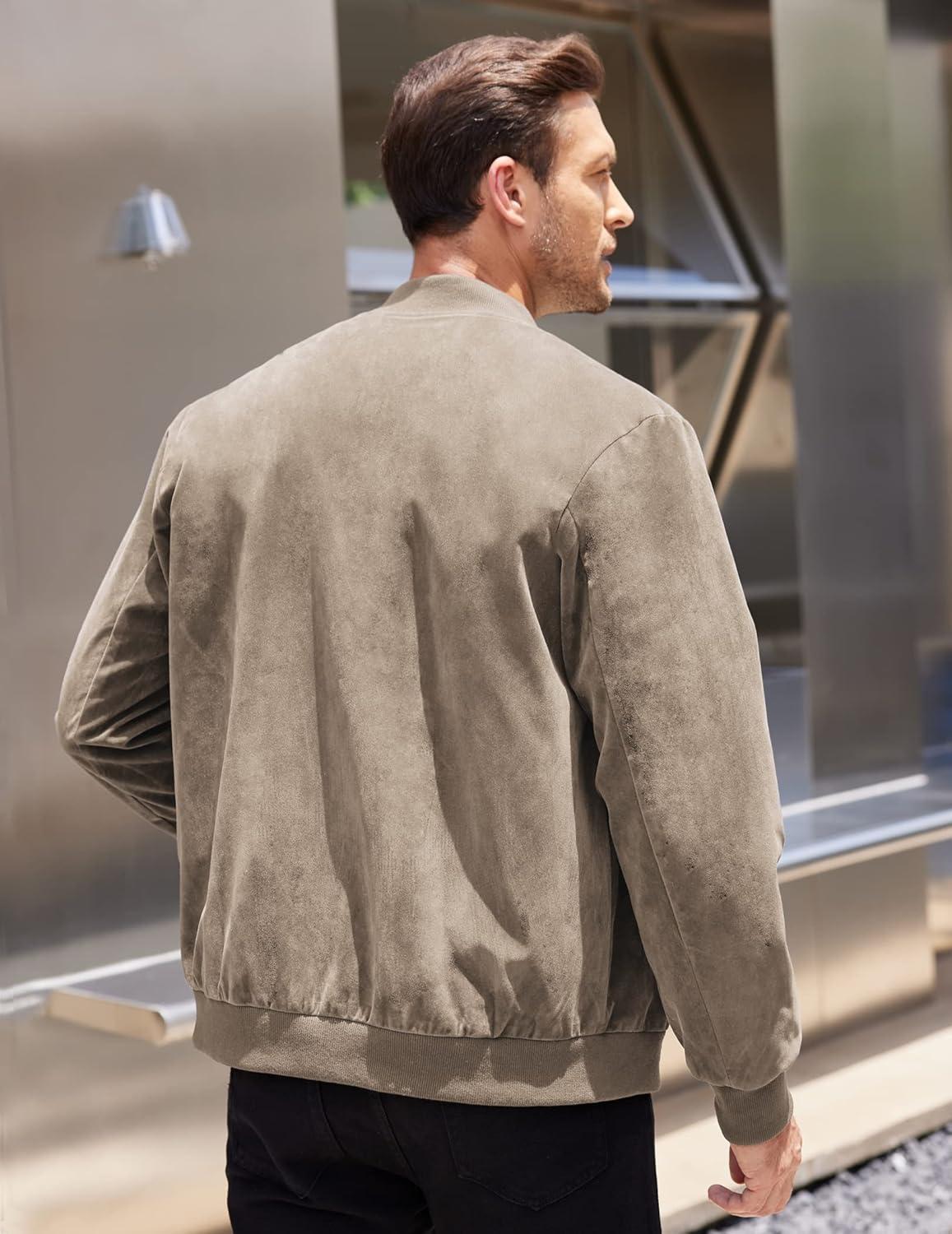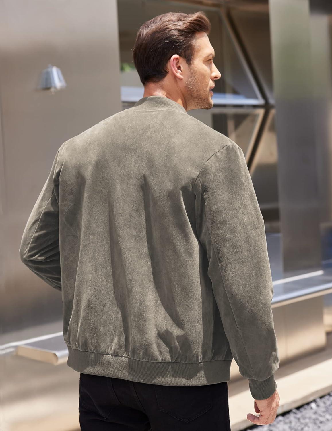 COOFANDY Men’s Casual Varsity Jacket Vintage Lightweight Suede Bomber Jackets(Grey)