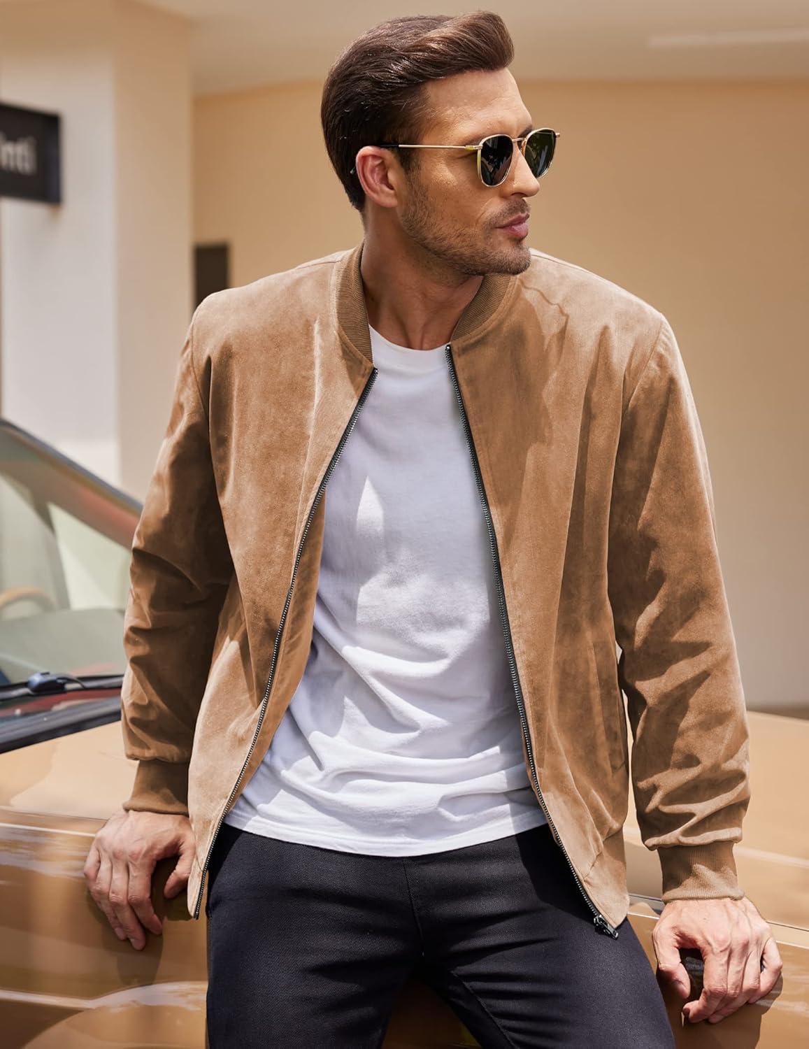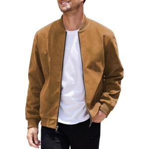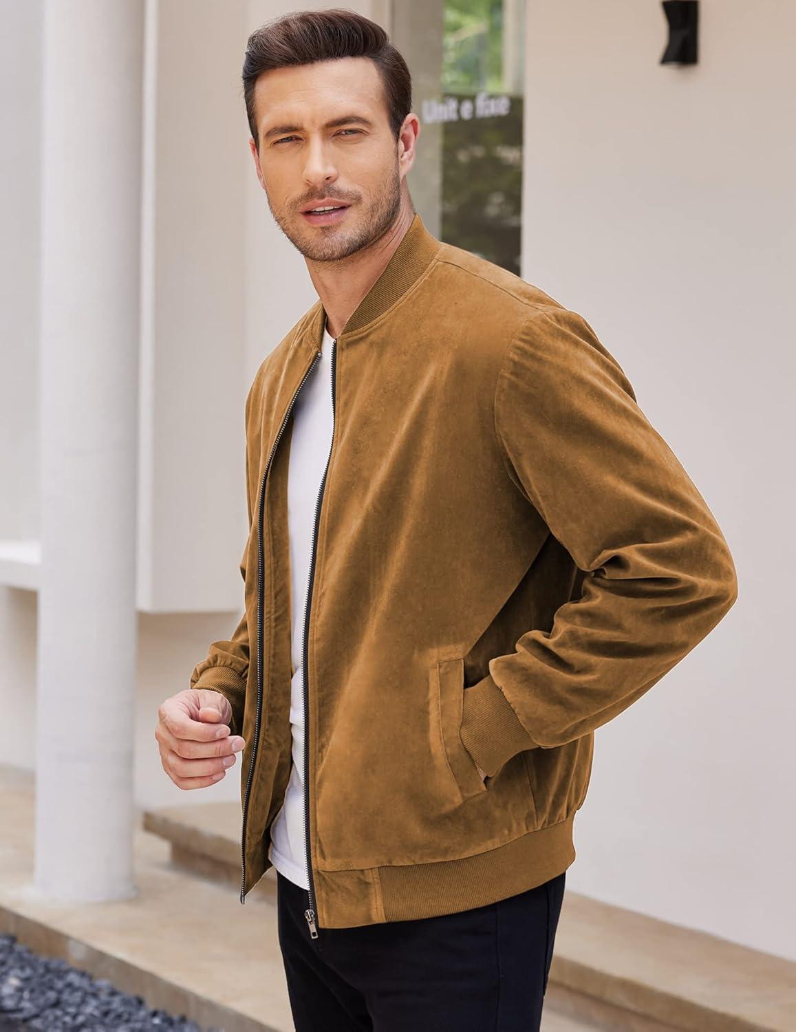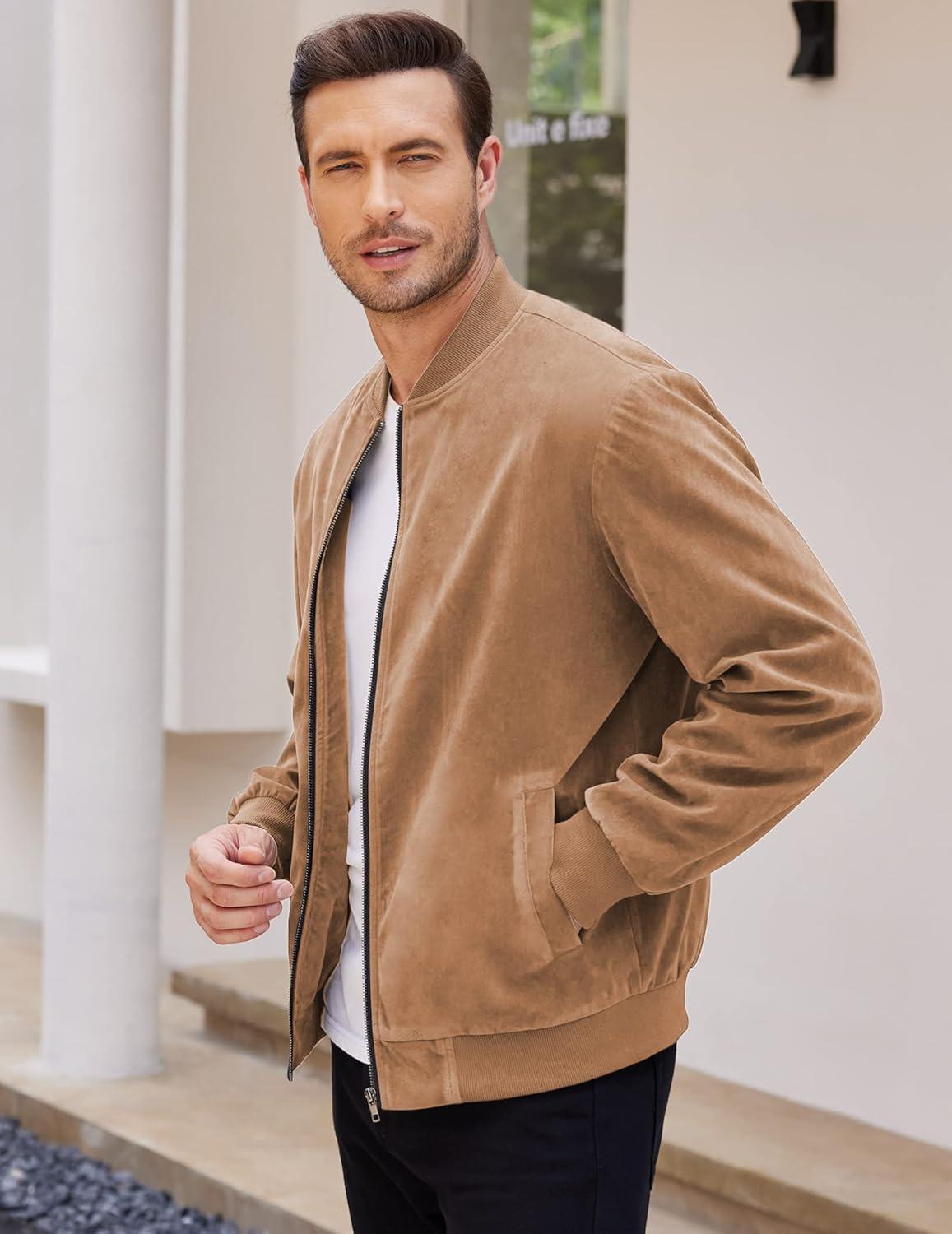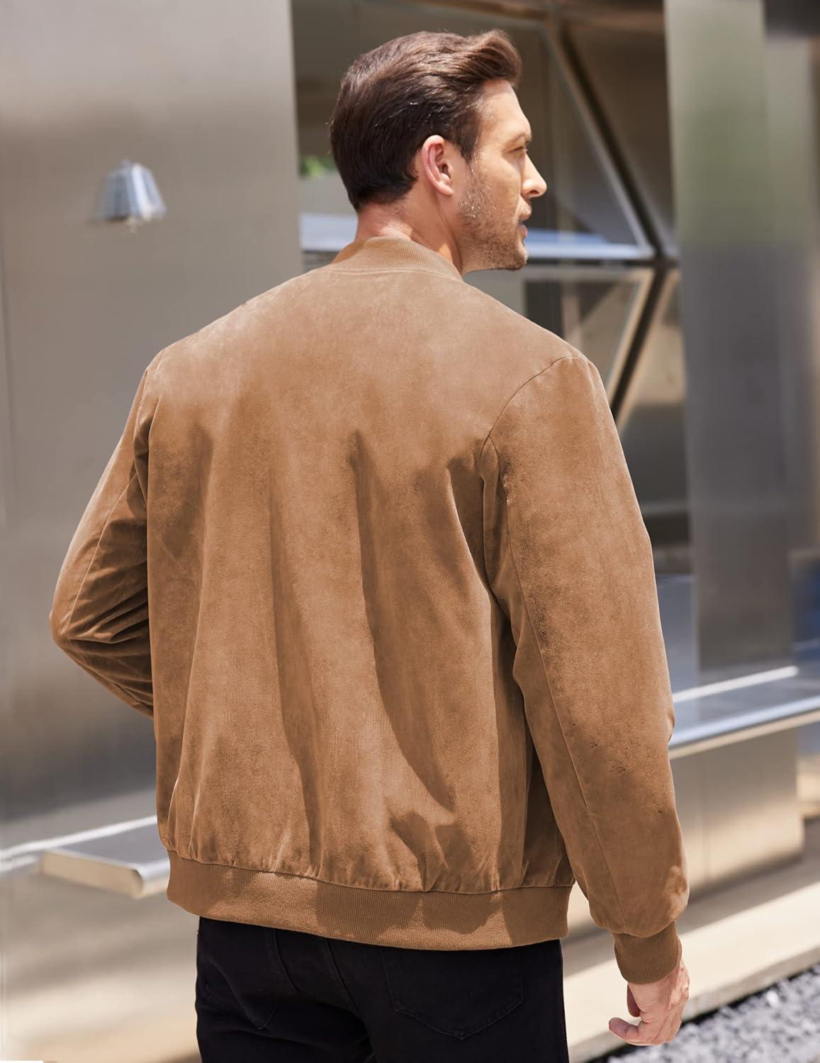 COOFANDY Men’s Casual Varsity Jacket Vintage Lightweight Suede Bomber Jackets(Light Brown)