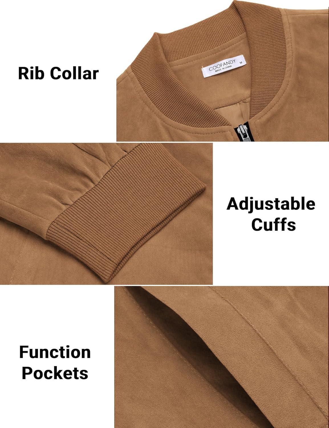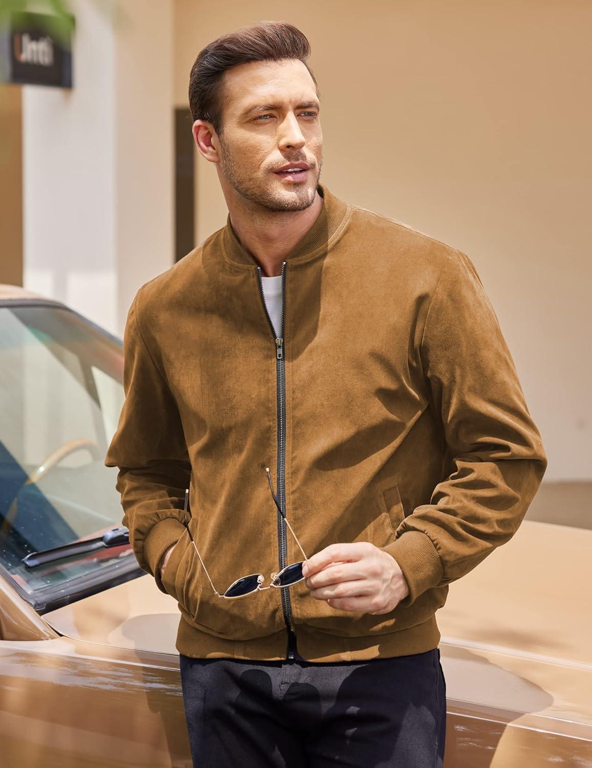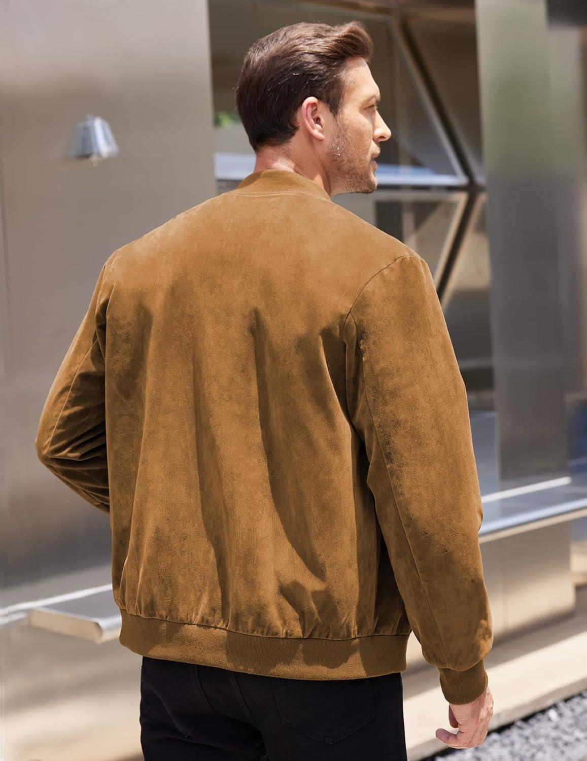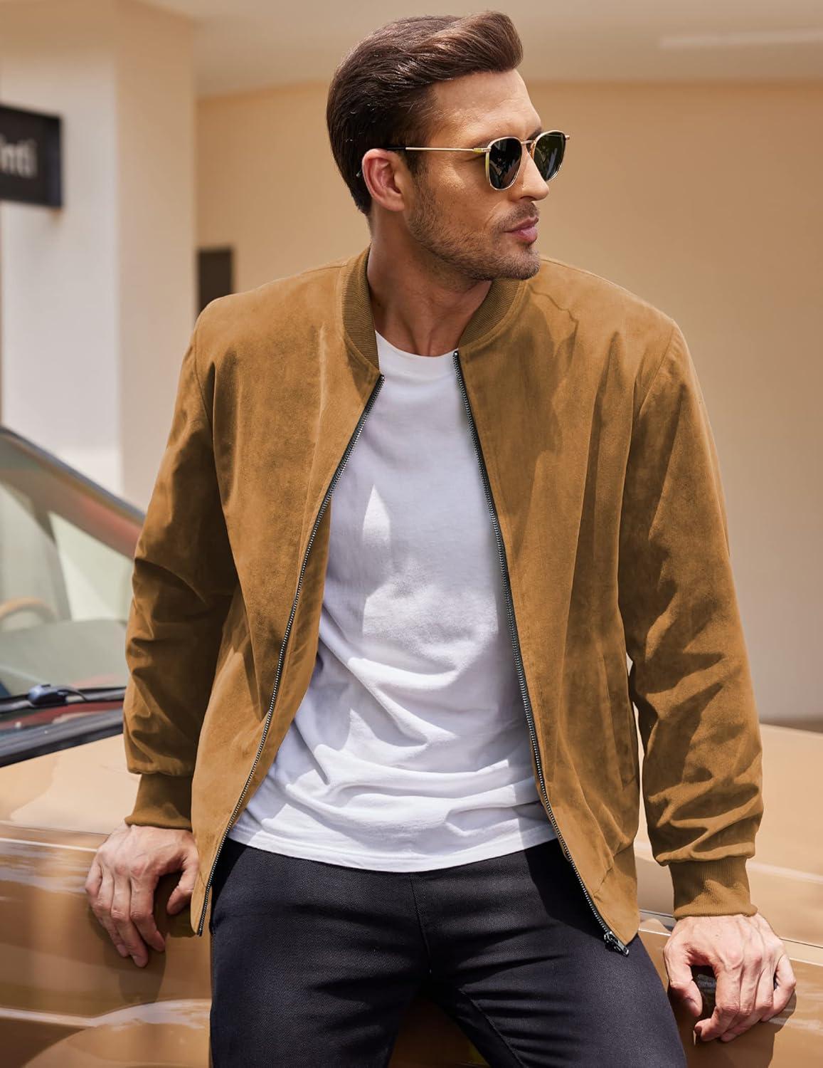 COOFANDY Men’s Casual Varsity Jacket Vintage Lightweight Suede Bomber Jackets(Light Brown)