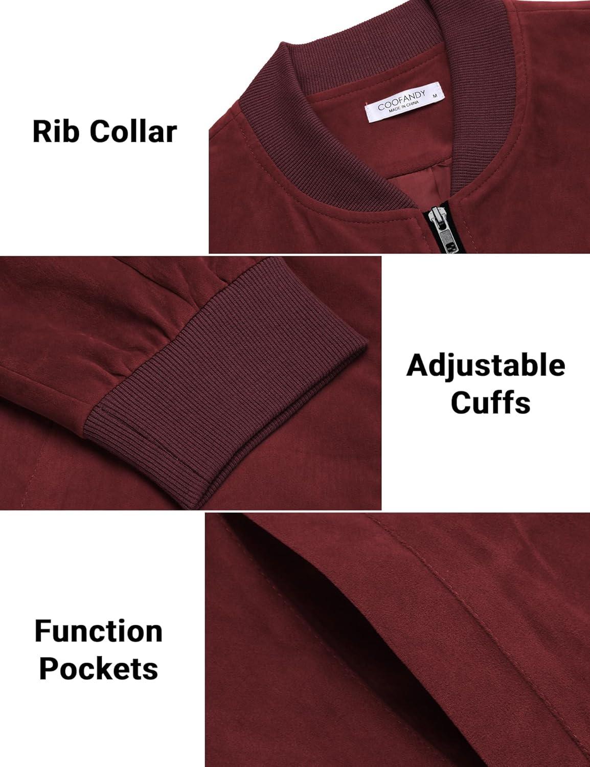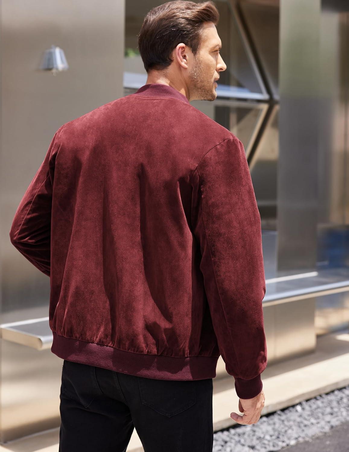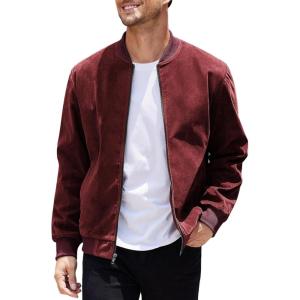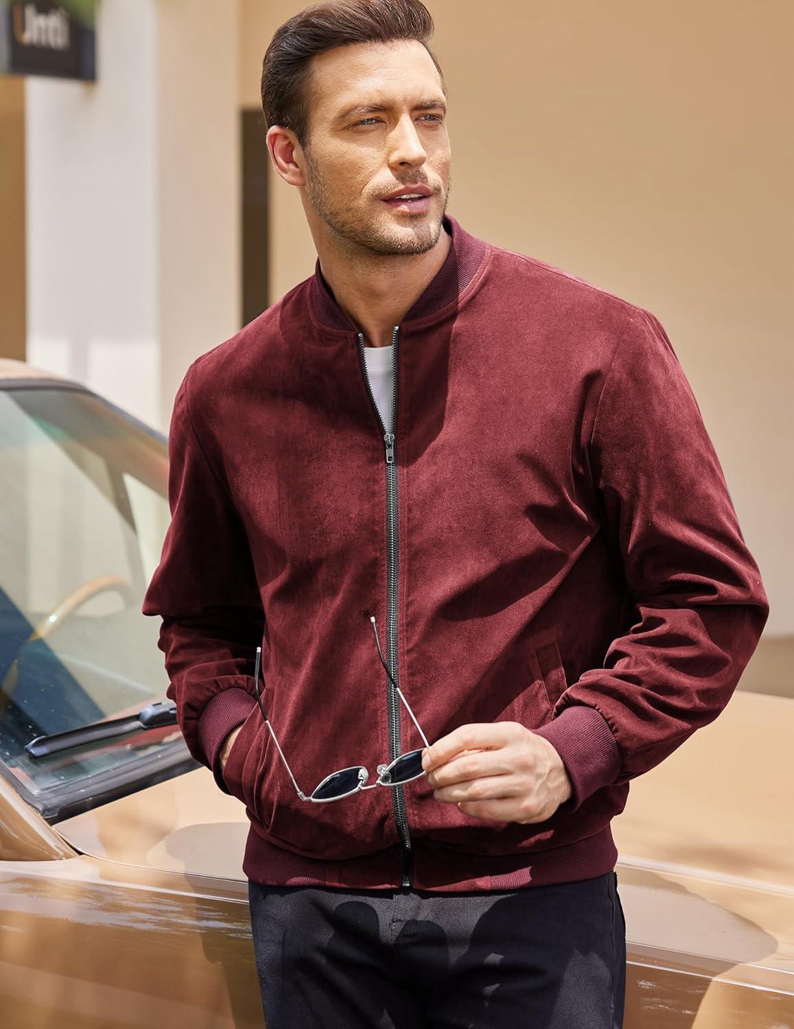 COOFANDY Men’s Casual Varsity Jacket Vintage Lightweight Suede Bomber Jackets(Red)