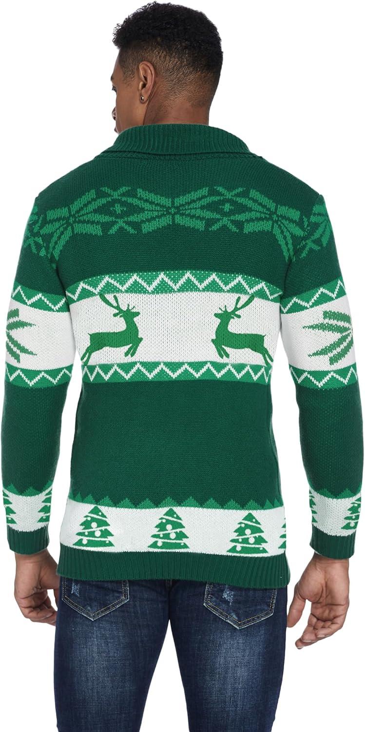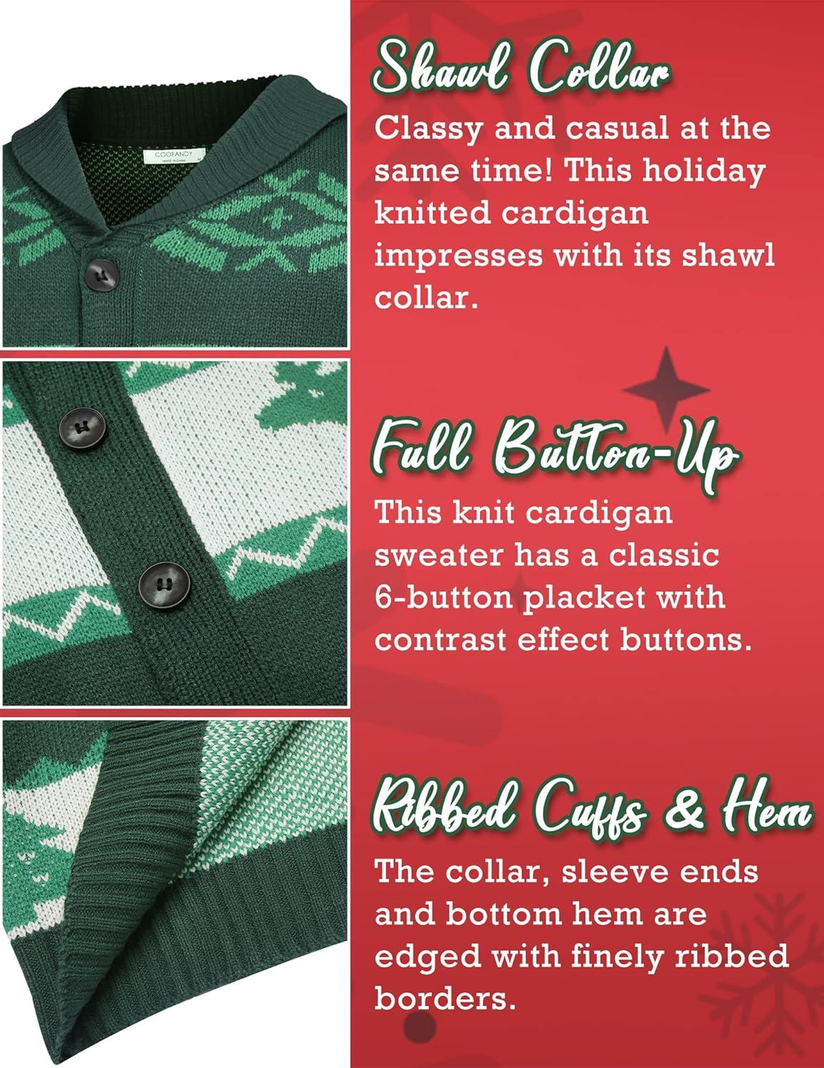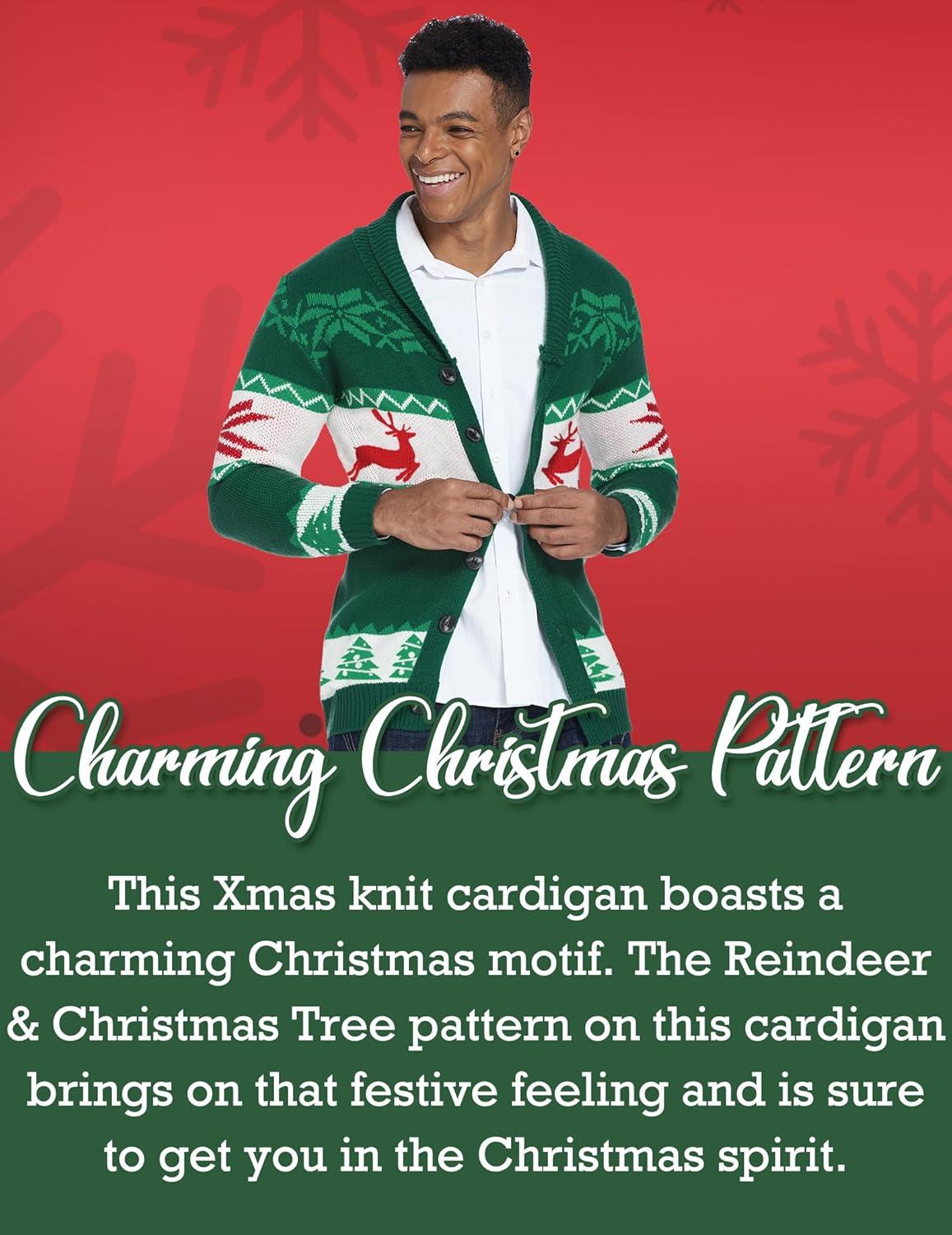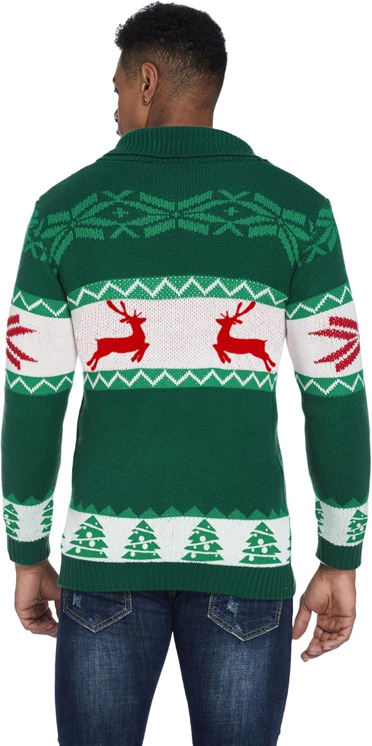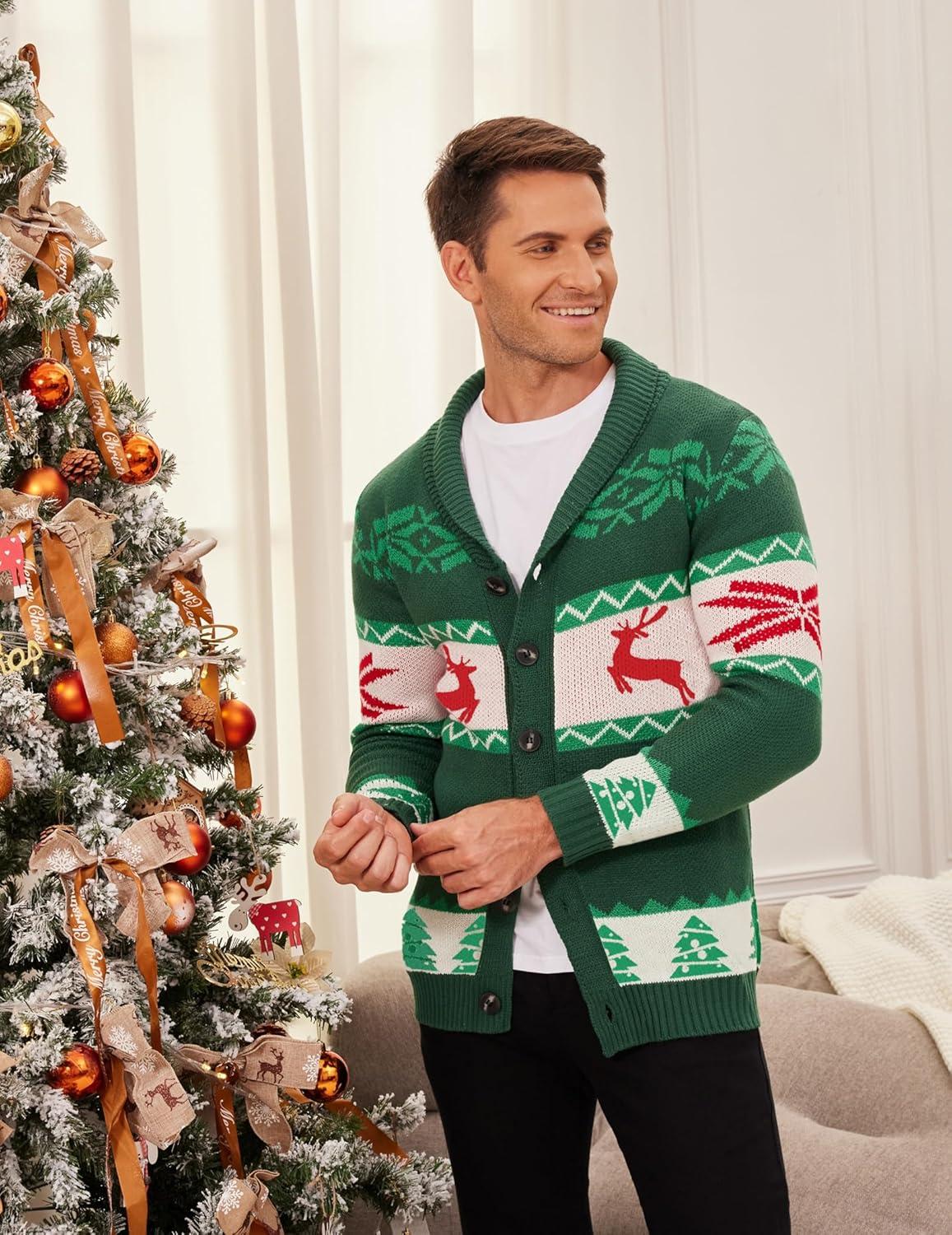 COOFANDY Men’s Christmas Cardigans Ugly Xmas Sweaters Reindeer Snowflake Shawl Collar Knitted Cardigan Sweater(A – Green – a)