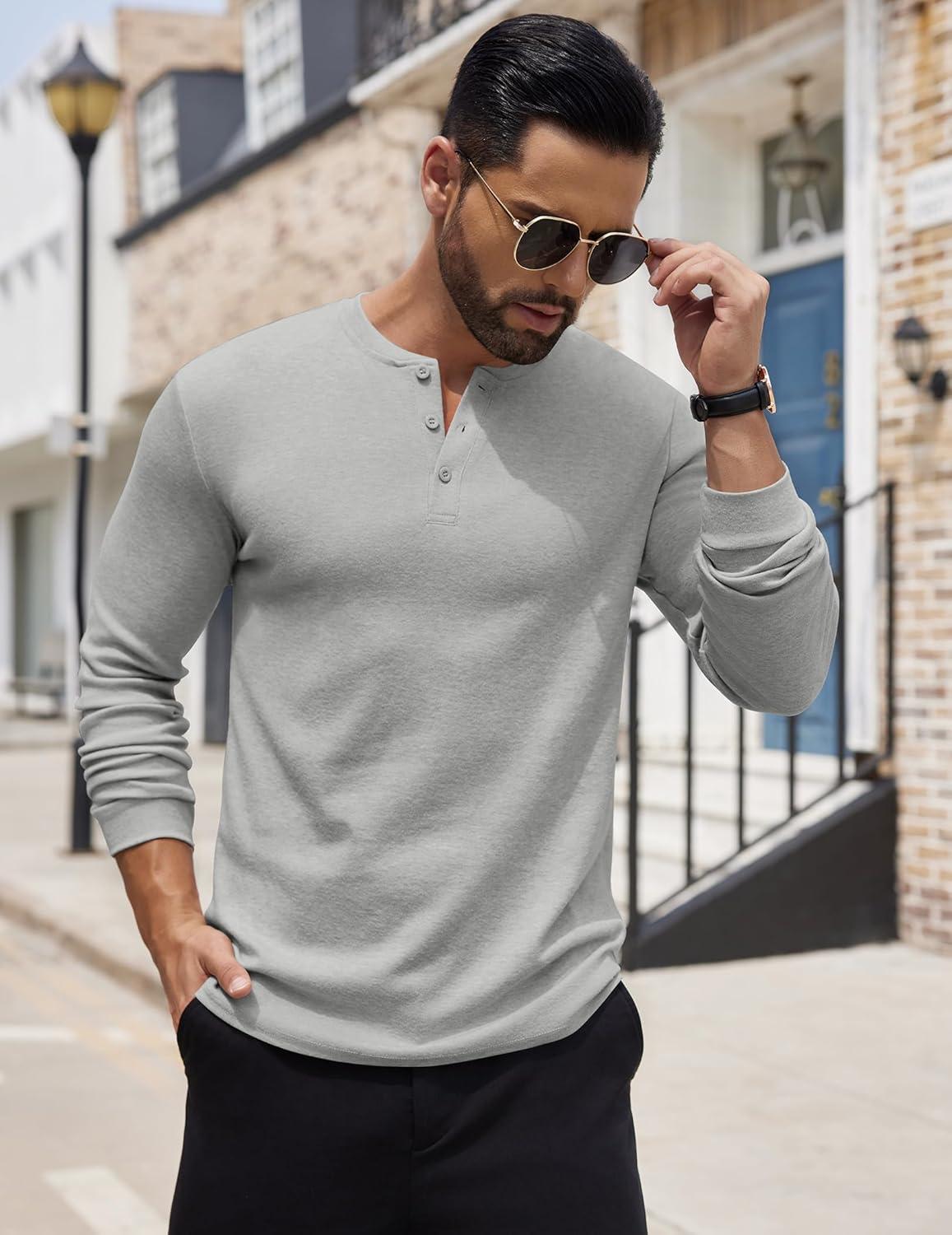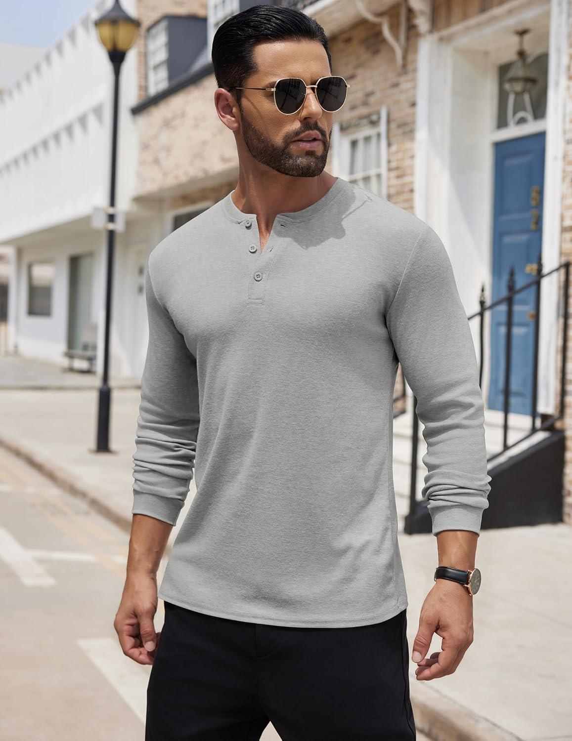 COOFANDY Men’s Henley Shirts Long Sleeve Button T-Shirt Lightweight Fashion Casual Pullover Shirt(Heather Grey)
