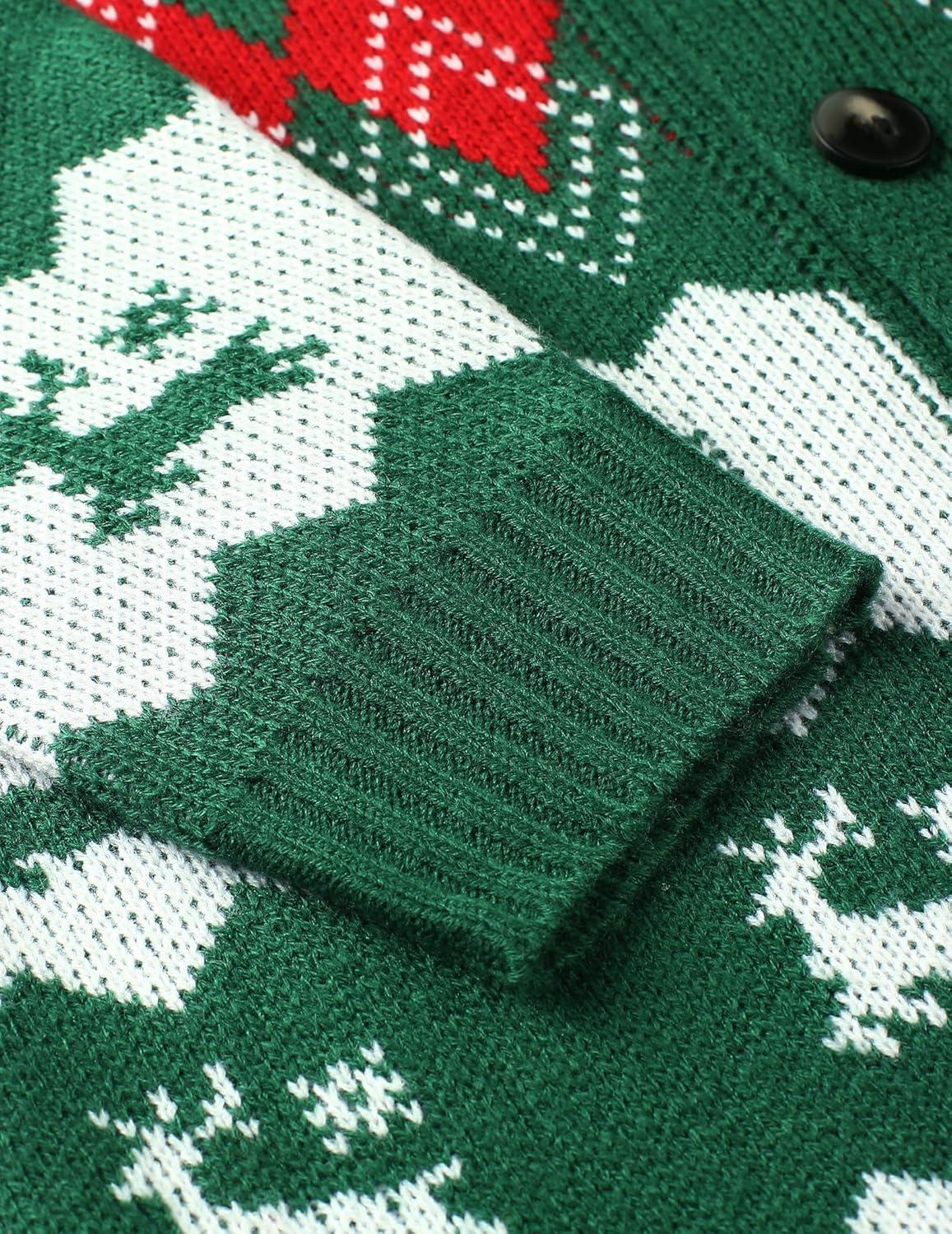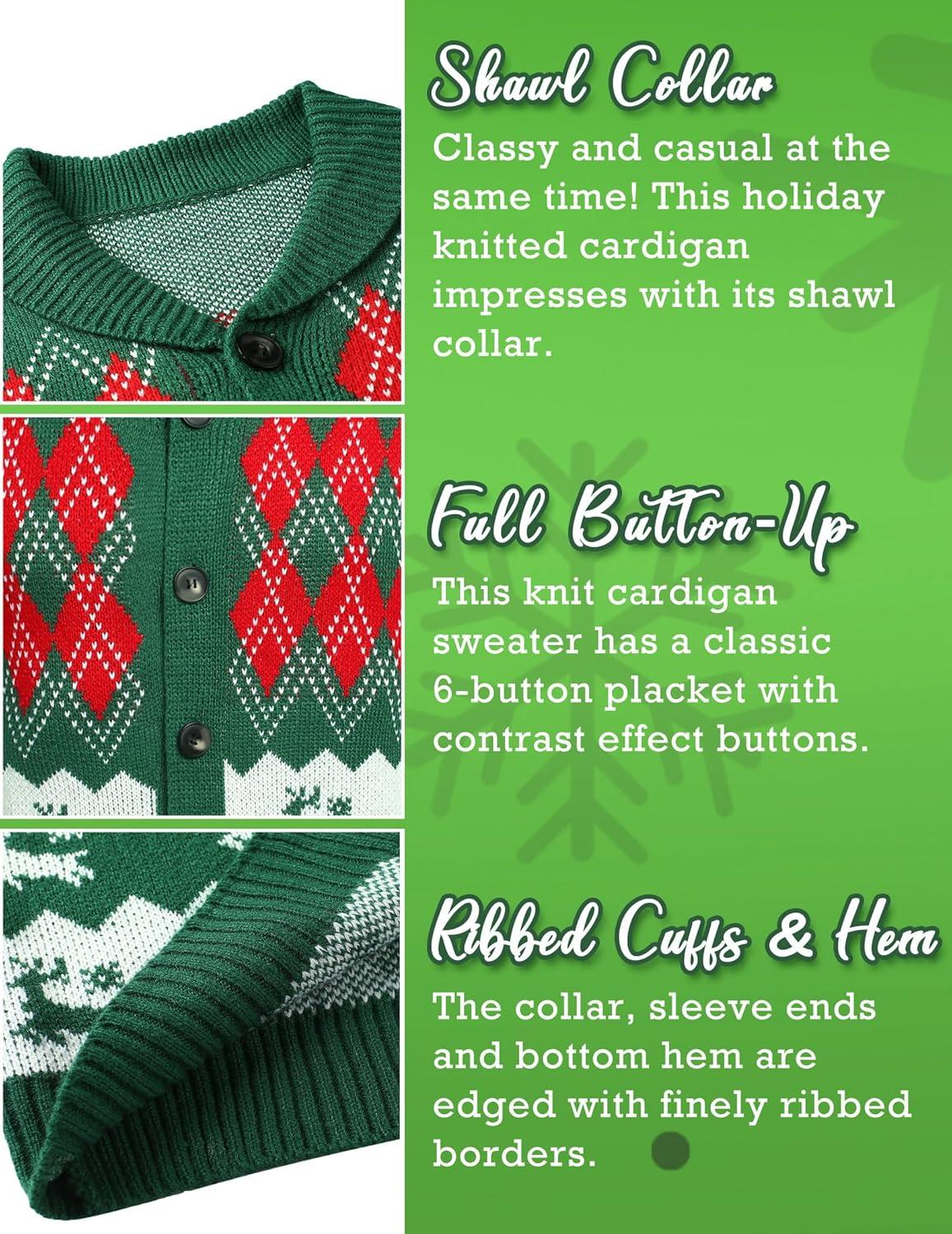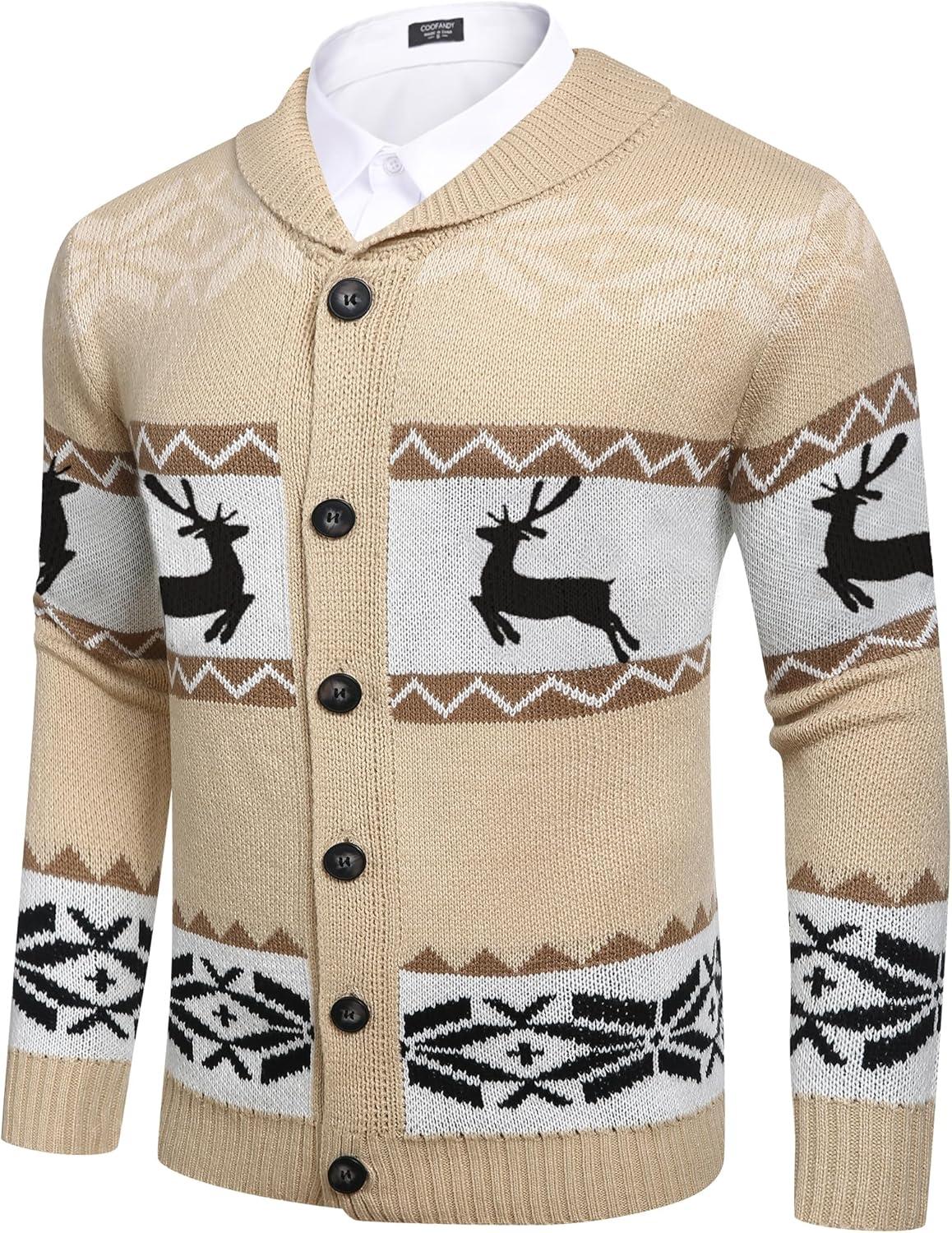 COOFANDY Men’s Christmas Cardigans Ugly Xmas Sweaters Reindeer Snowflake Shawl Collar Knitted Cardigan Sweater(Red Elk Green White)