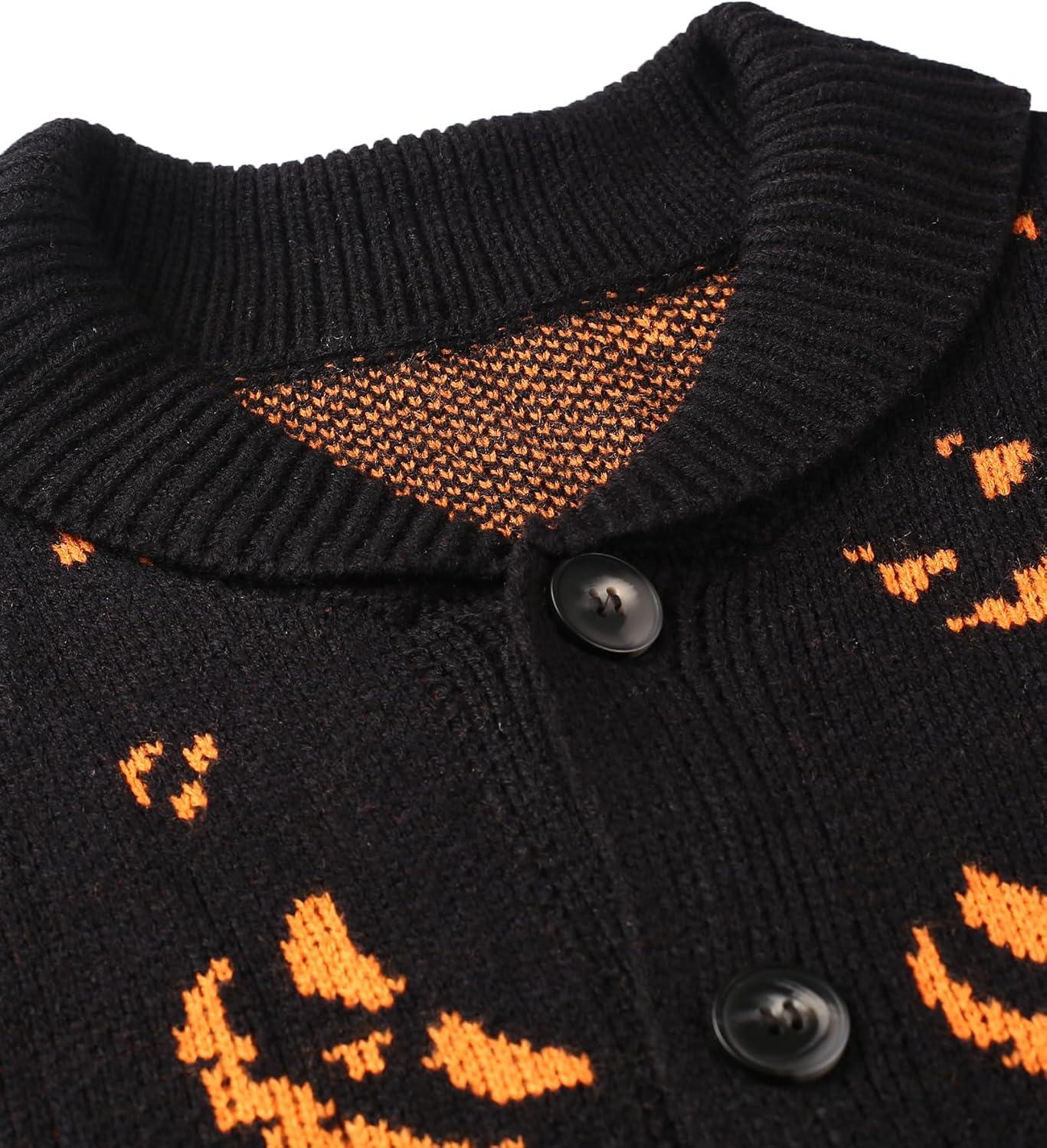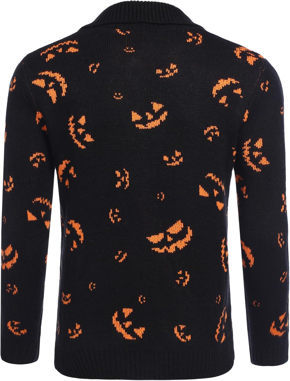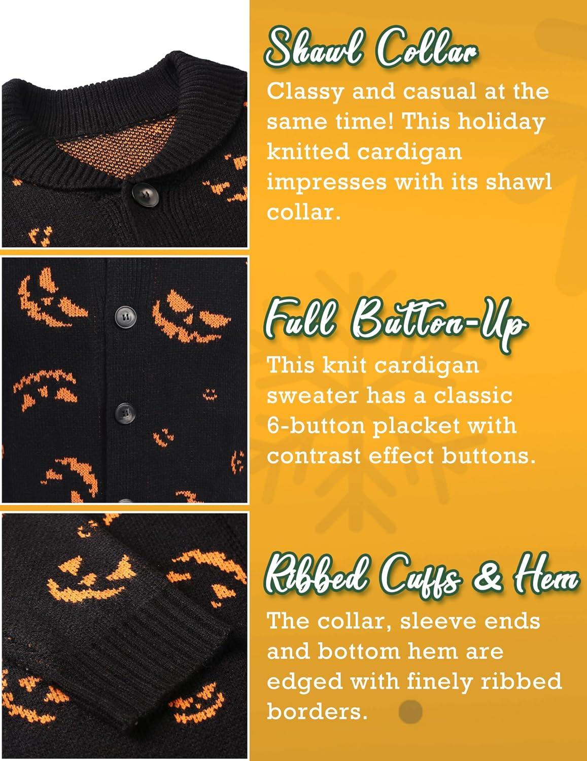 COOFANDY Men’s Christmas Cardigans Ugly Xmas Sweaters Reindeer Snowflake Shawl Collar Knitted Cardigan Sweater(Pumpkin)