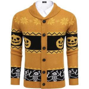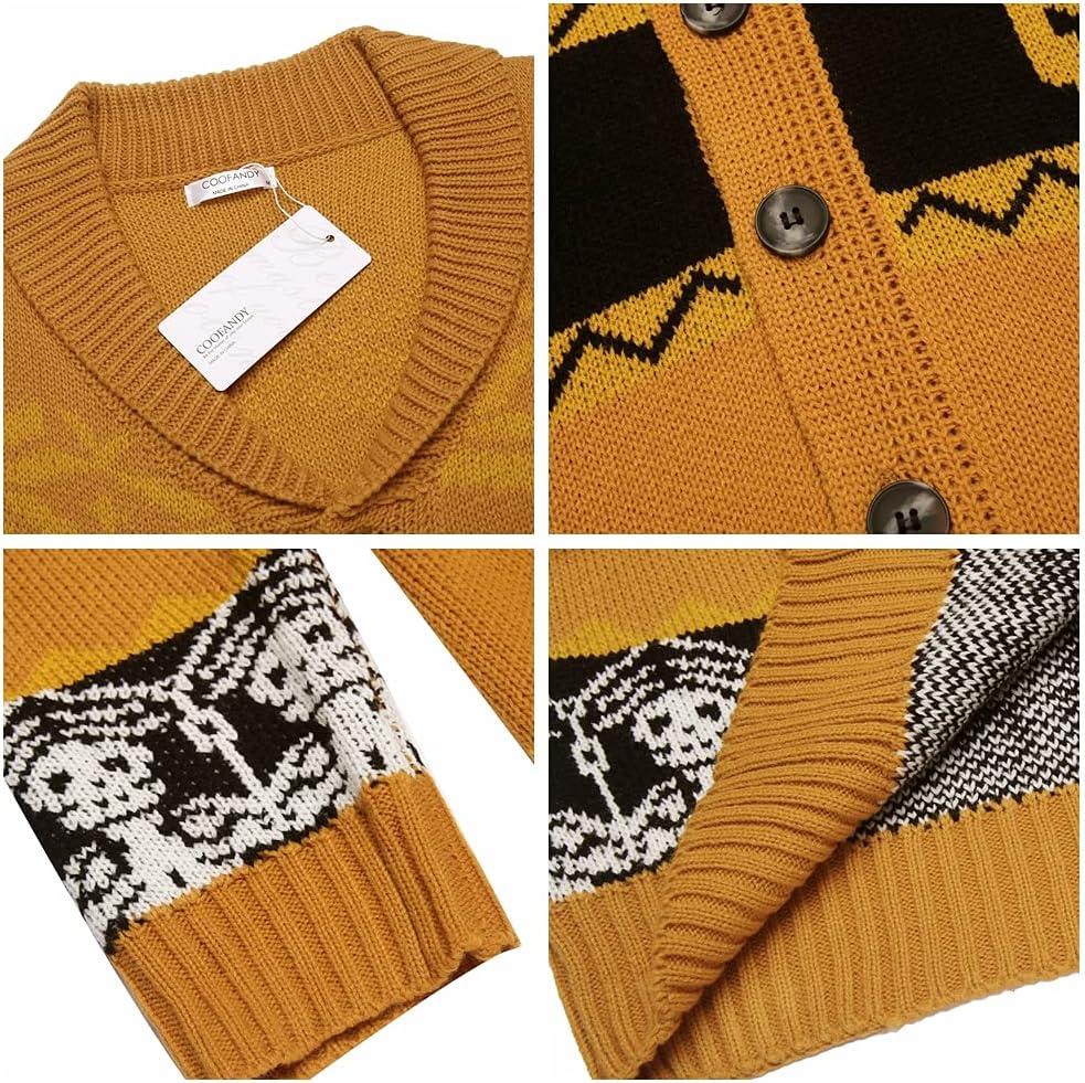 COOFANDY Men’s Christmas Cardigans Ugly Xmas Sweaters Reindeer Snowflake Shawl Collar Knitted Cardigan Sweater(Yellow Pumpkin)