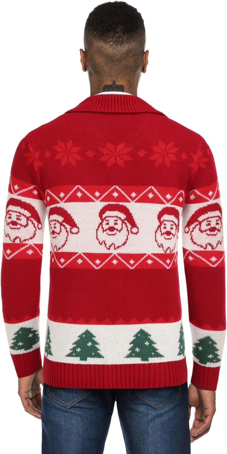 COOFANDY Men’s Christmas Cardigans Ugly Xmas Sweaters Reindeer Snowflake Shawl Collar Knitted Cardigan Sweater(Red Santa Claus)