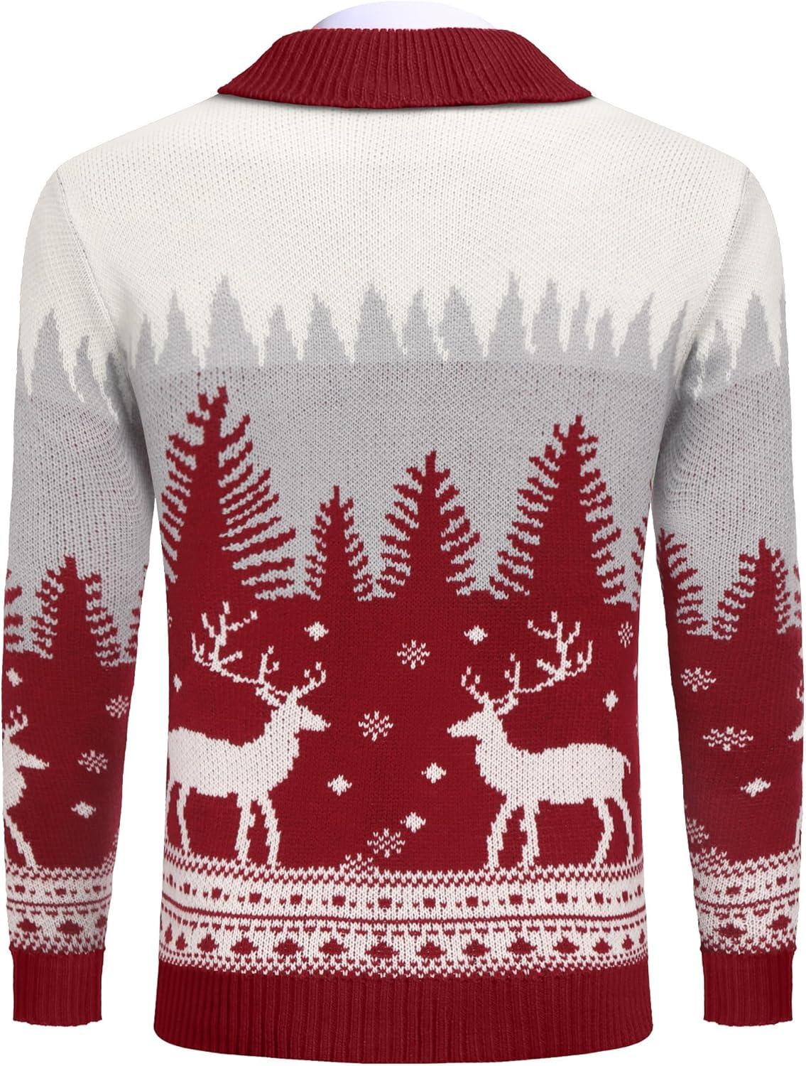 COOFANDY Men’s Christmas Cardigans Ugly Xmas Sweaters Reindeer Snowflake Shawl Collar Knitted Cardigan Sweater(Red Elk)