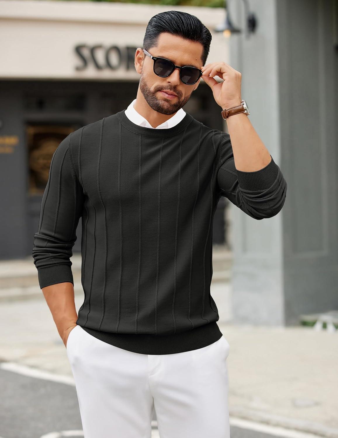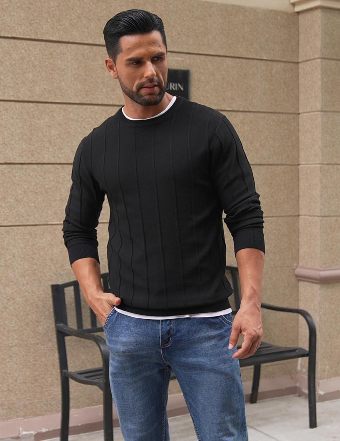 COOFANDY Men’s Crew Neck Sweater Long Sleeve Ribbed Knit Dress Sweaters Casual Slim Fit Pullover(Black)