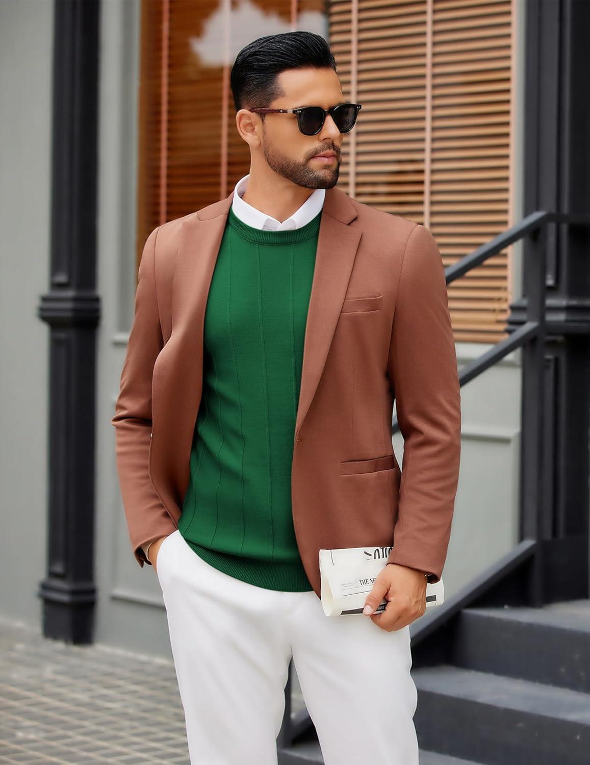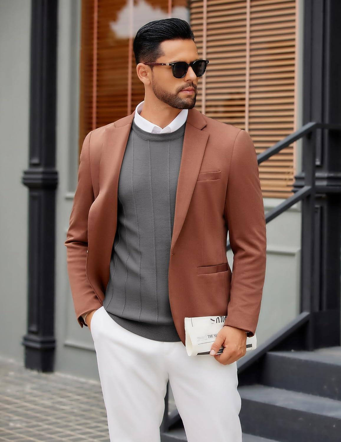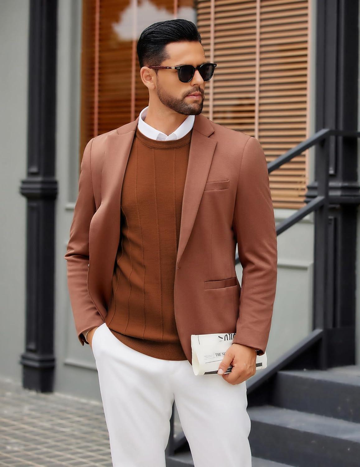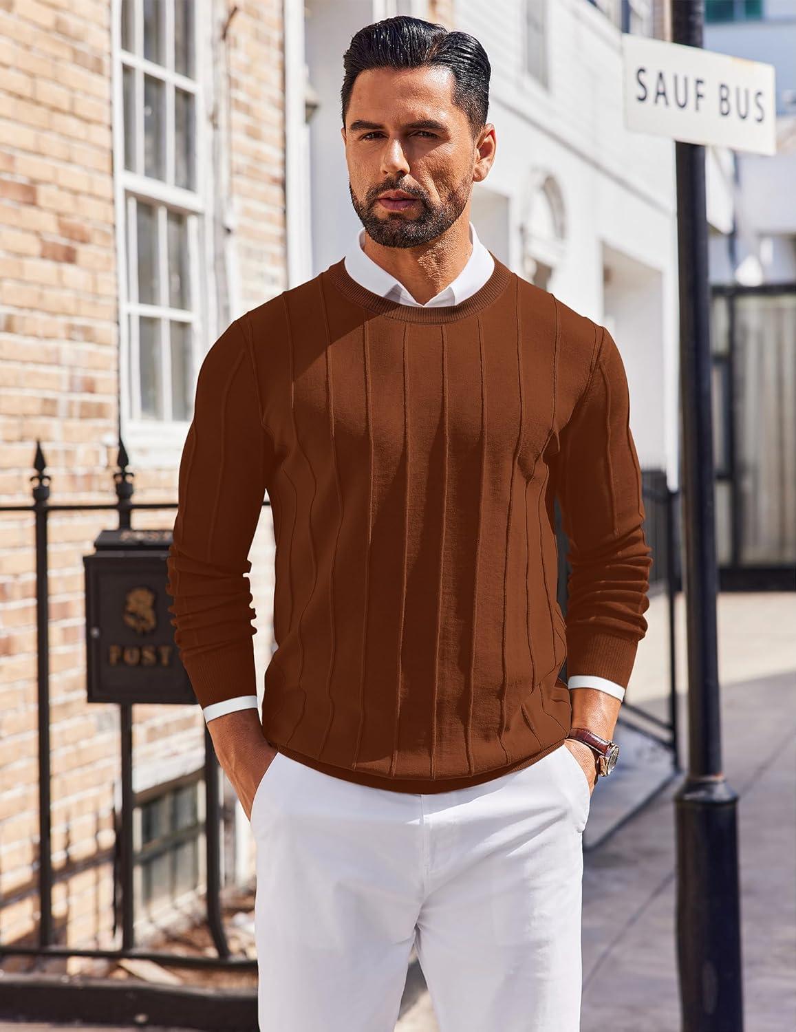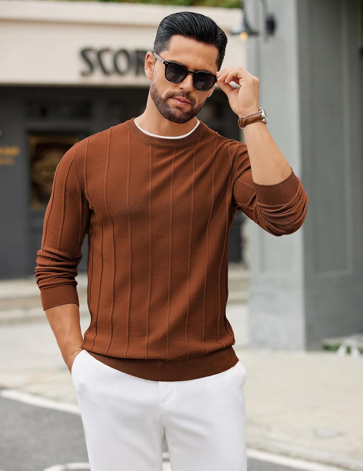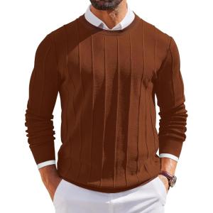 COOFANDY Men’s Crew Neck Sweater Long Sleeve Ribbed Knit Dress Sweaters Casual Slim Fit Pullover(Caramel)