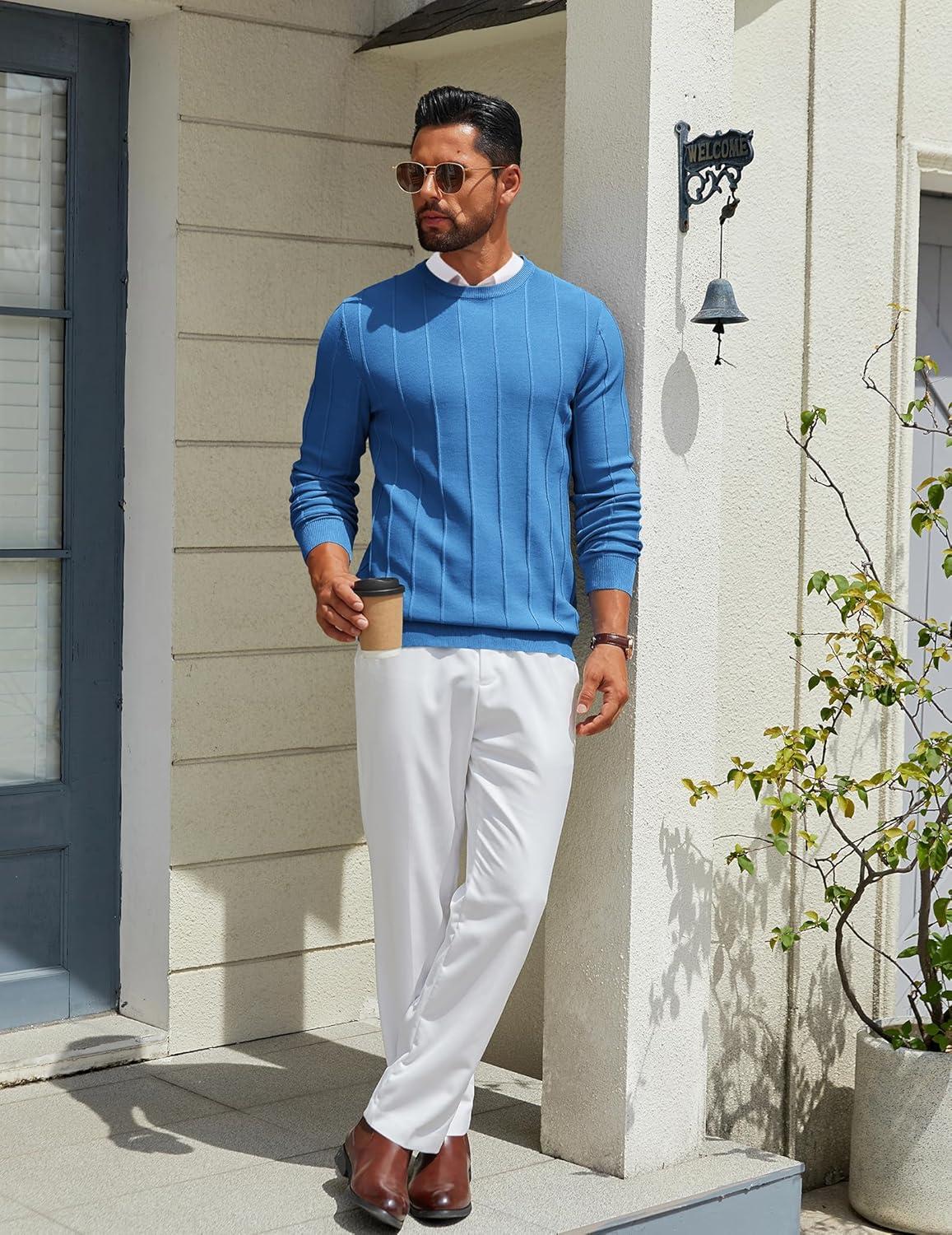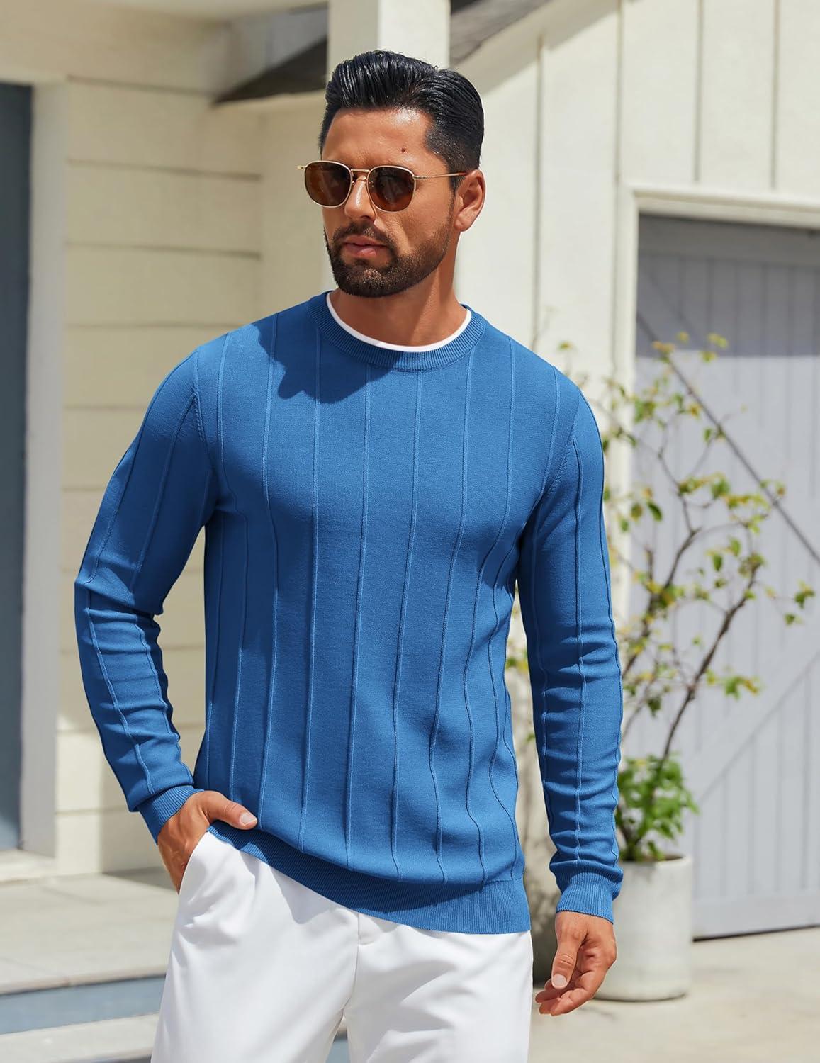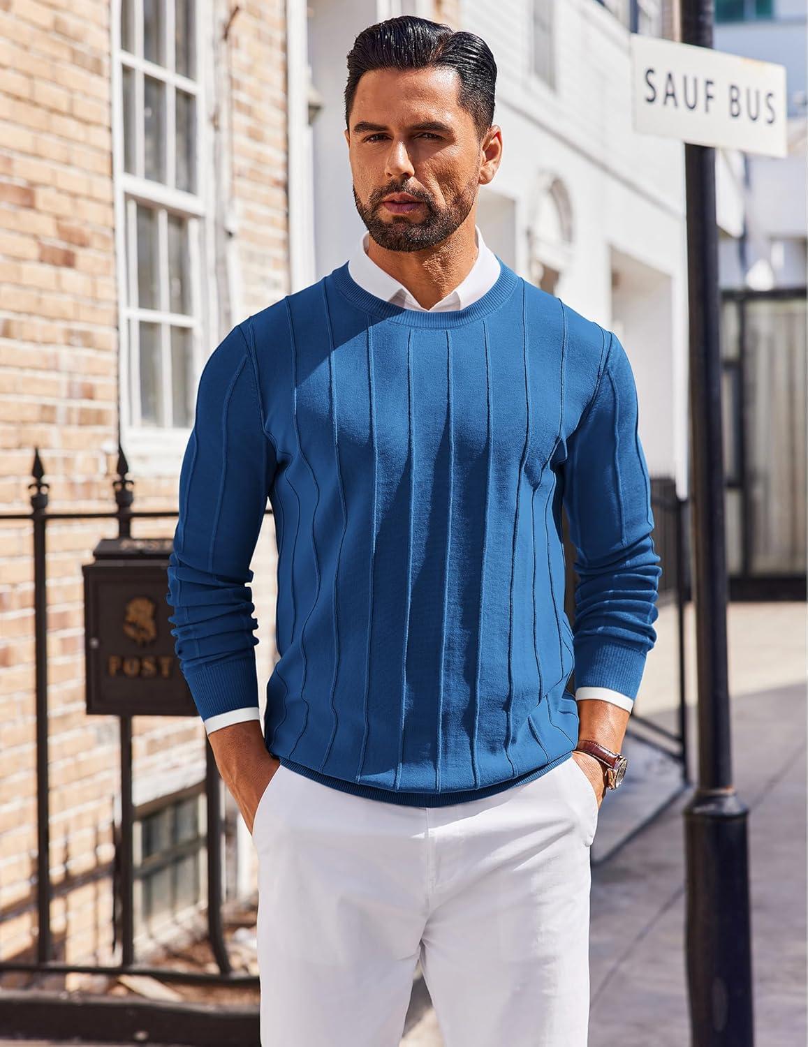 COOFANDY Men’s Crew Neck Sweater Long Sleeve Ribbed Knit Dress Sweaters Casual Slim Fit Pullover(Dark Blue)