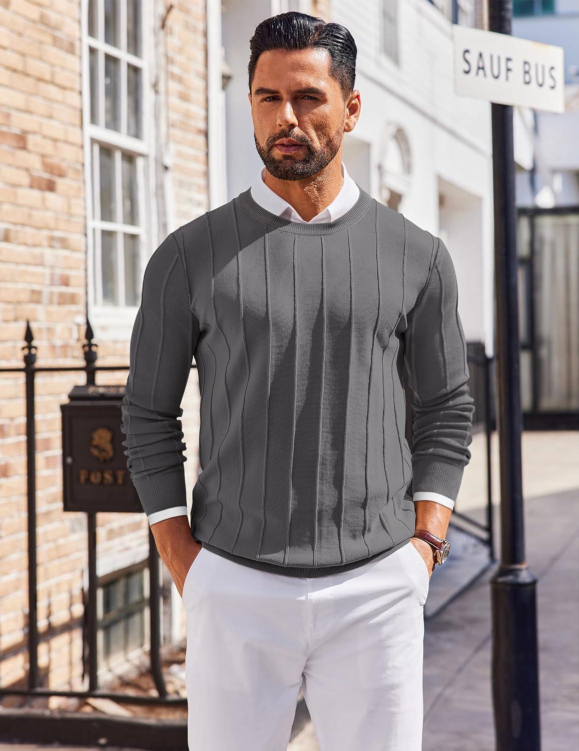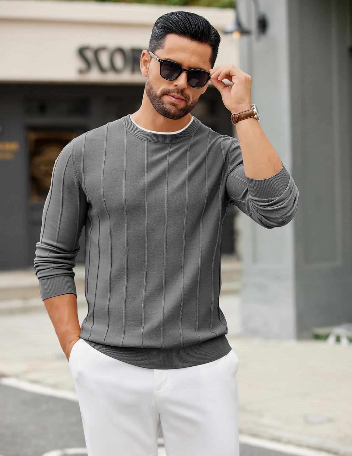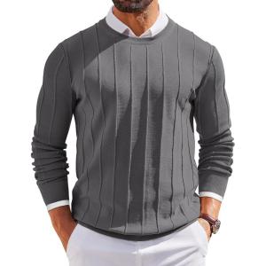 COOFANDY Men’s Crew Neck Sweater Long Sleeve Ribbed Knit Dress Sweaters Casual Slim Fit Pullover(Dark Grey)