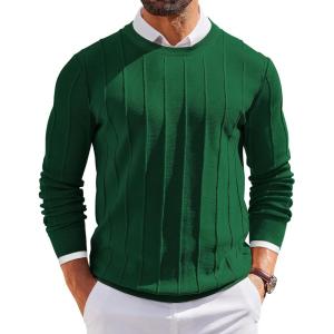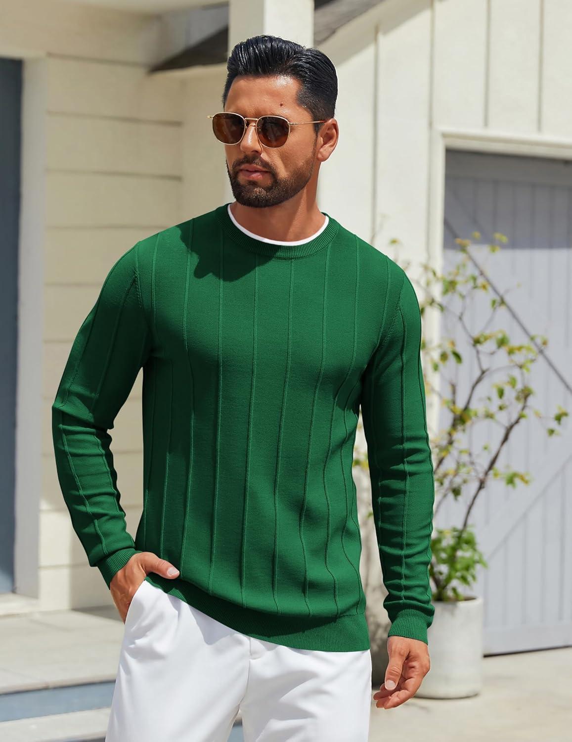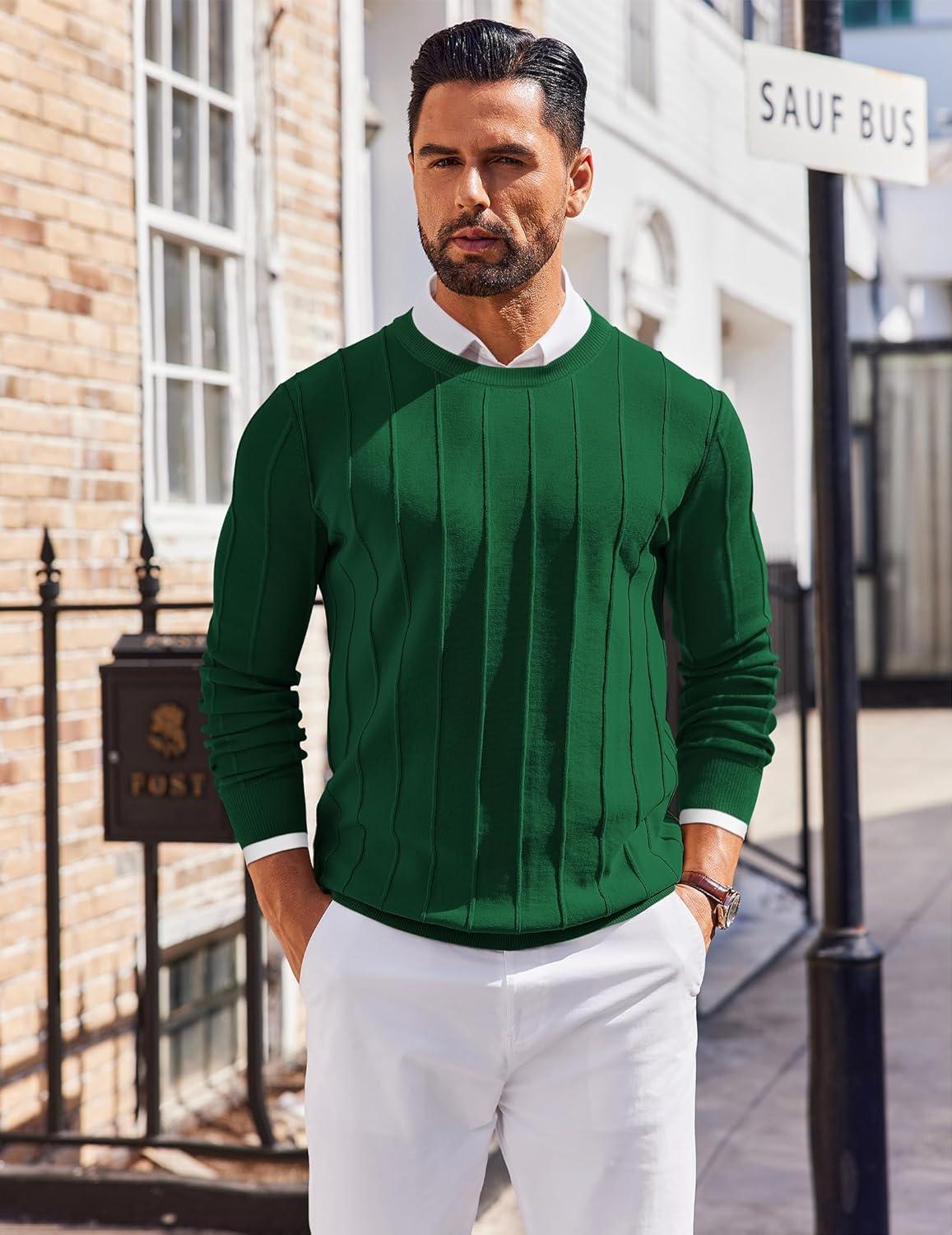 COOFANDY Men’s Crew Neck Sweater Long Sleeve Ribbed Knit Dress Sweaters Casual Slim Fit Pullover(Green)